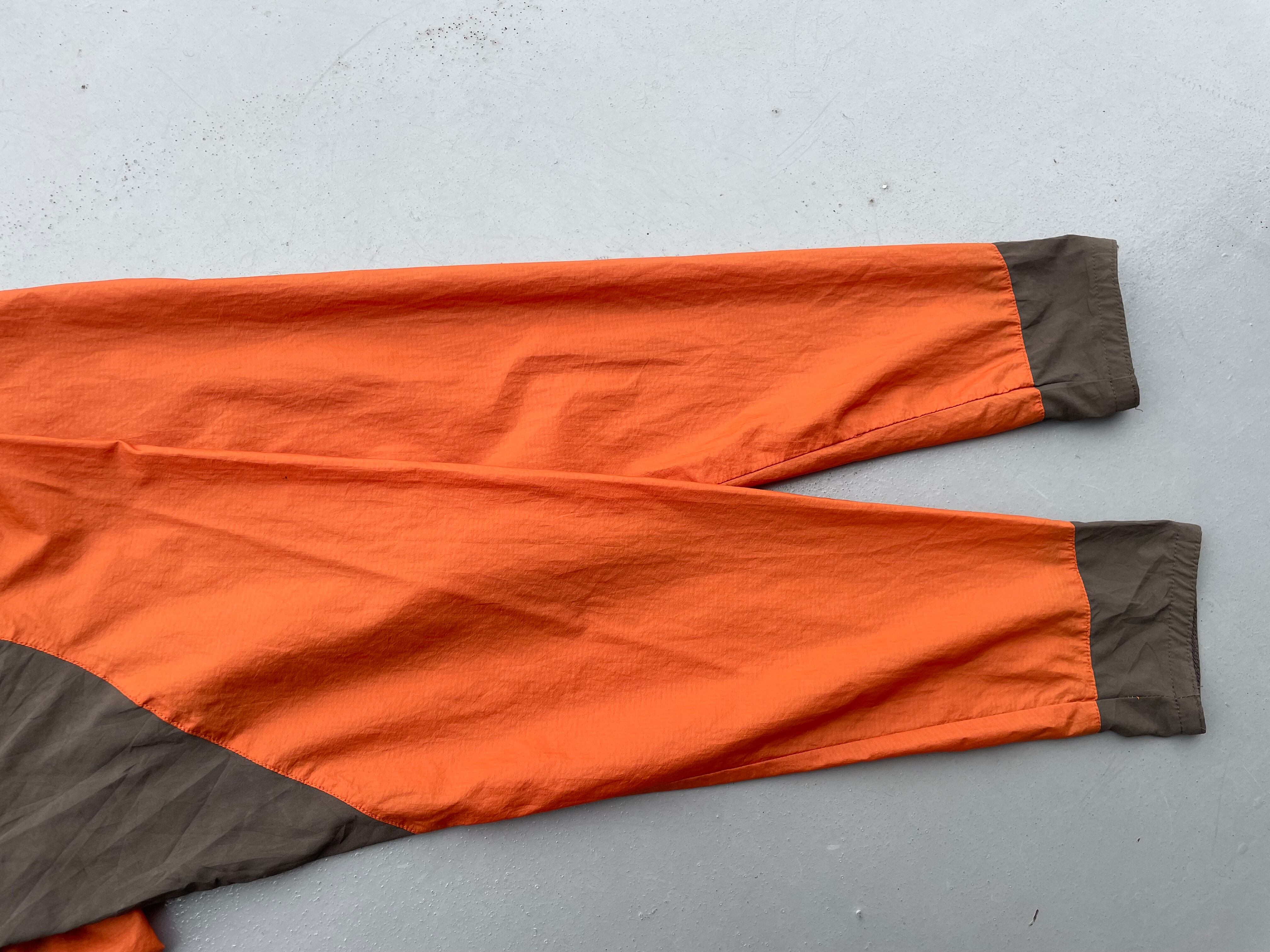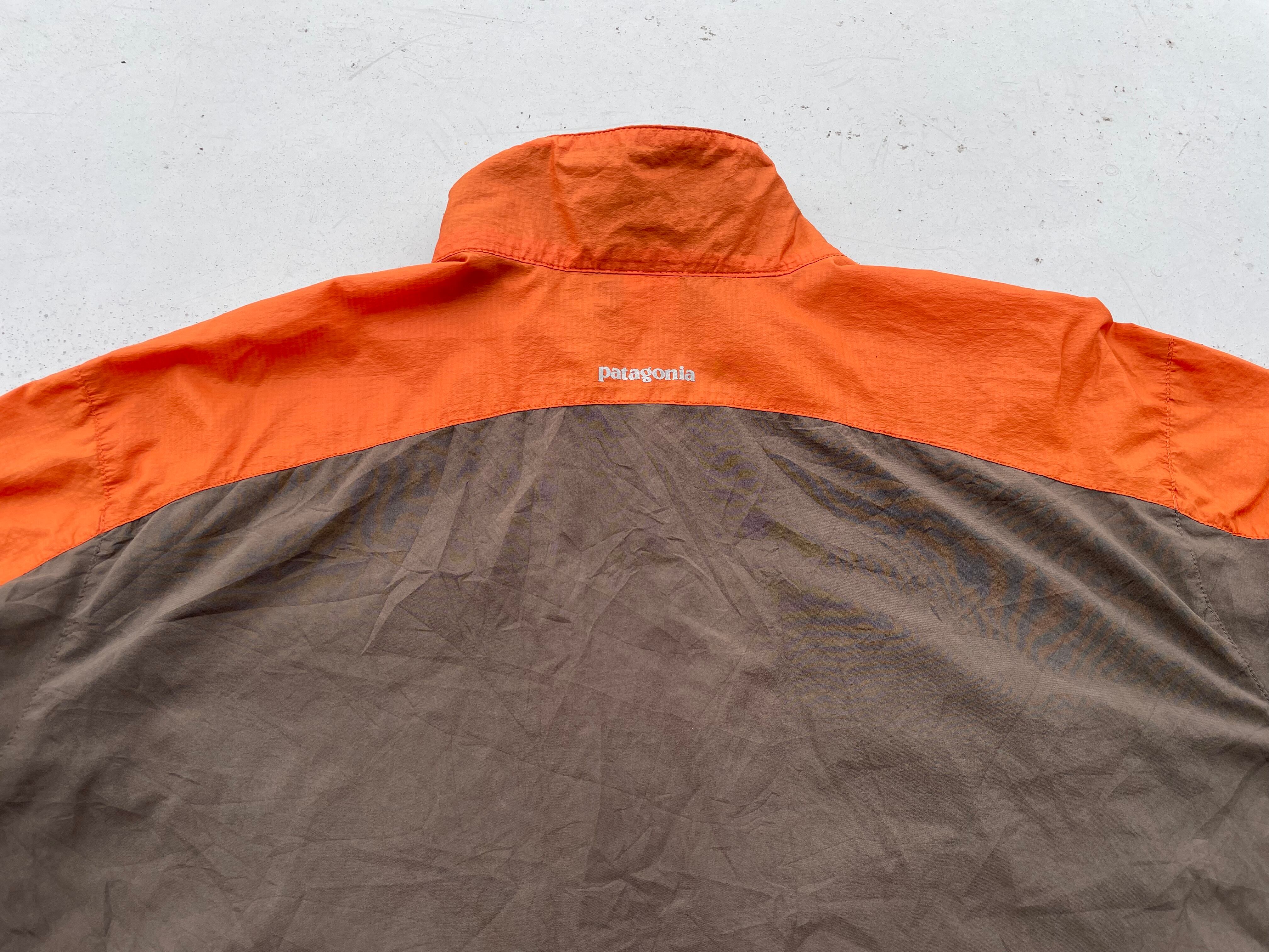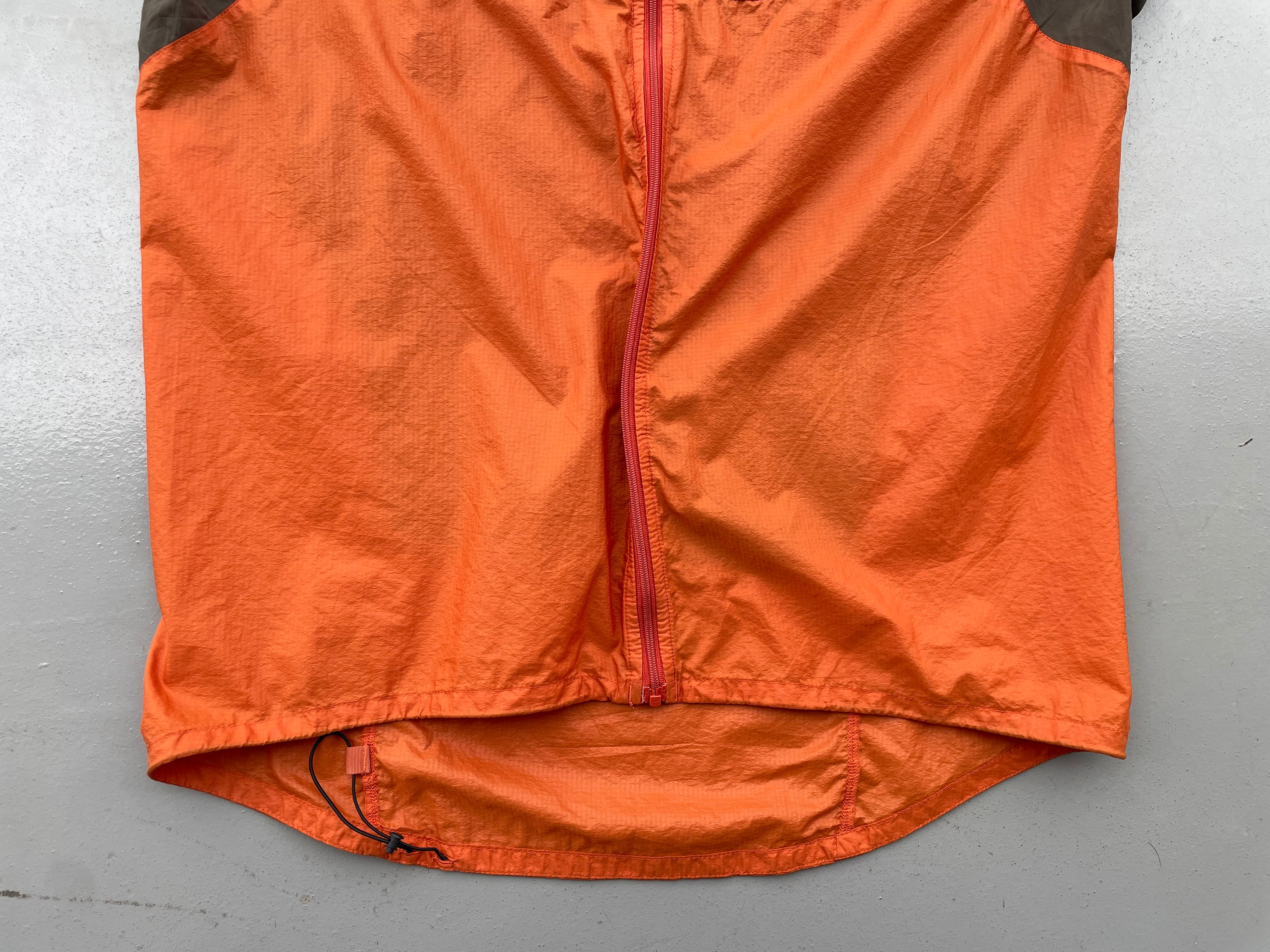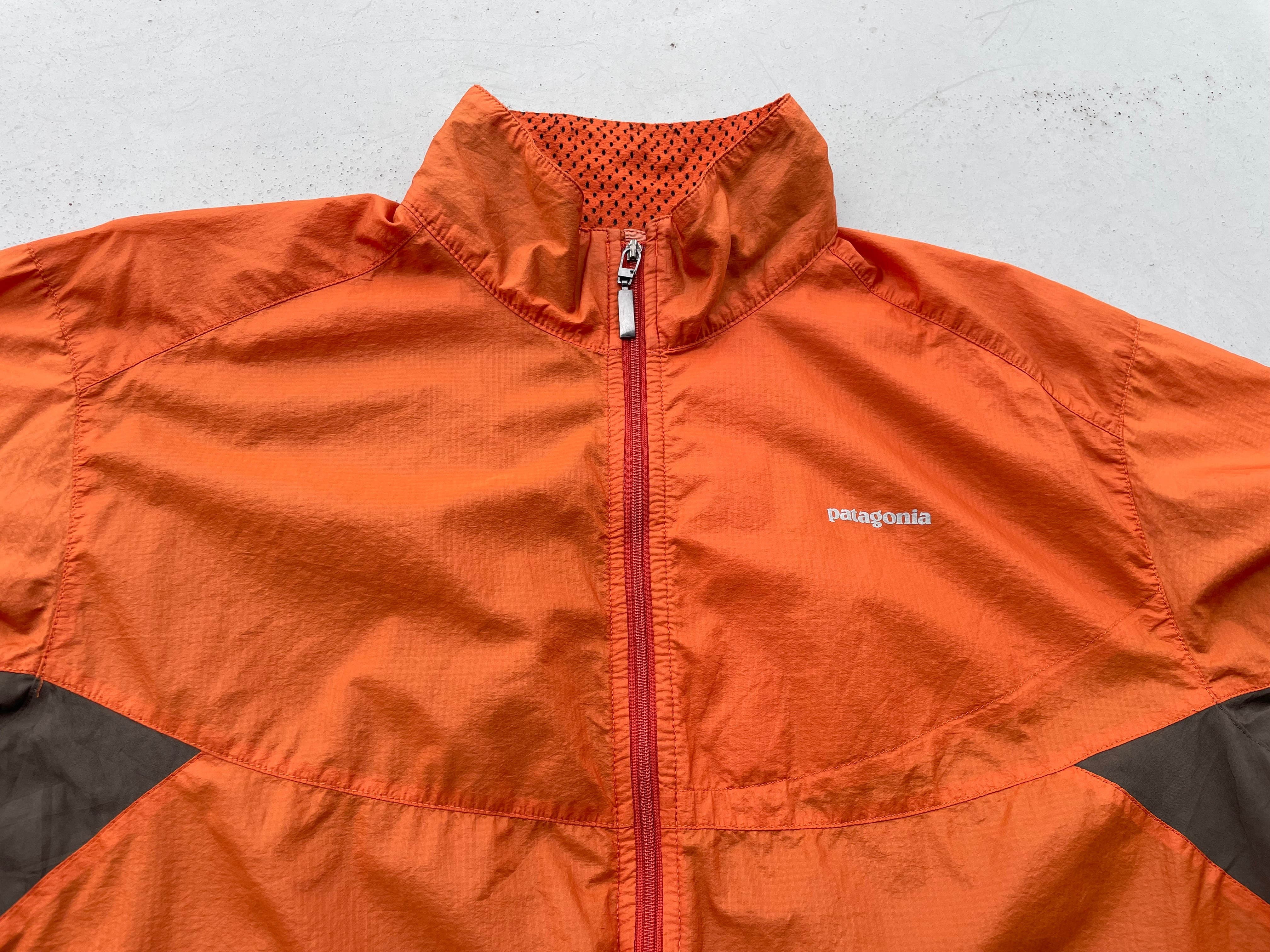 【商品詳細】パタゴニアのナイントレイルズジャケット。サイズはM。カラーはオレンジ。09年ベトナム製。超薄手なナイロンジャケット。軽量で伸縮性のある生地でスポーツシーンやアウトドアな場面でも重宝しそうです。オールシーズン使えるので一枚持っておいて良いやつです。薄手でバッグインしてまかさばらずに持ち歩けます。おすすめ。