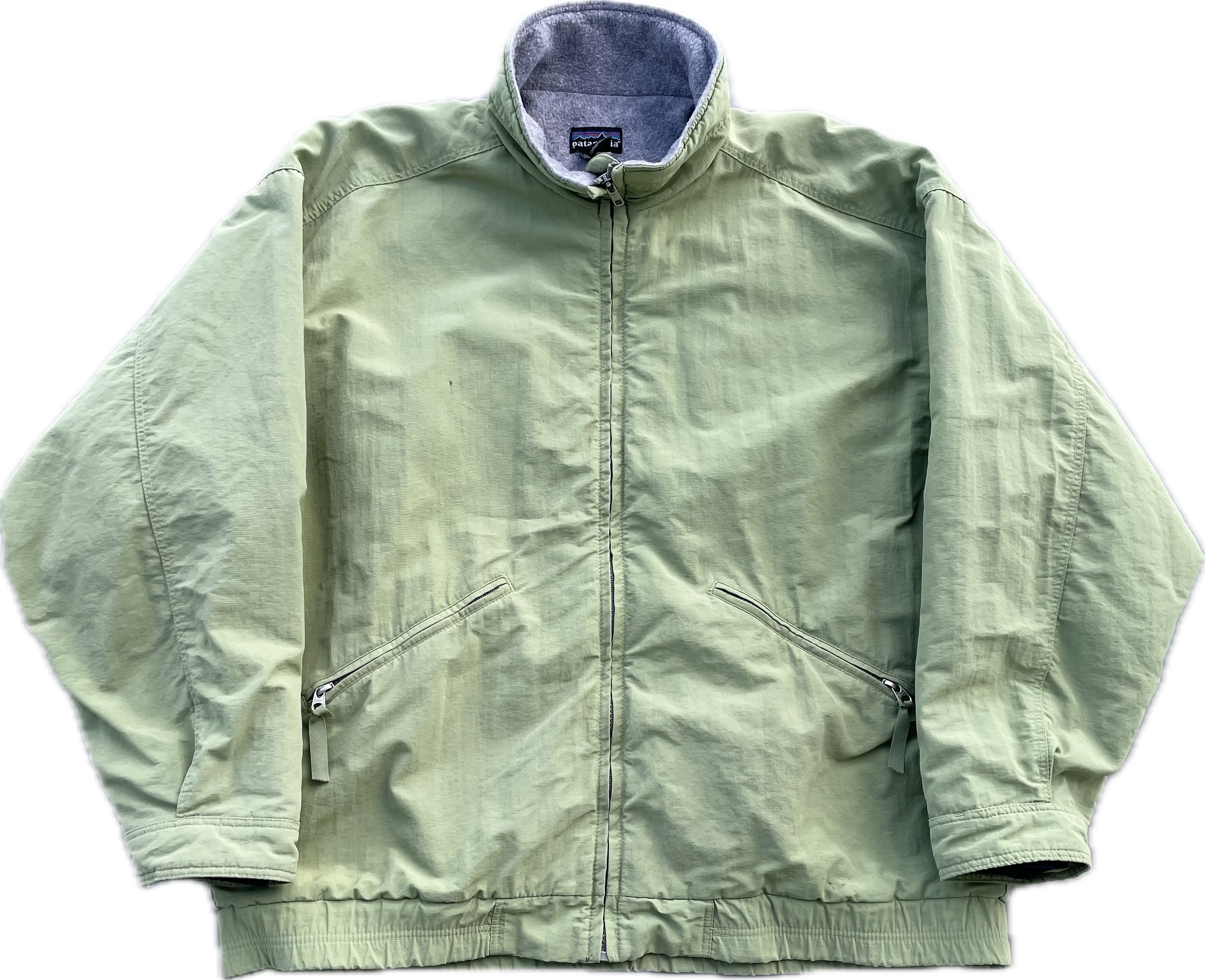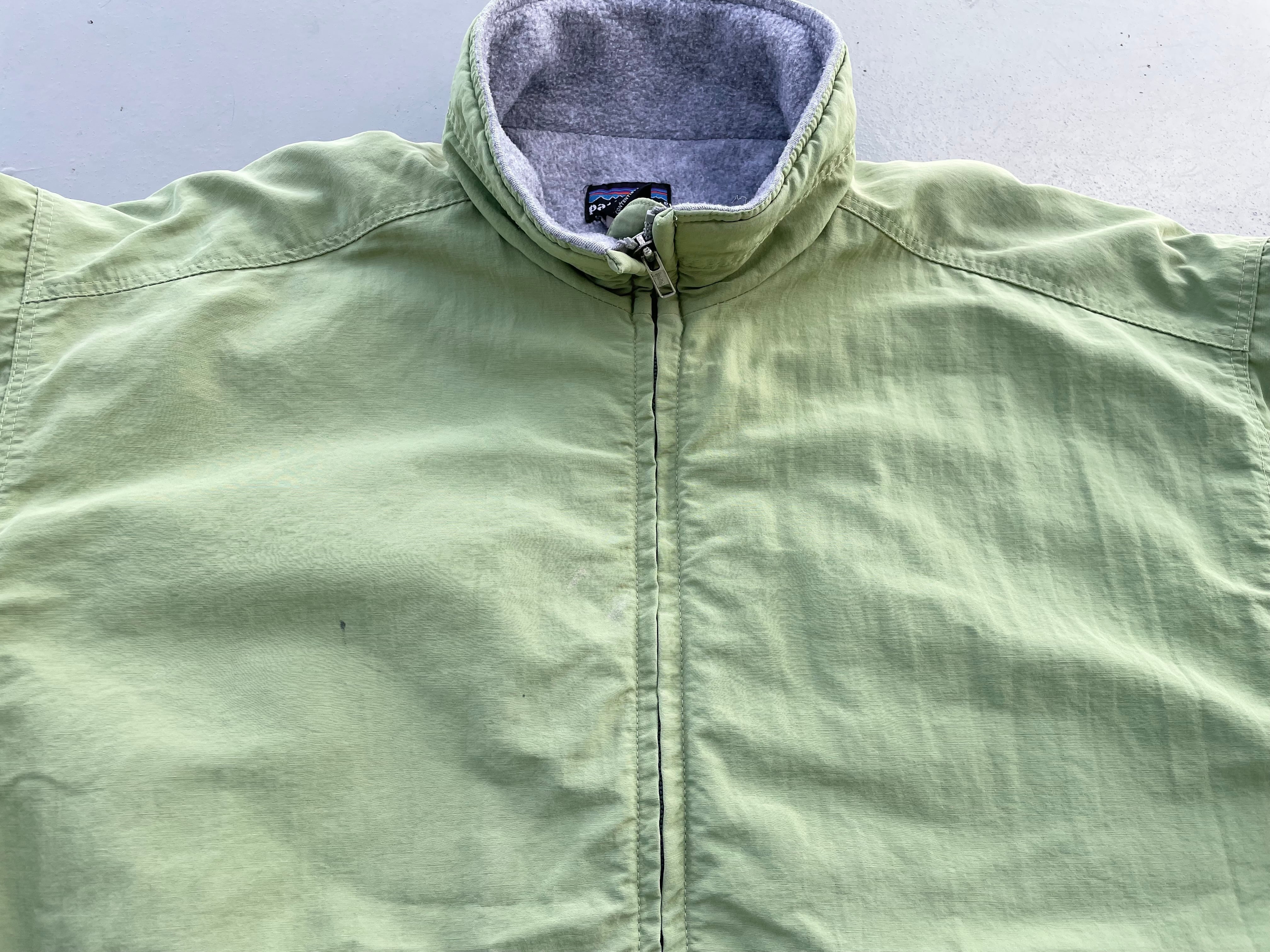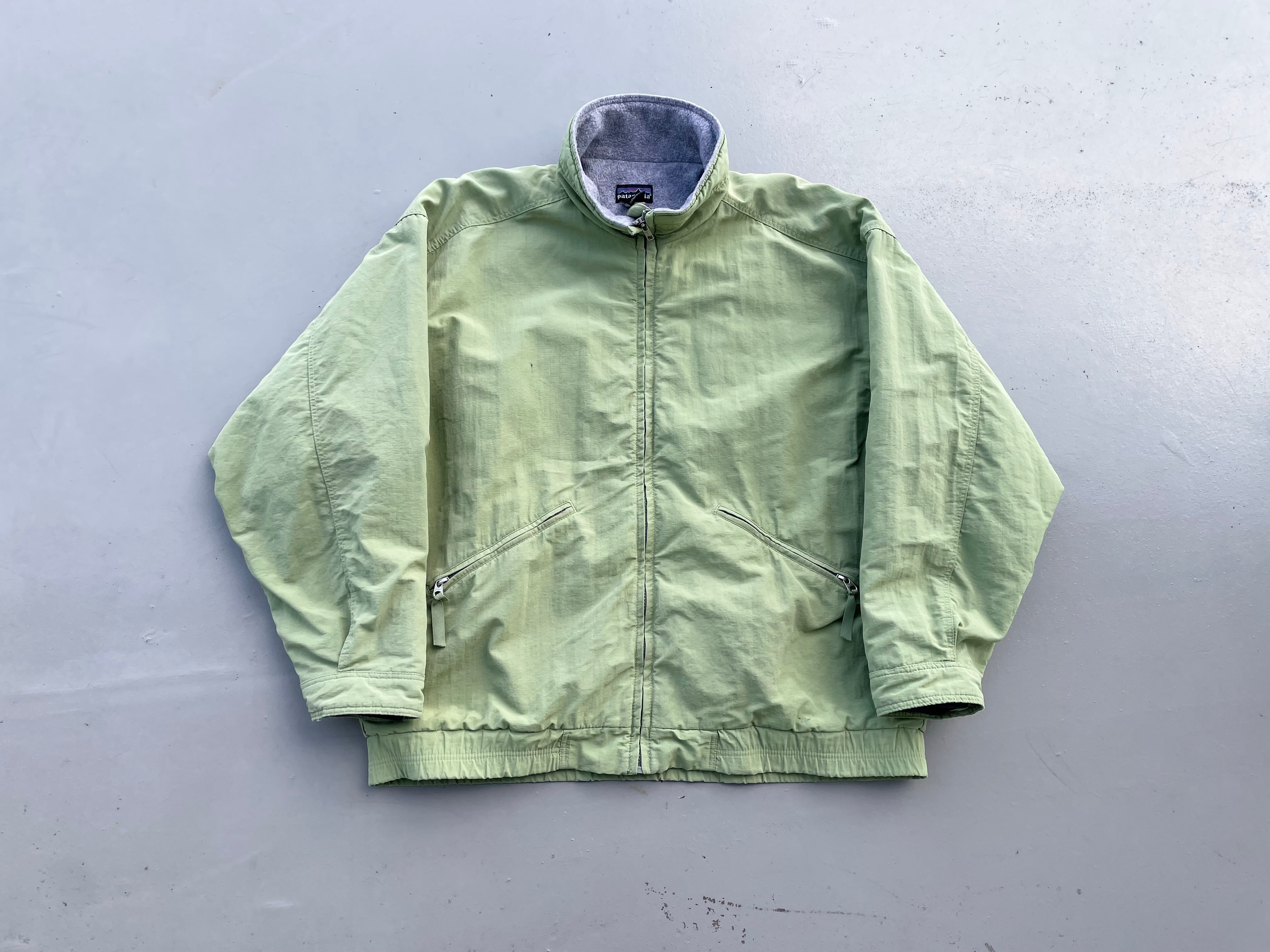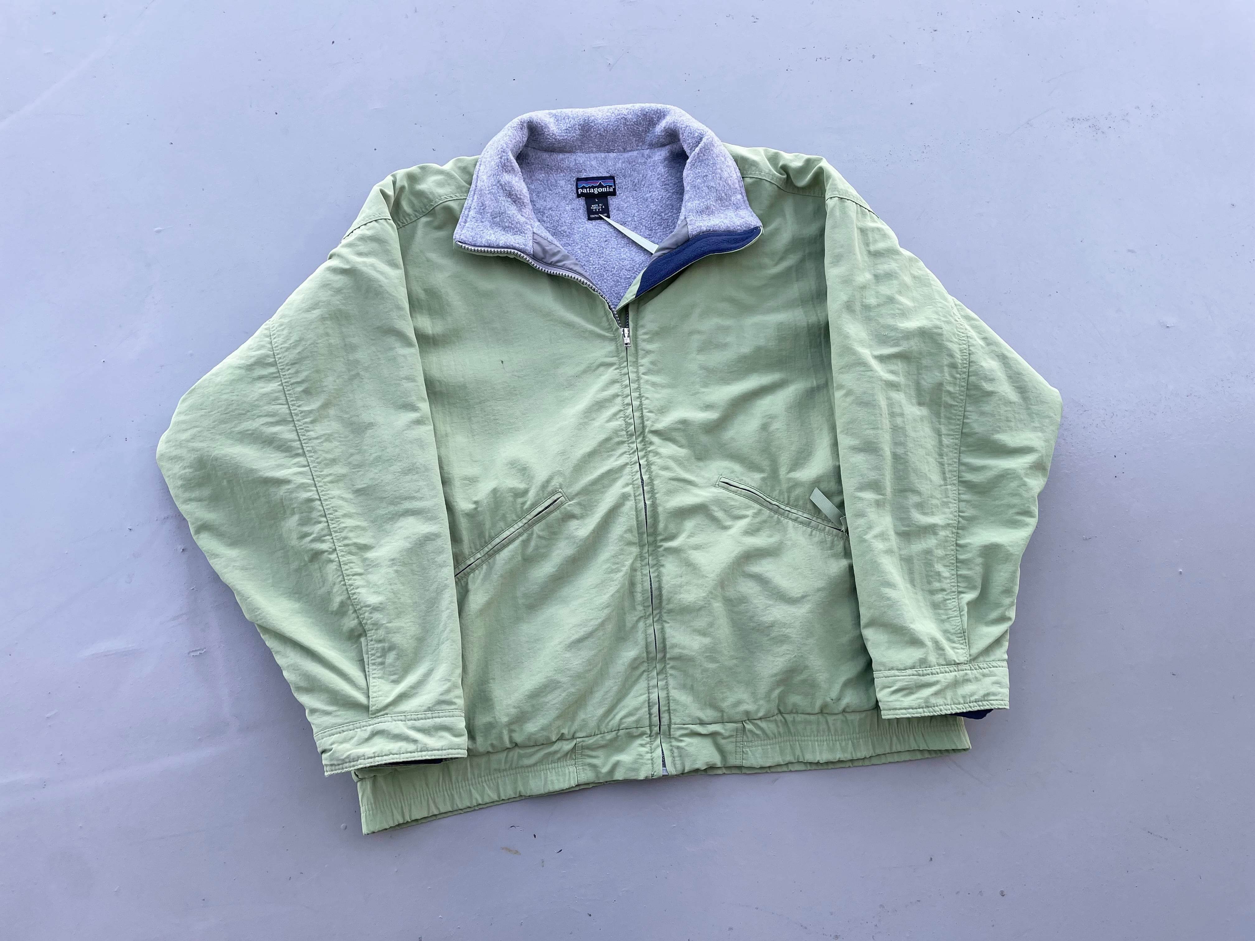 【商品詳細】パタゴニアのシェルドシンチラジャケット。サイズはL。カラーはアップルグリーン。98年USA製。定番モデルシェルドシンチラ。記載は無いですが恐らくウィメンズ企画物の変わり種。袖先のインナーカフスや襟裏のピスタグ仕様等、よく見るシェルドシンチラとは少し変わった作り。実寸の通り着丈長すぎず身幅たっぷりの作りで旬なシルエットかと。とにかくカラーが調子良いです。