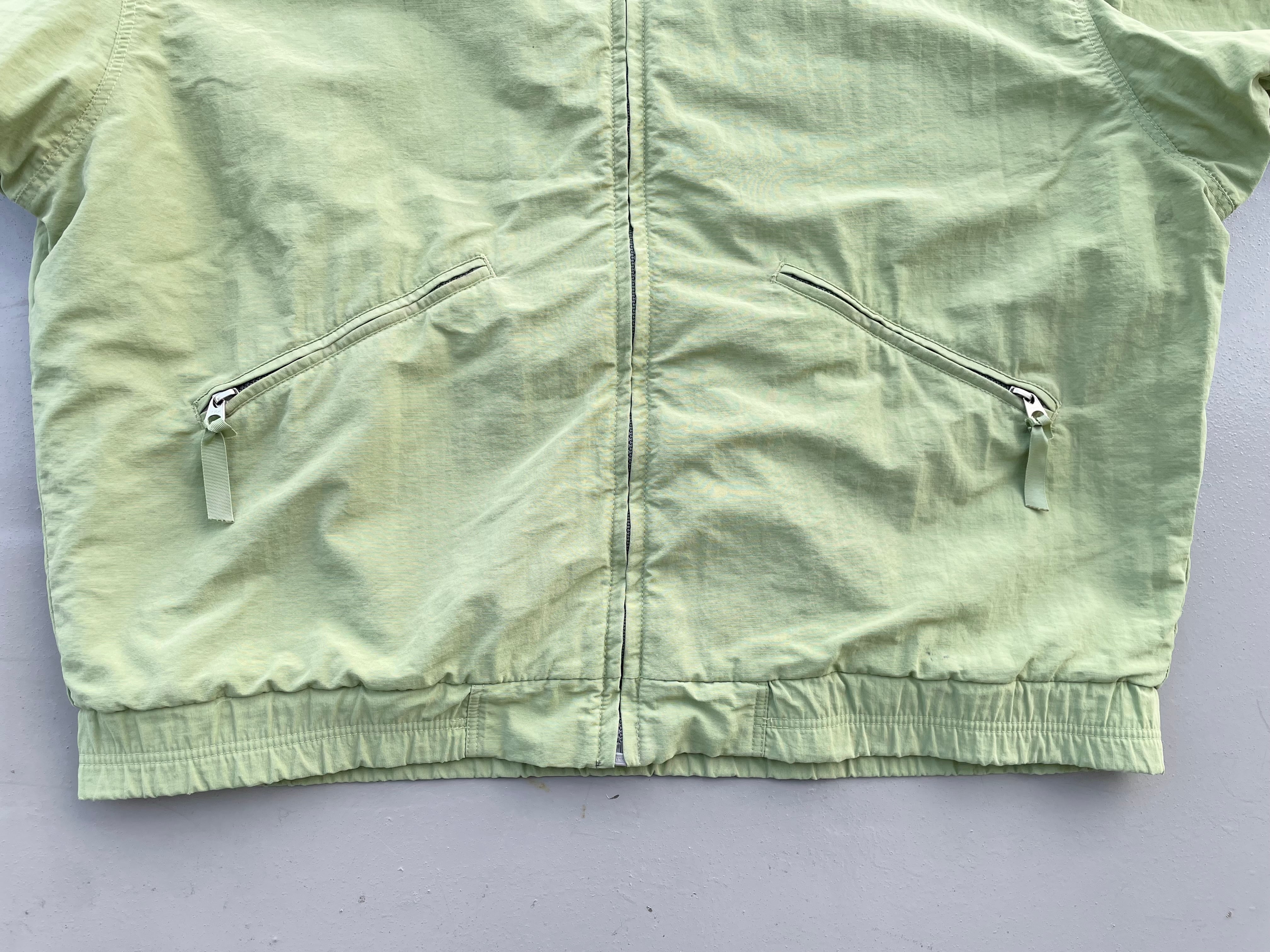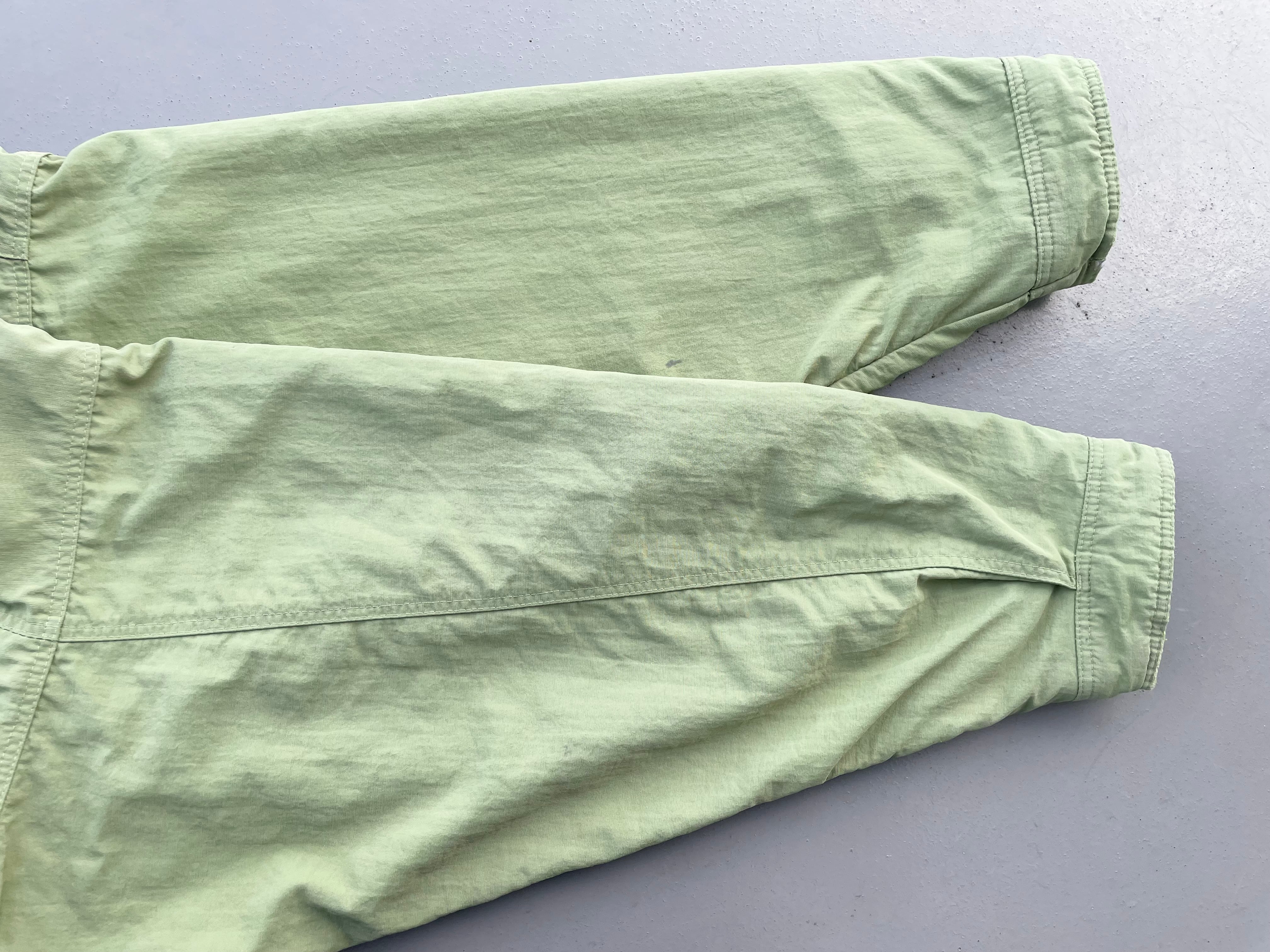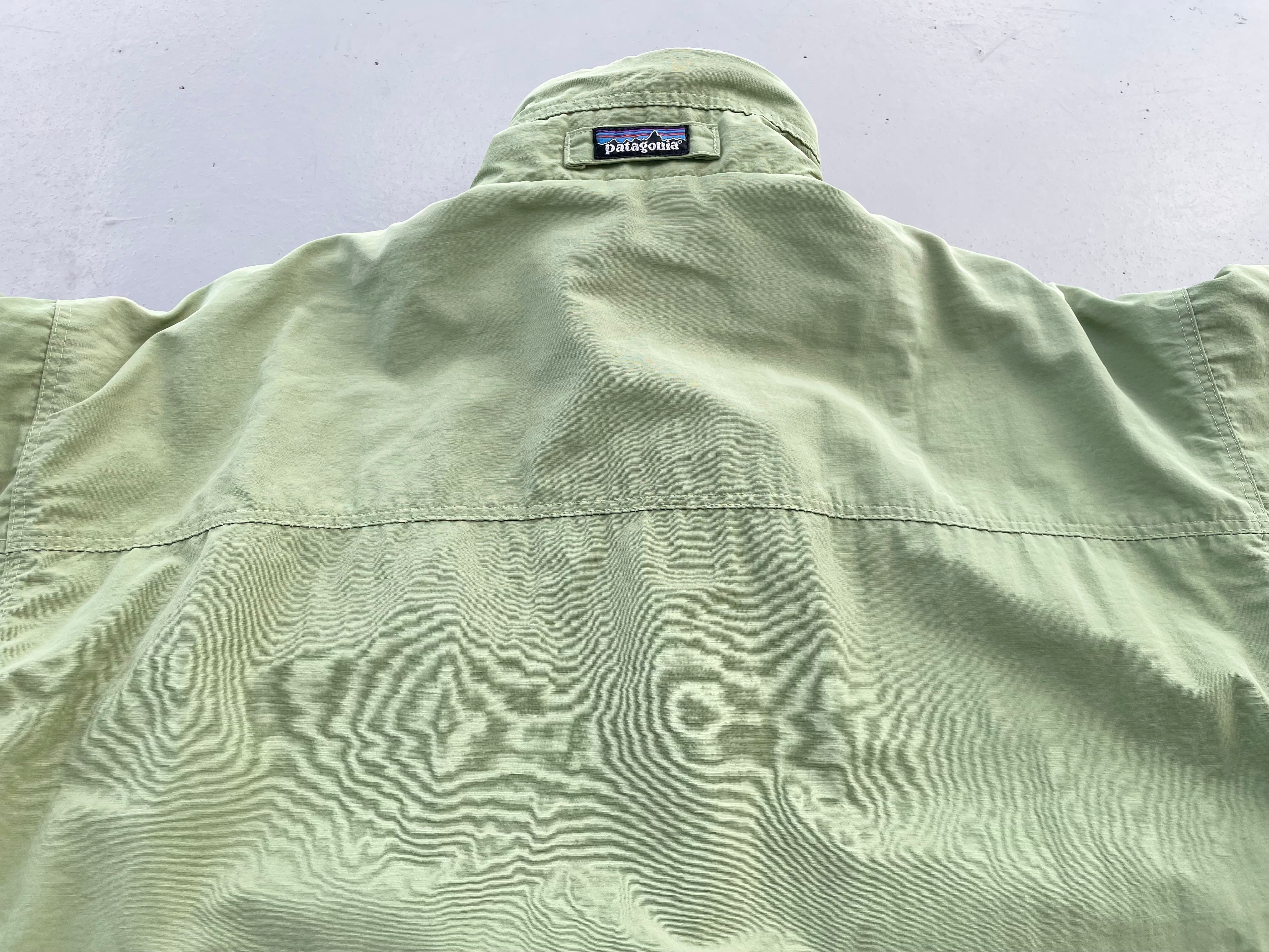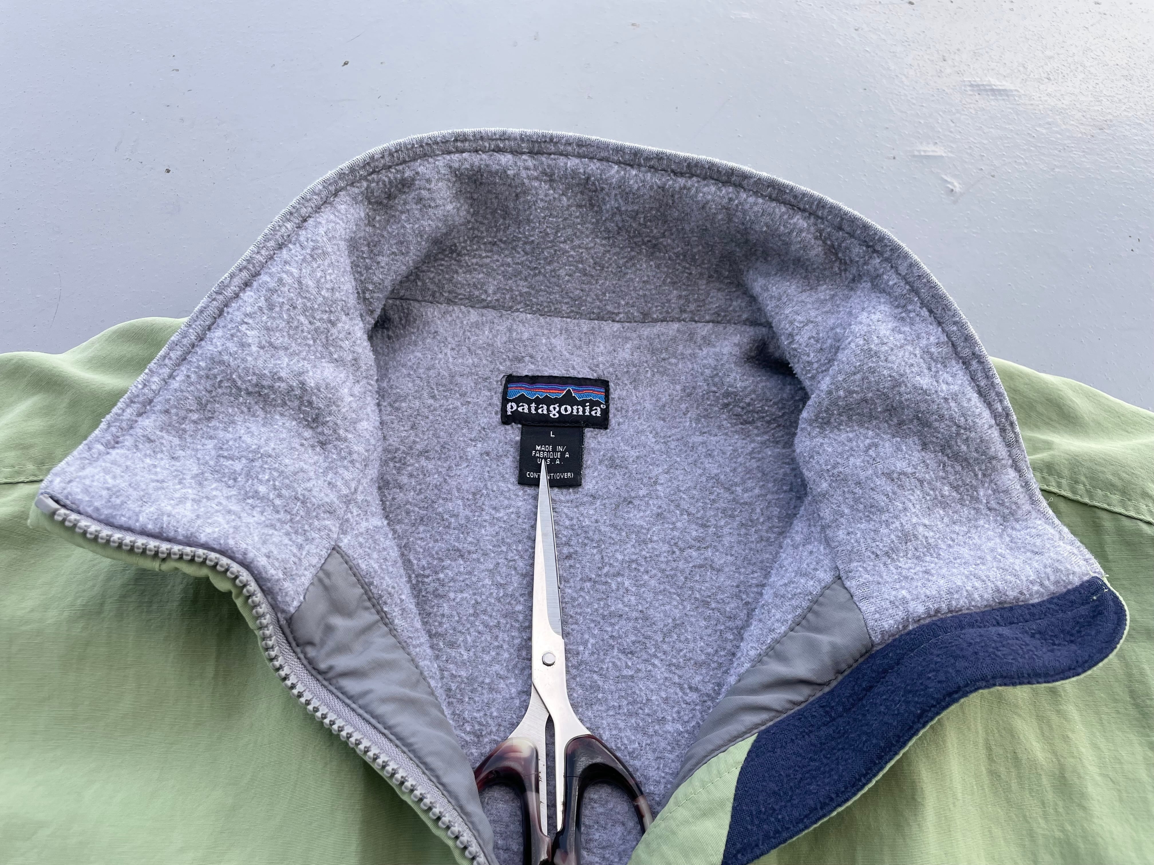【商品詳細】パタゴニアのシェルドシンチラジャケット。サイズはL。カラーはアップルグリーン。98年USA製。定番モデルシェルドシンチラ。記載は無いですが恐らくウィメンズ企画物の変わり種。袖先のインナーカフスや襟裏のピスタグ仕様等、よく見るシェルドシンチラとは少し変わった作り。実寸の通り着丈長すぎず身幅たっぷりの作りで旬なシルエットかと。とにかくカラーが調子良いです。