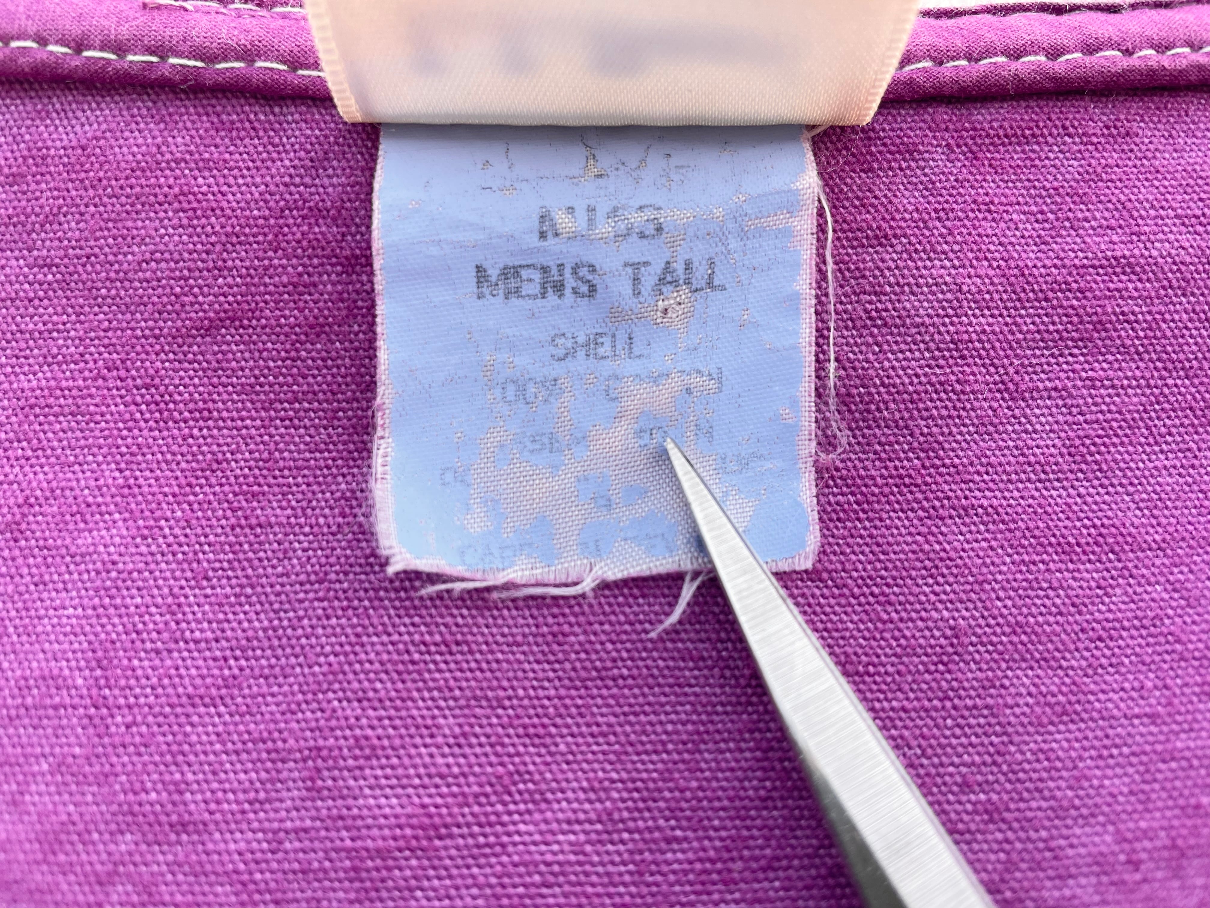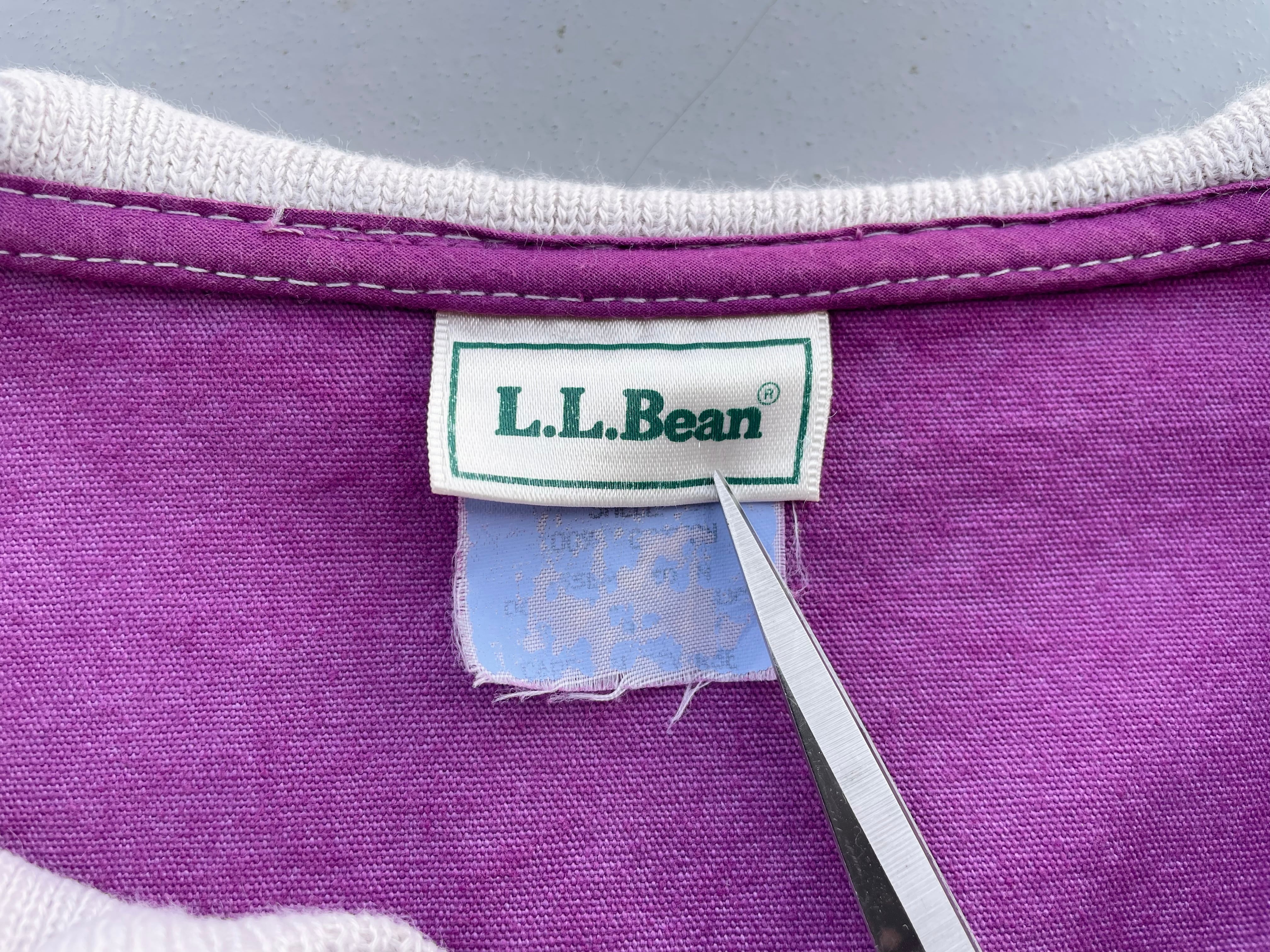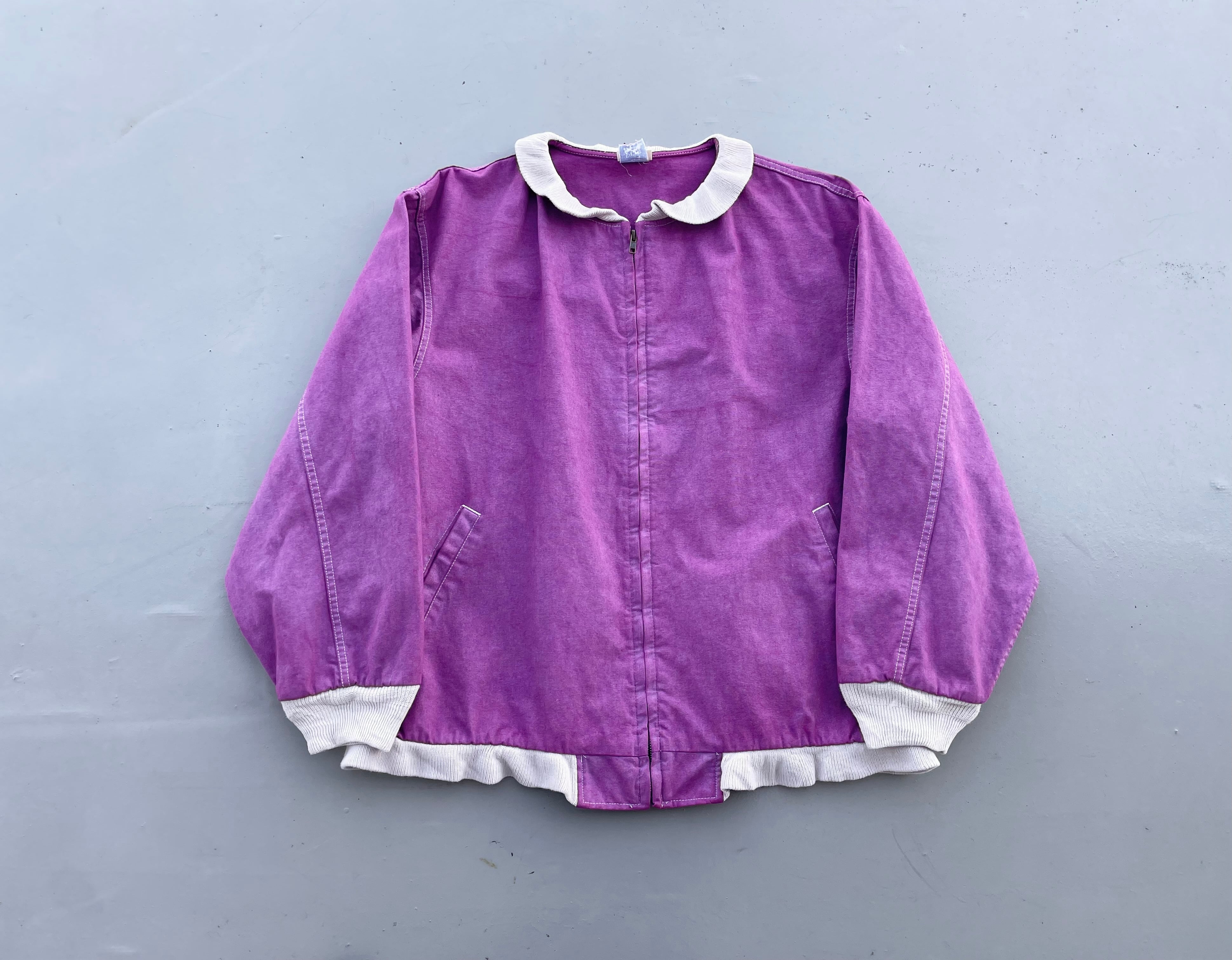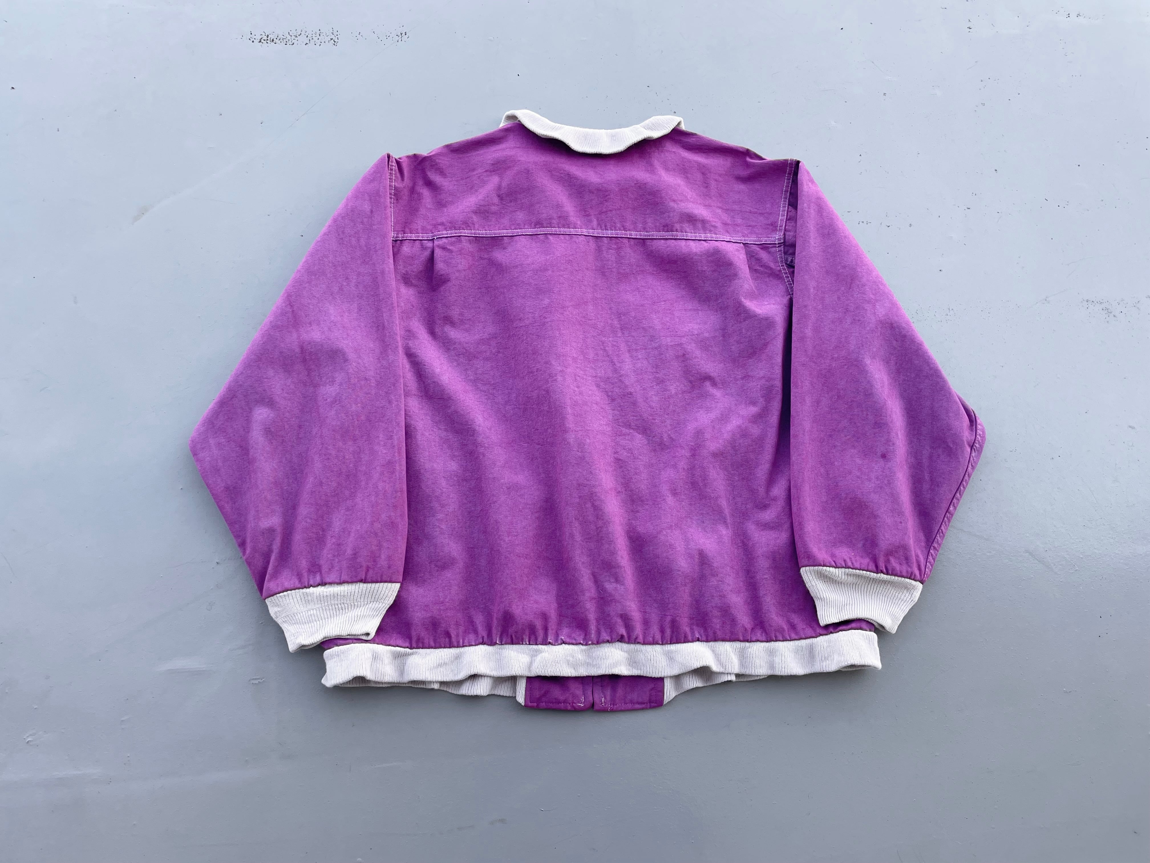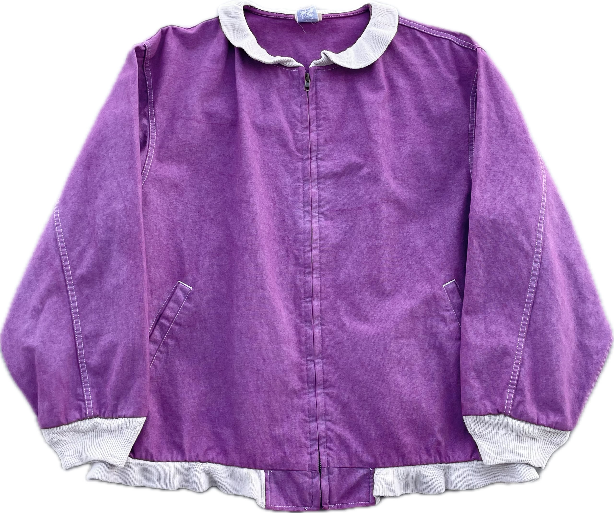 【商品詳細】エルエルビーンのコットンジップアップブルゾン。サイズはTALL。カラーはパープル。90年代頃製。後染めで入るパープルカラーとリブのホワイトカラーのコンストラクションがグッドな一着。着丈長すぎず身幅しっかりある人気のディテール。