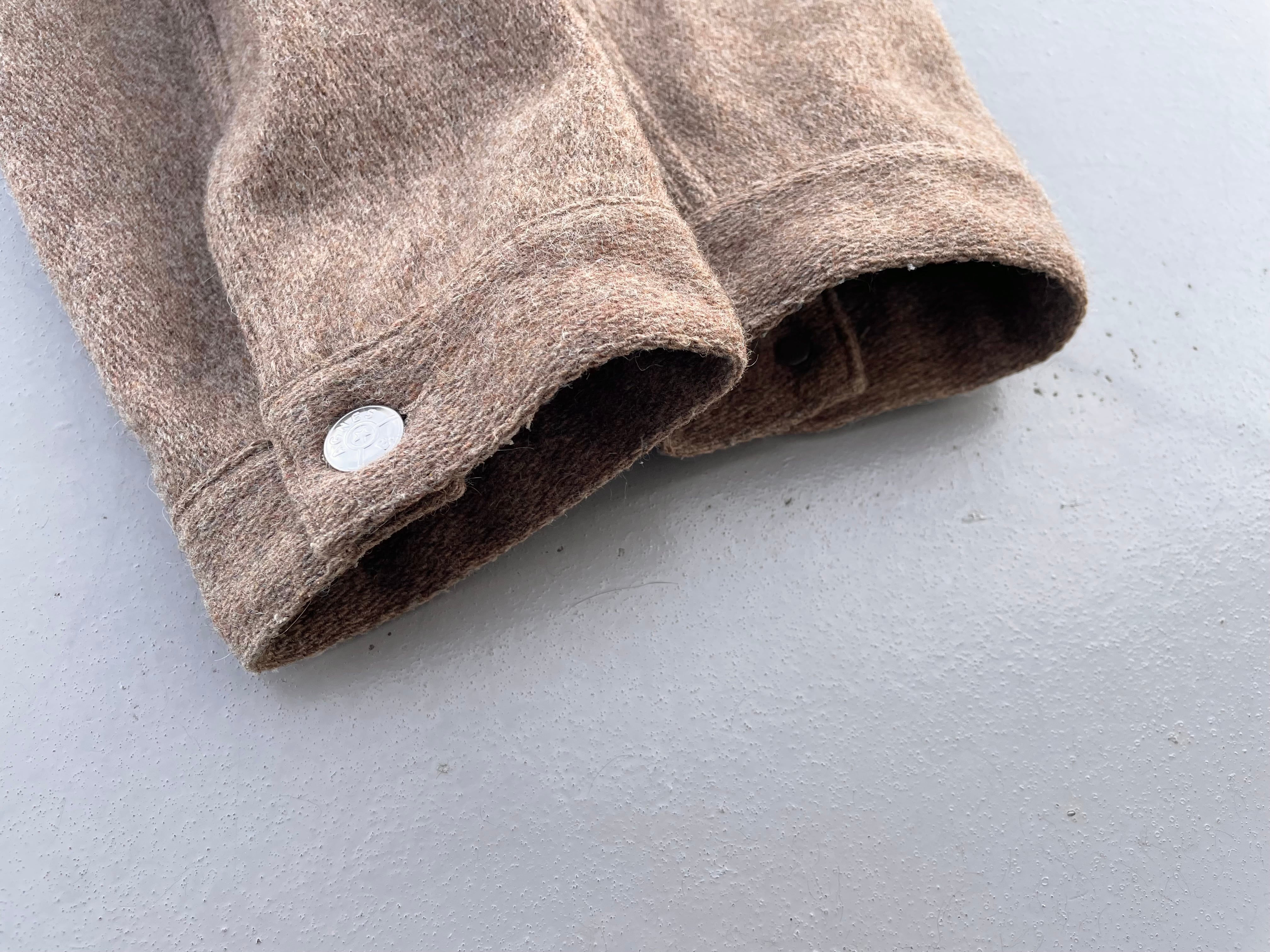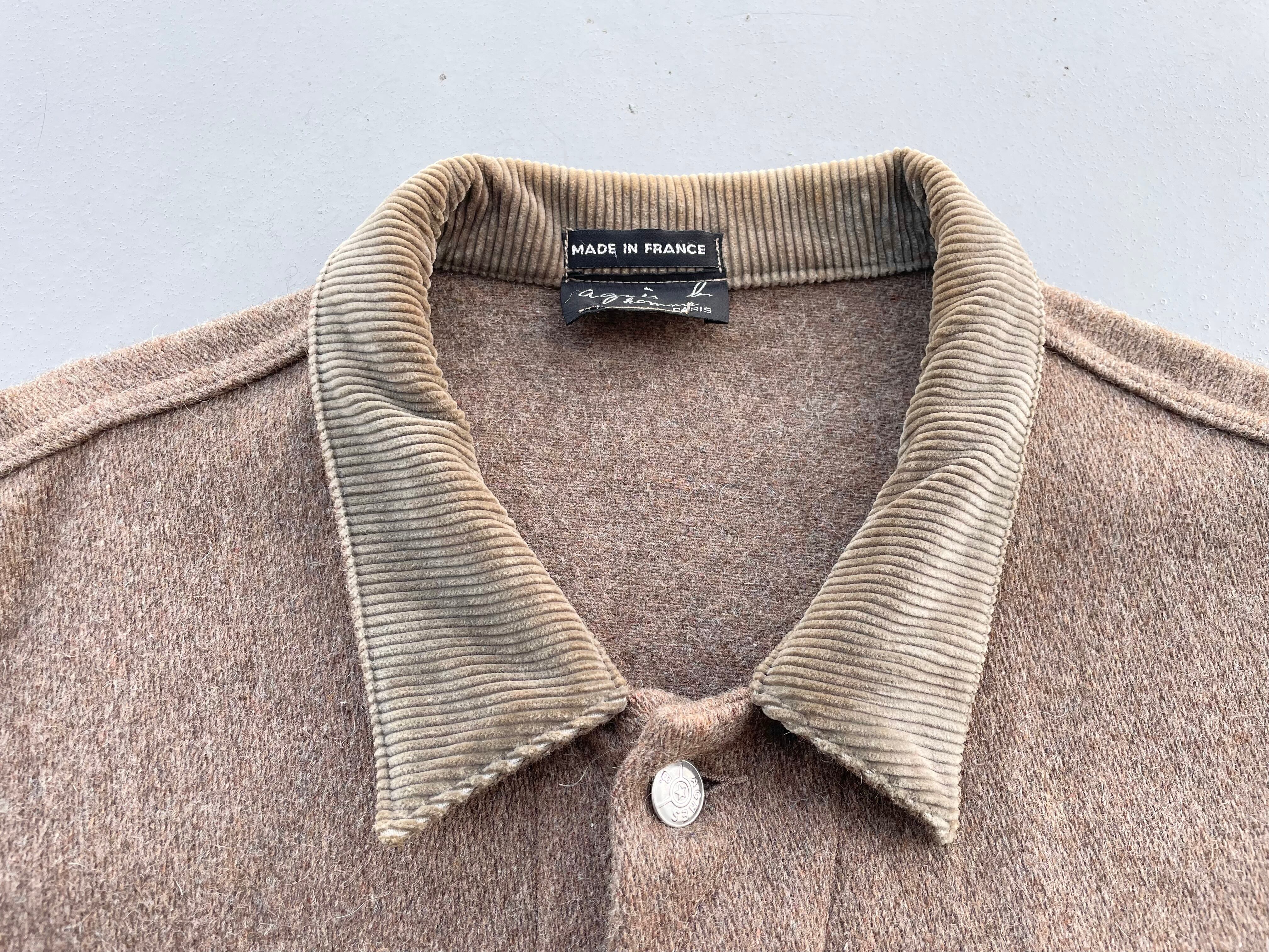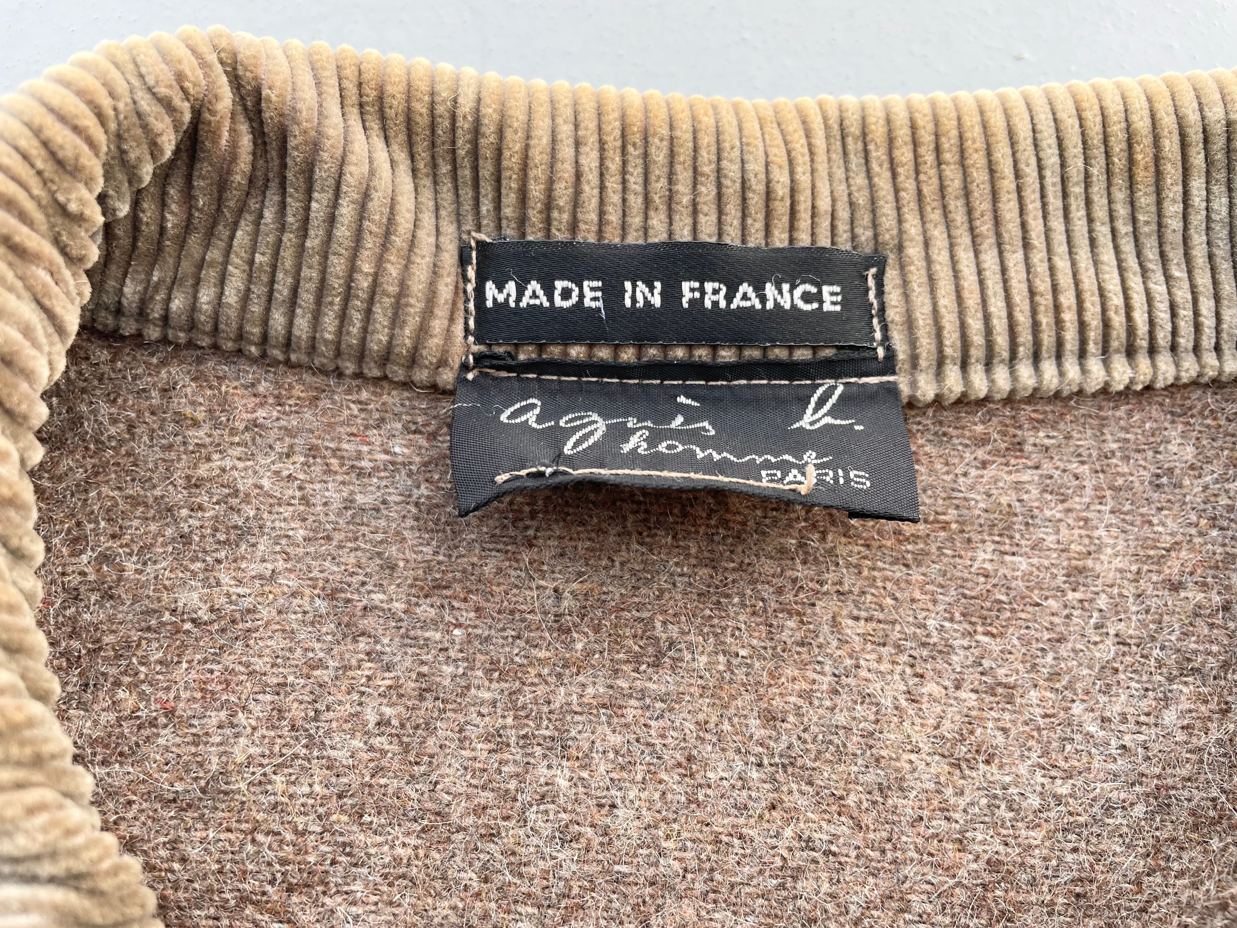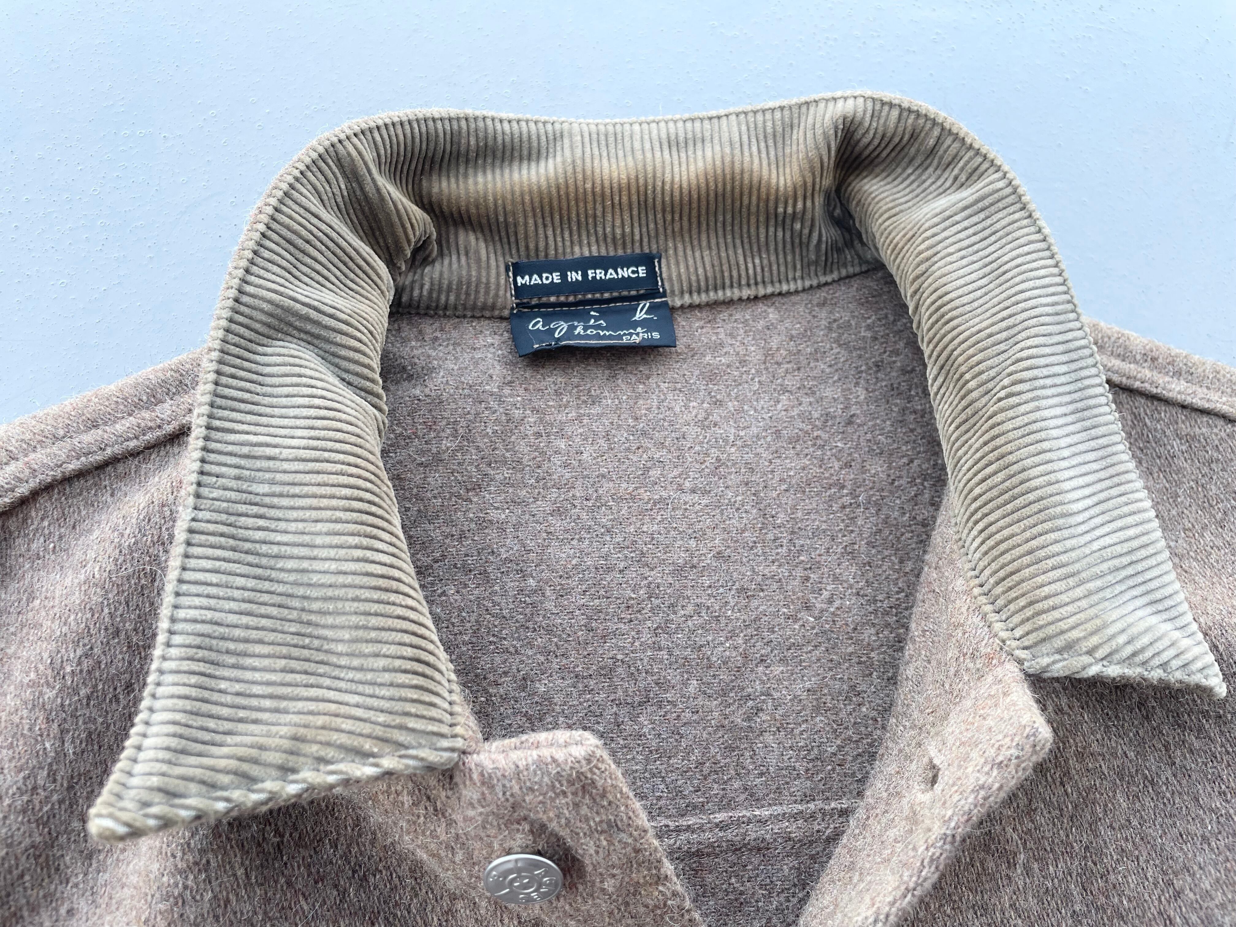 【商品詳細】アニエスベーのウールトラッカージャケット。サイズは実寸M程。カラーはキャメル。90年代フランス製。アニエスベー定番のトラッカージャケットのウール物。襟はコーデュロイ仕様の洒落た作り。身幅しっかりあるので中にも着込めそうです。ウール地は柔らかく軽い仕上がりで今時期から春先以降も重宝しそうです。