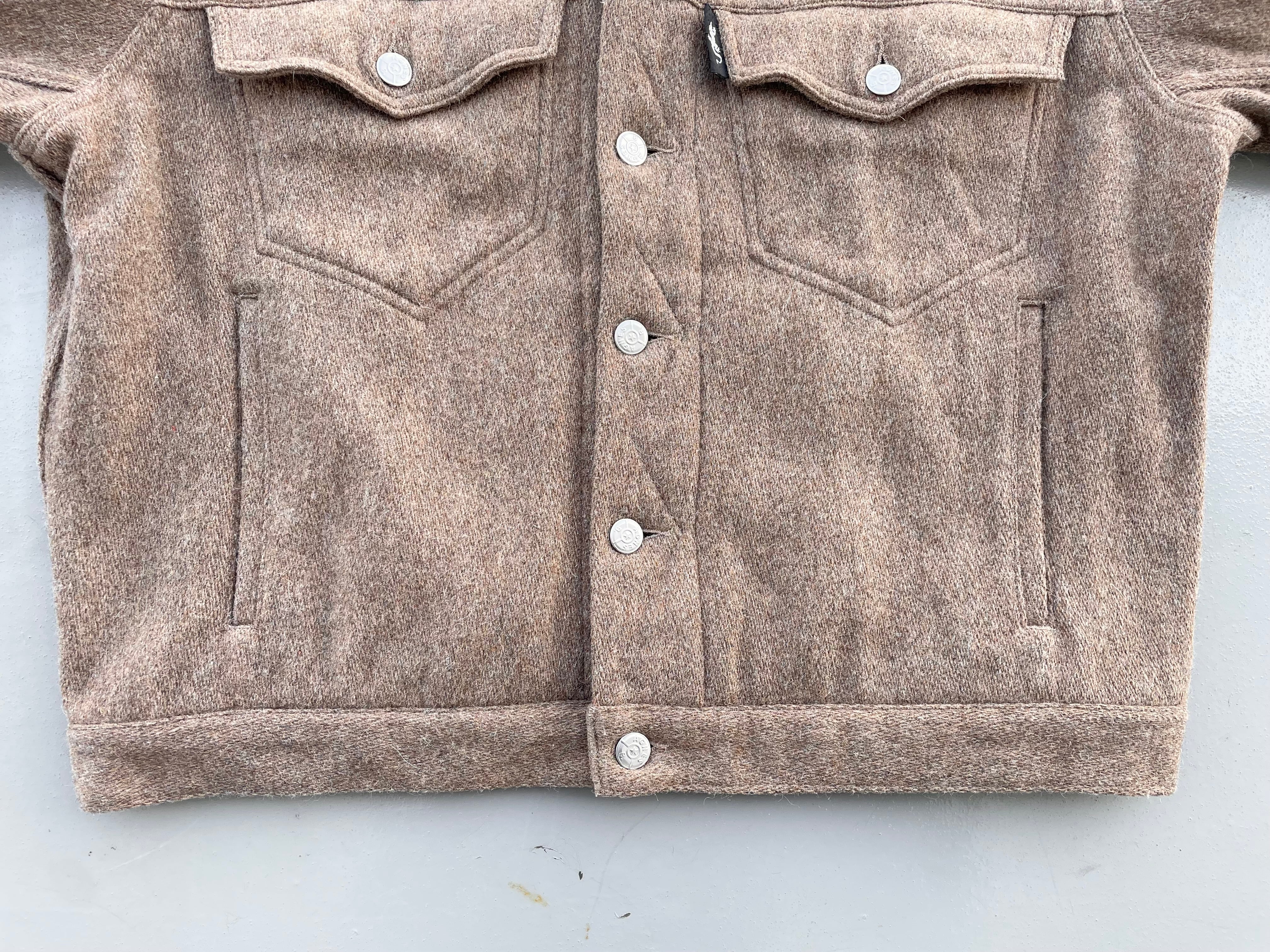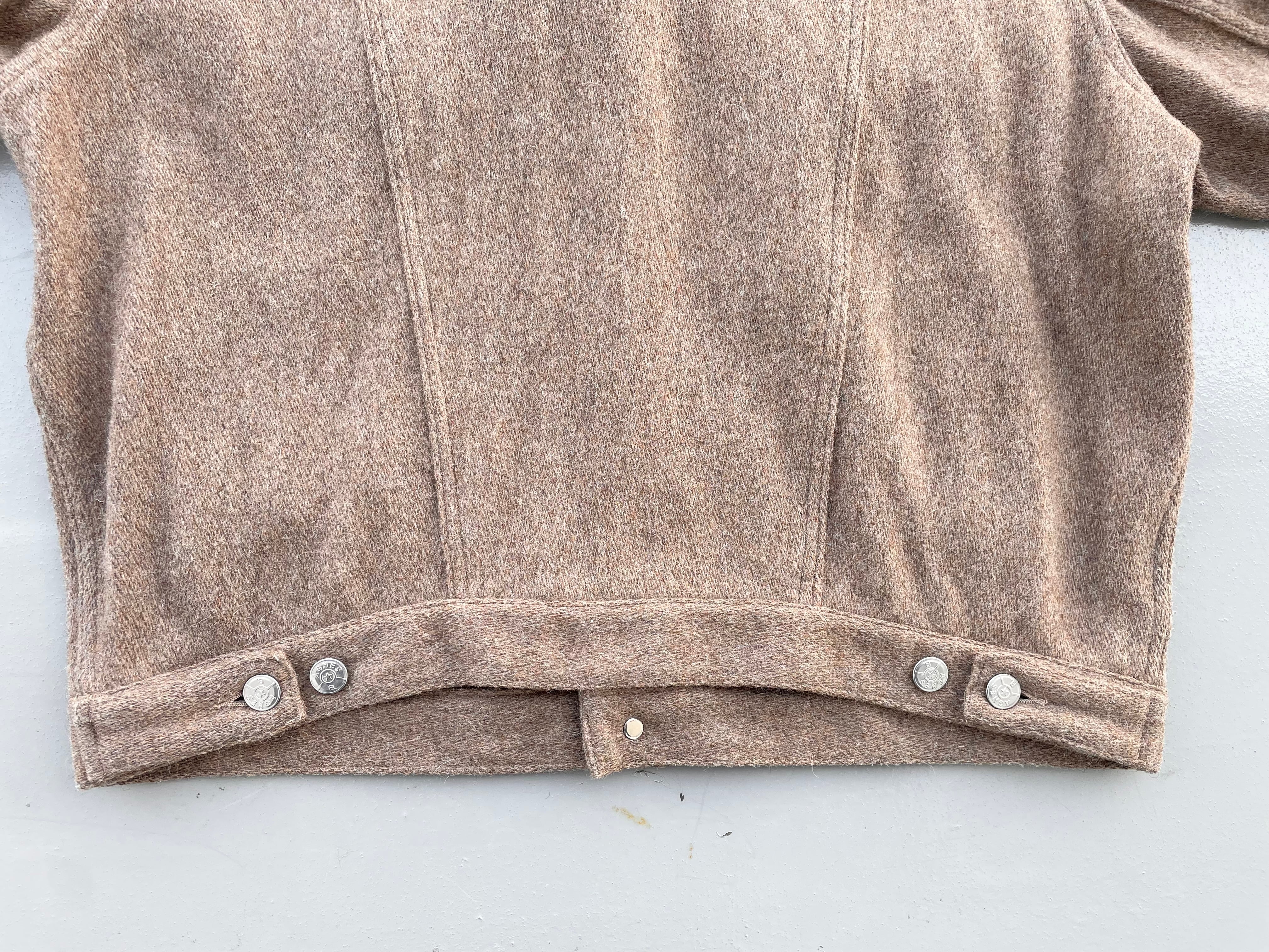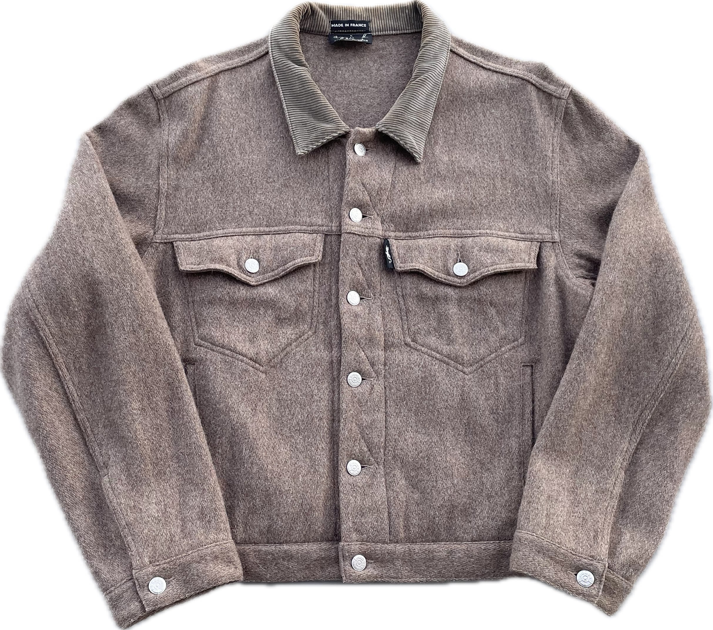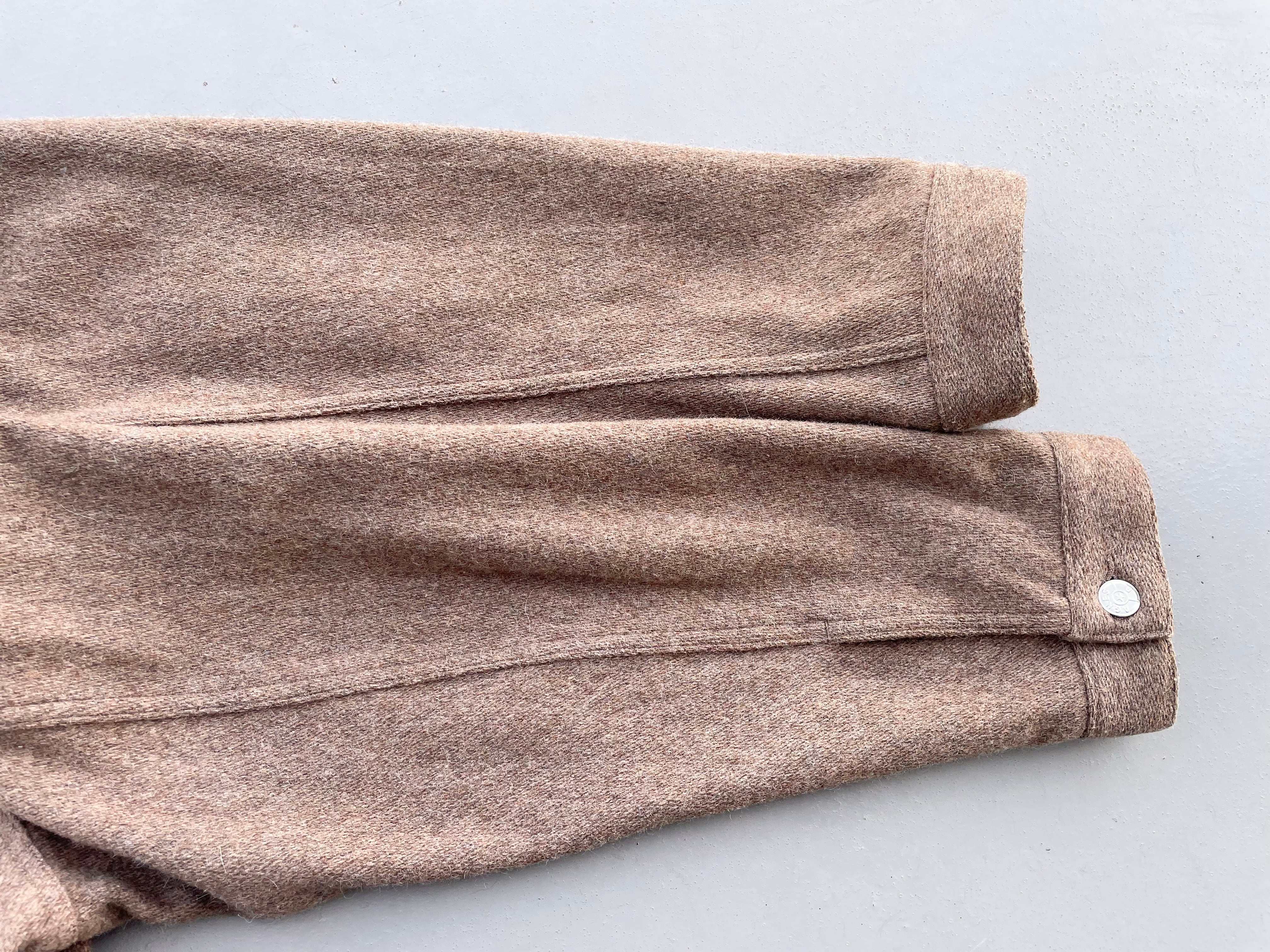 【商品詳細】アニエスベーのウールトラッカージャケット。サイズは実寸M程。カラーはキャメル。90年代フランス製。アニエスベー定番のトラッカージャケットのウール物。襟はコーデュロイ仕様の洒落た作り。身幅しっかりあるので中にも着込めそうです。ウール地は柔らかく軽い仕上がりで今時期から春先以降も重宝しそうです。