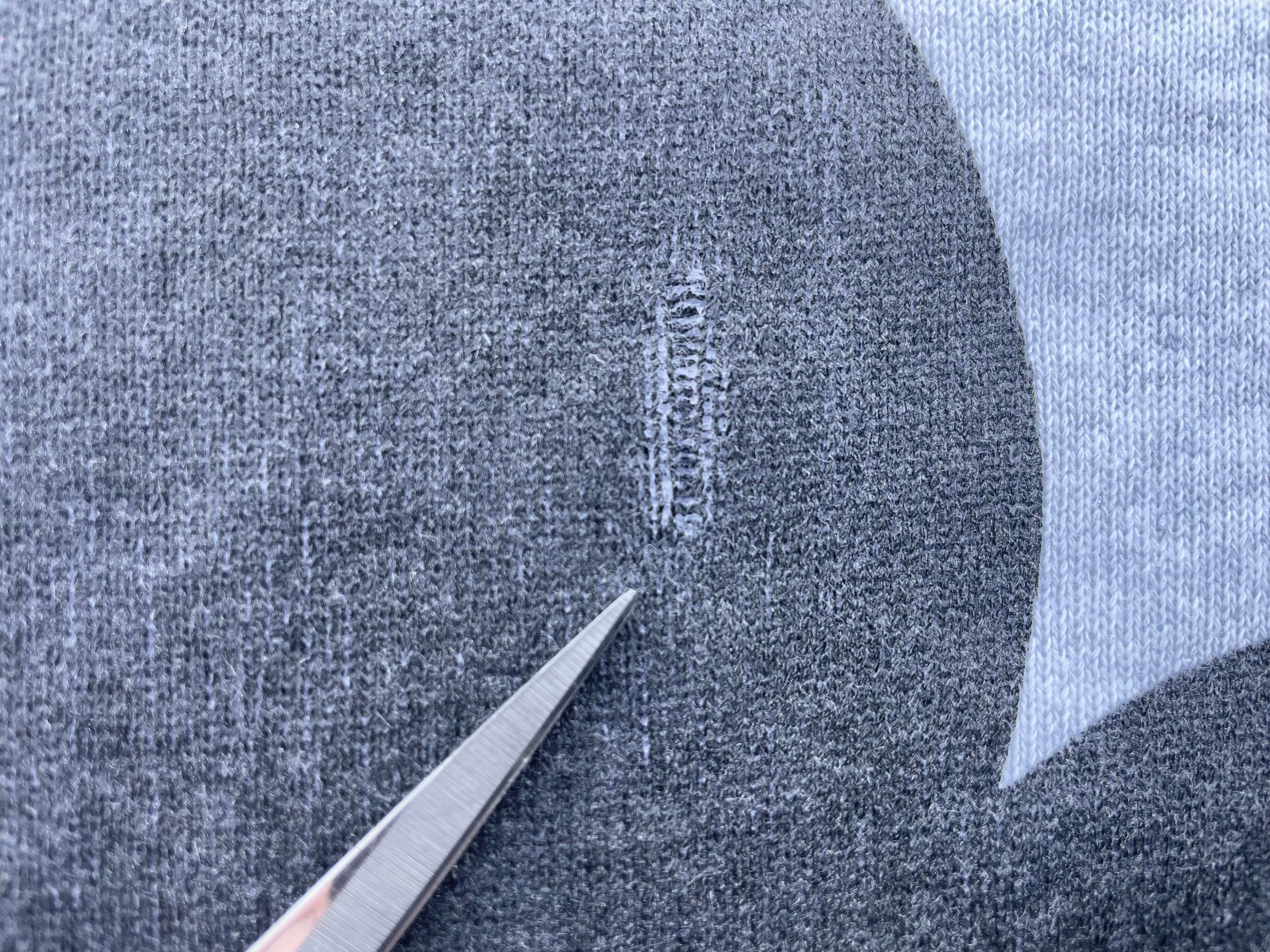 一部箇所に傷や汚れはございますが、気にならない程度かと。バッグプリントが右側にズレてるのがアメリカぽくて良いです。