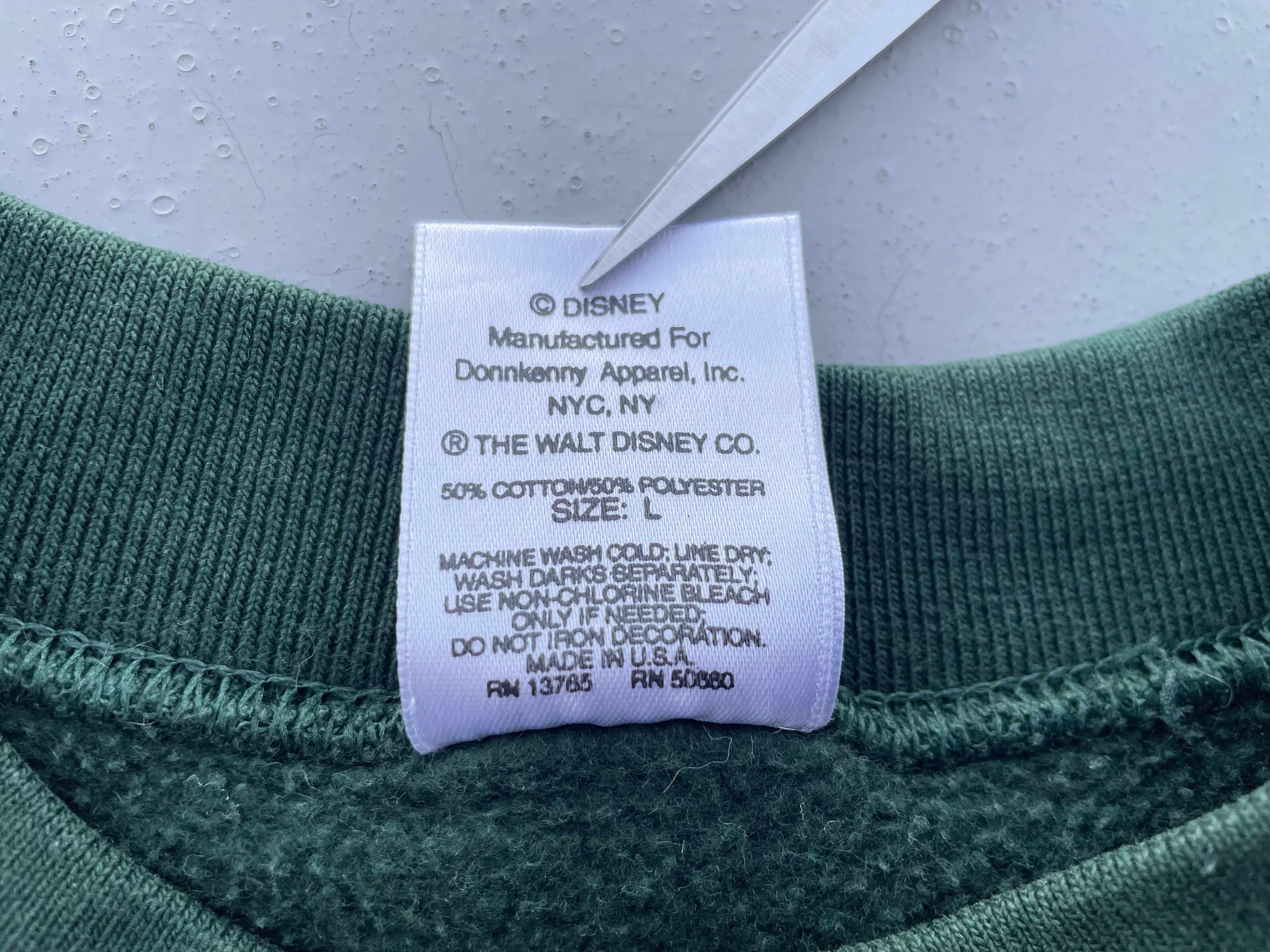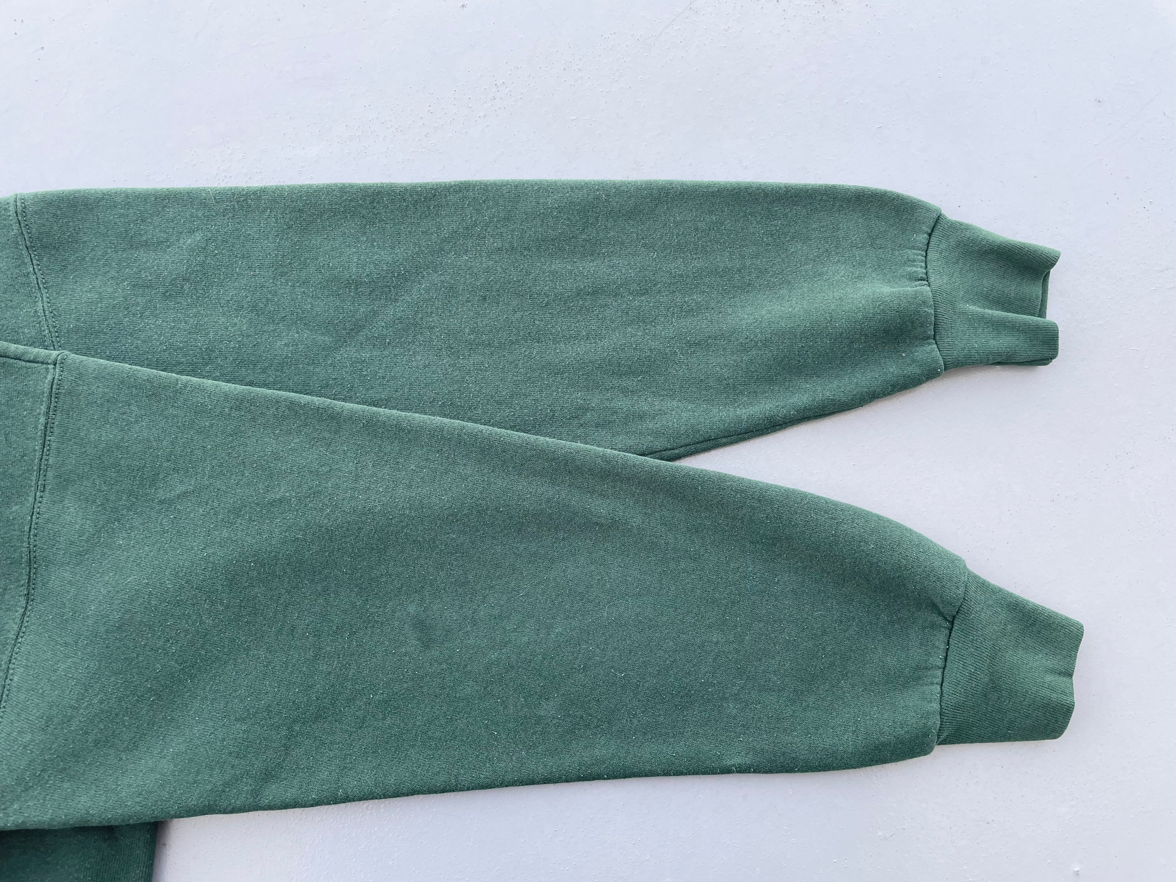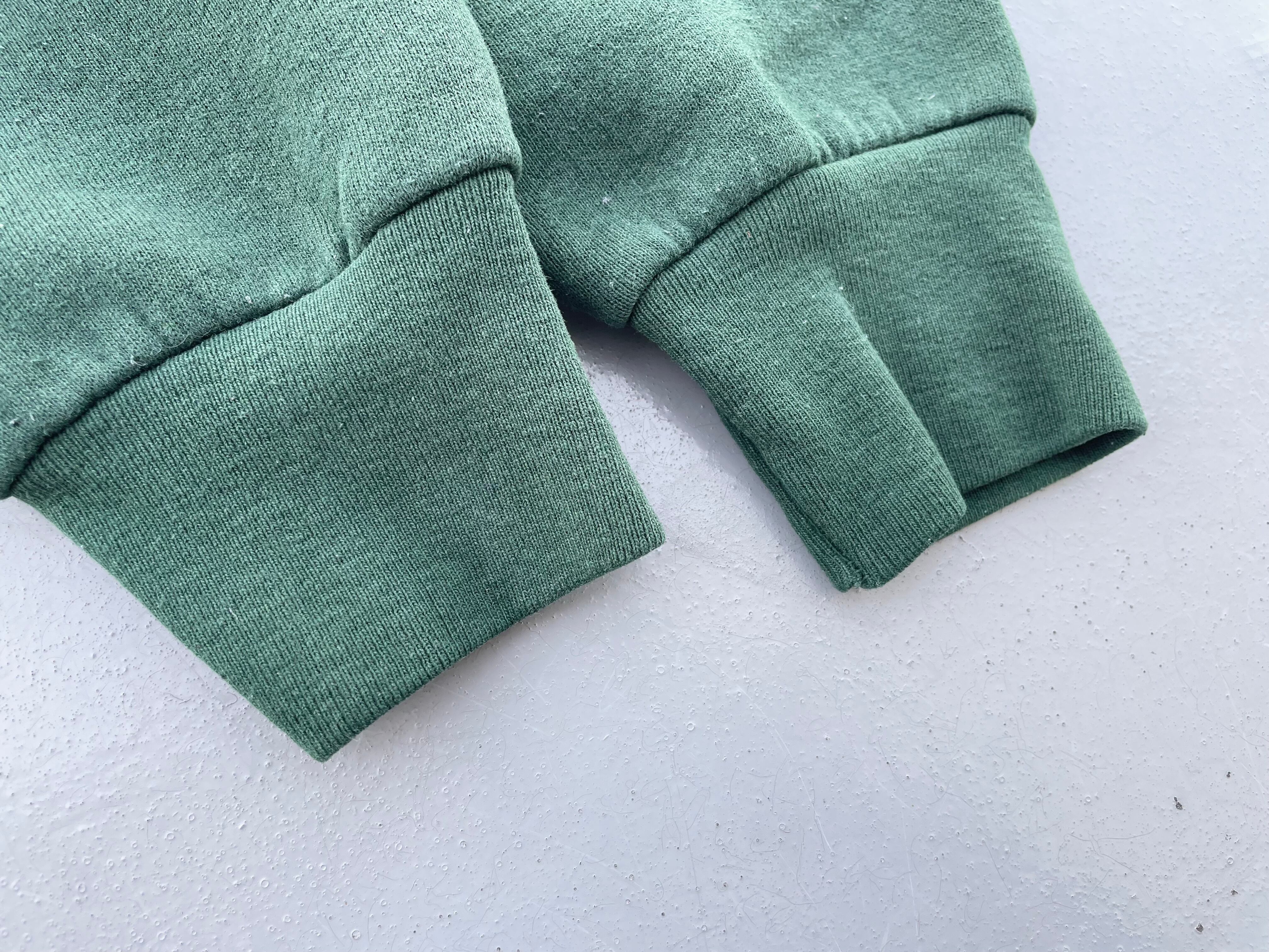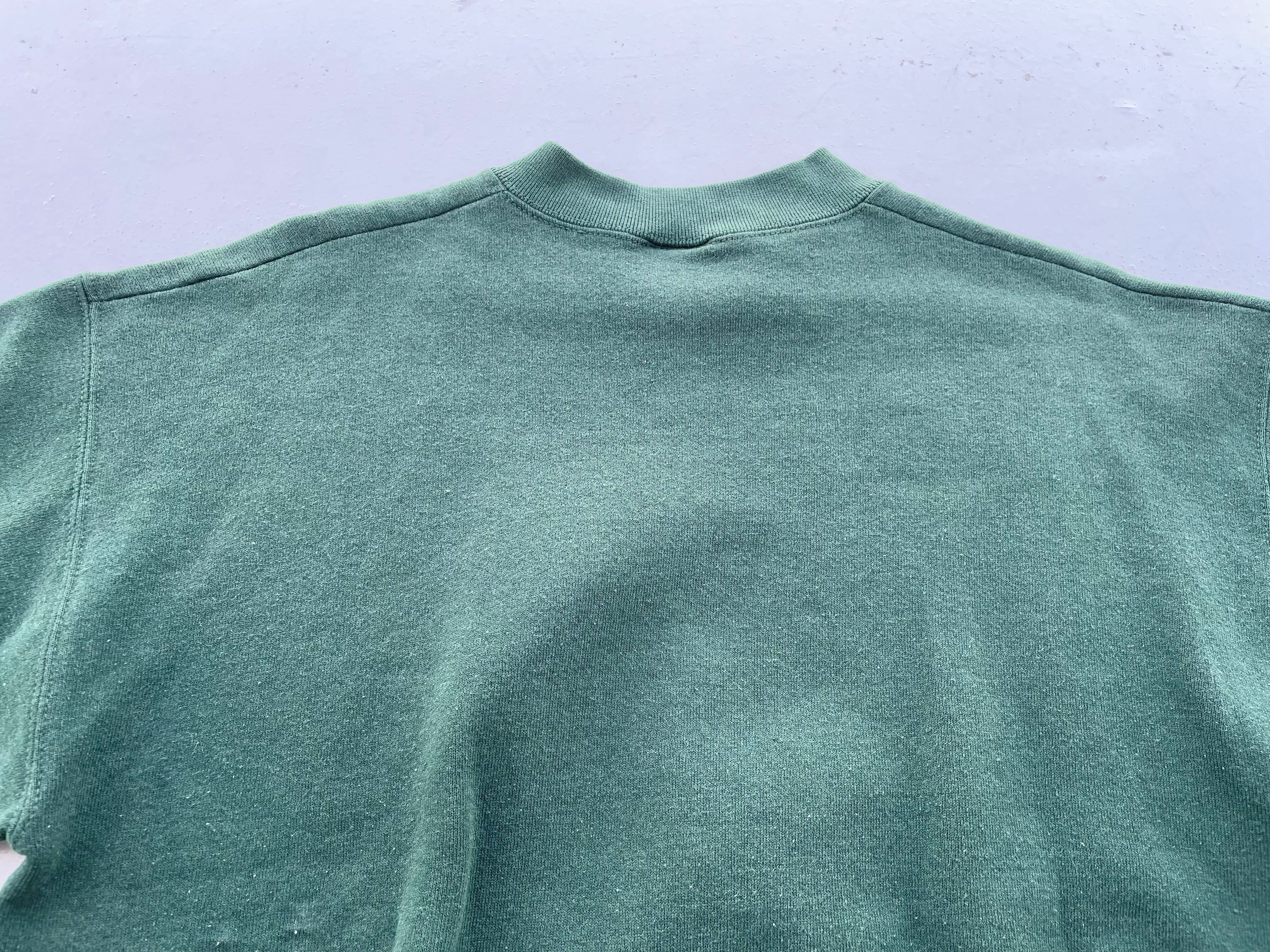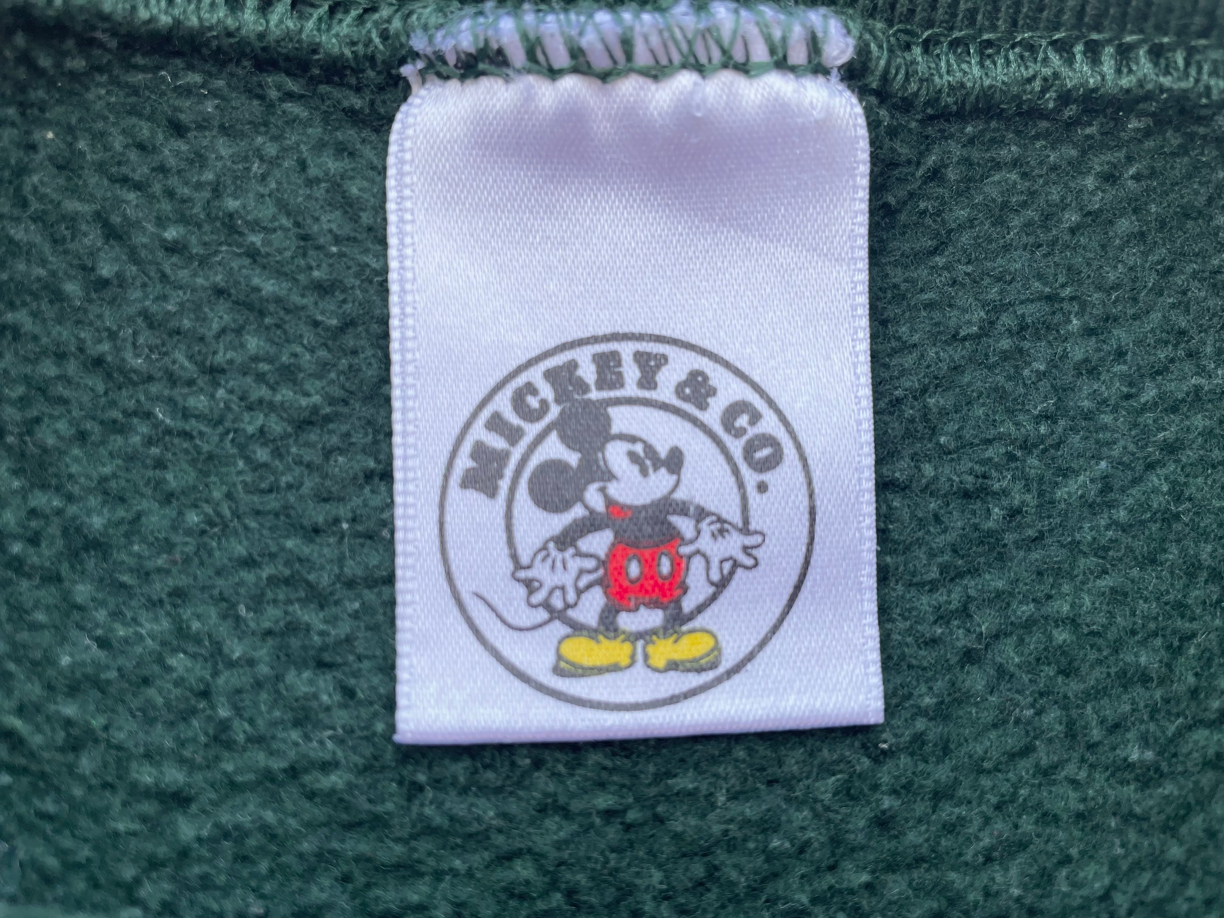 【商品詳細】ディズニーデザインズの長袖スウェット。サイズはL。90年代USA製。カラーはグリーン。人気の座り込みパターン。フロントに大きくプリントされたミッキーがインパクトあります。ディープグリーンな色味で洒落てます。