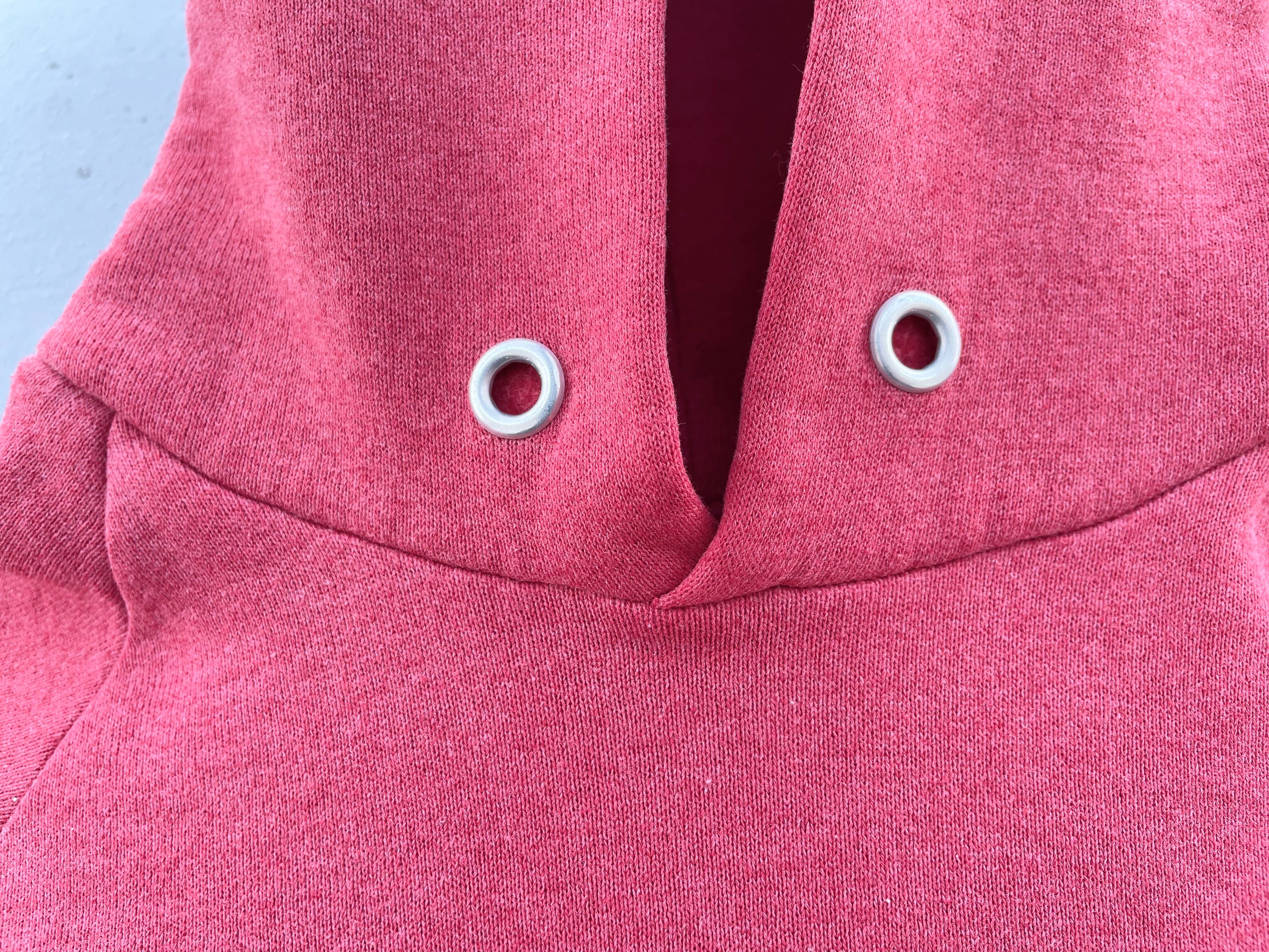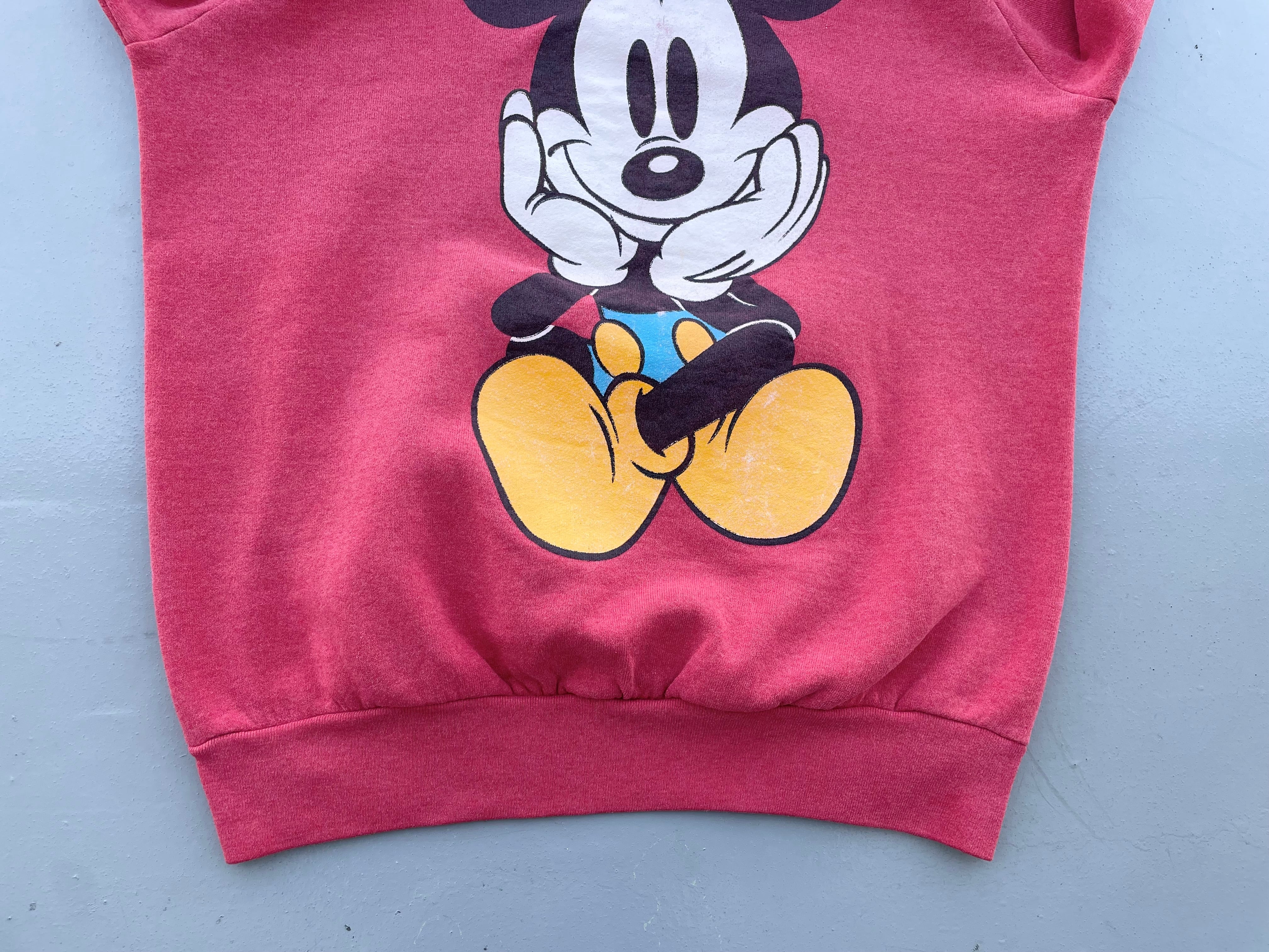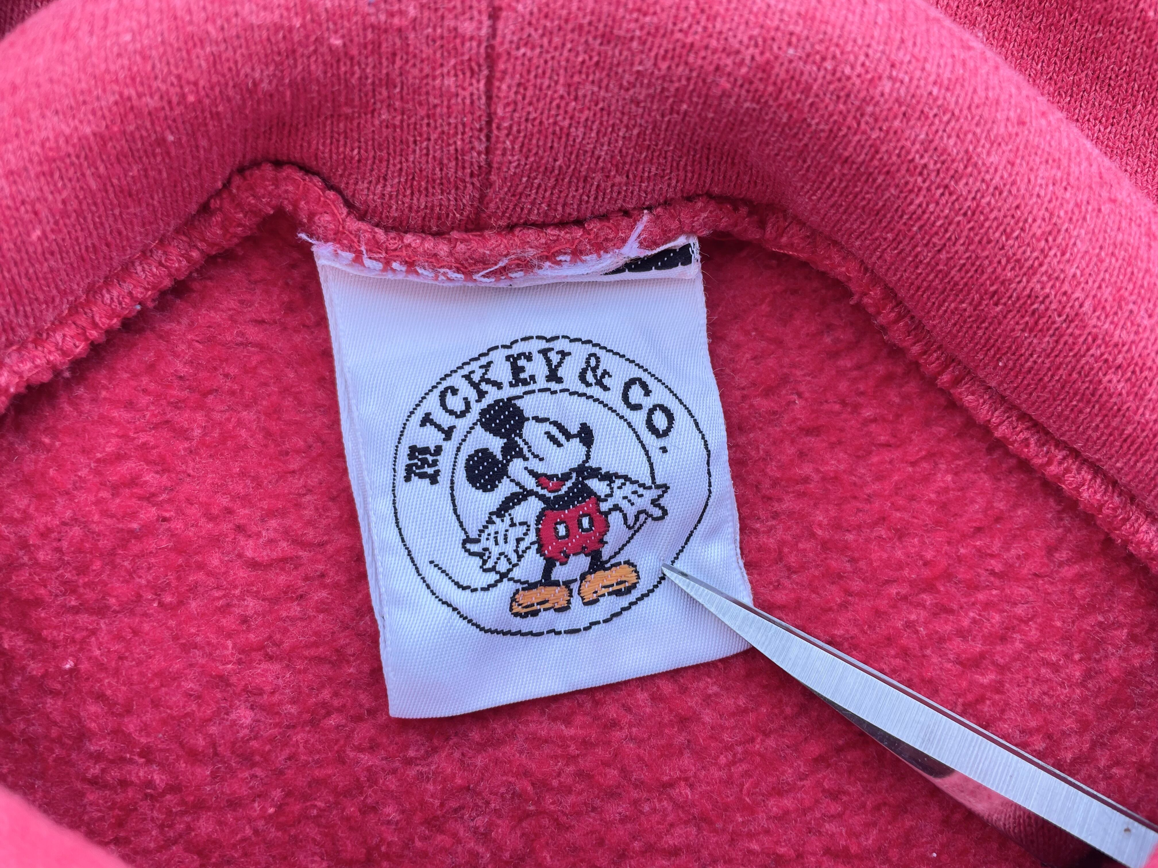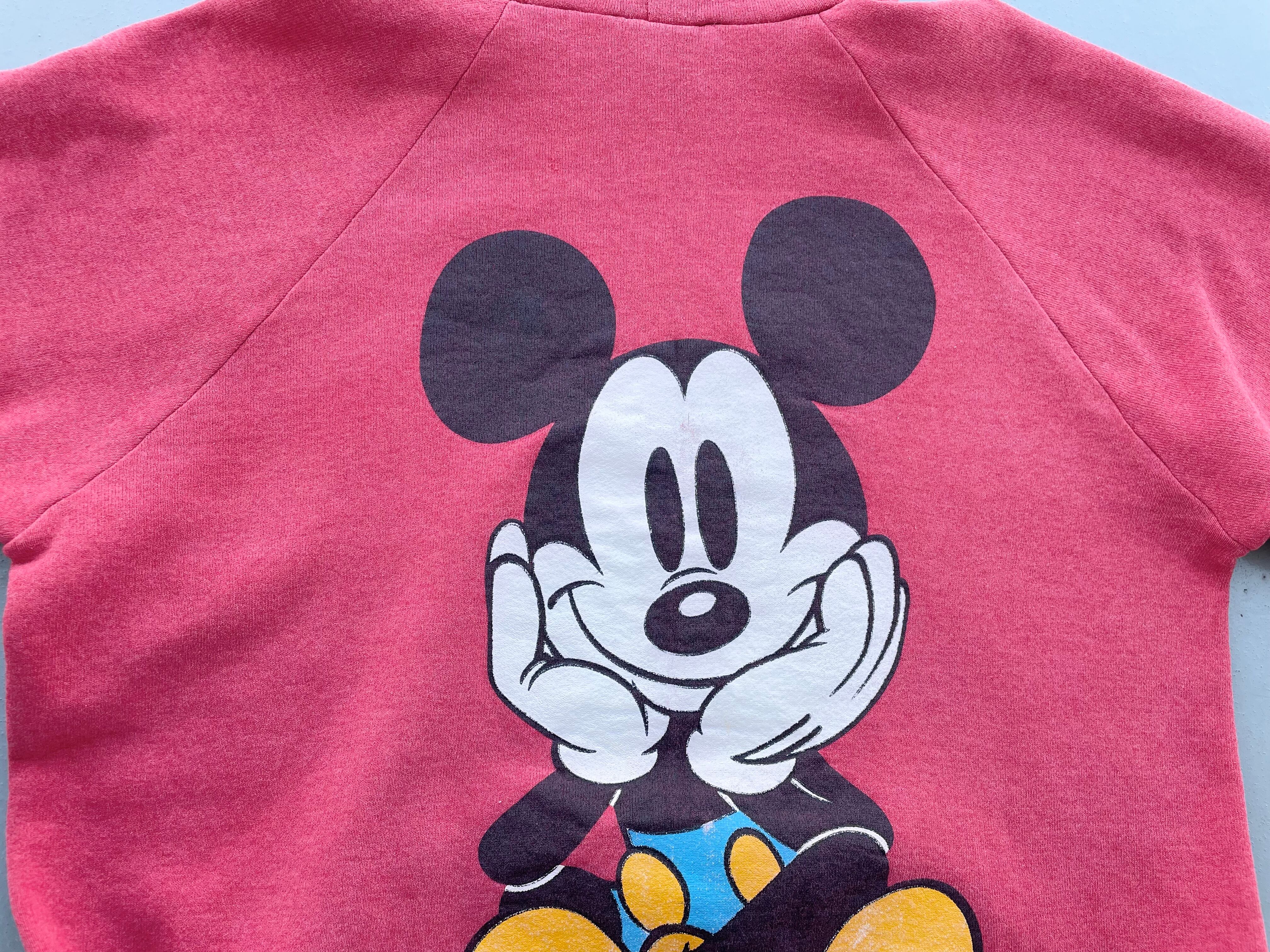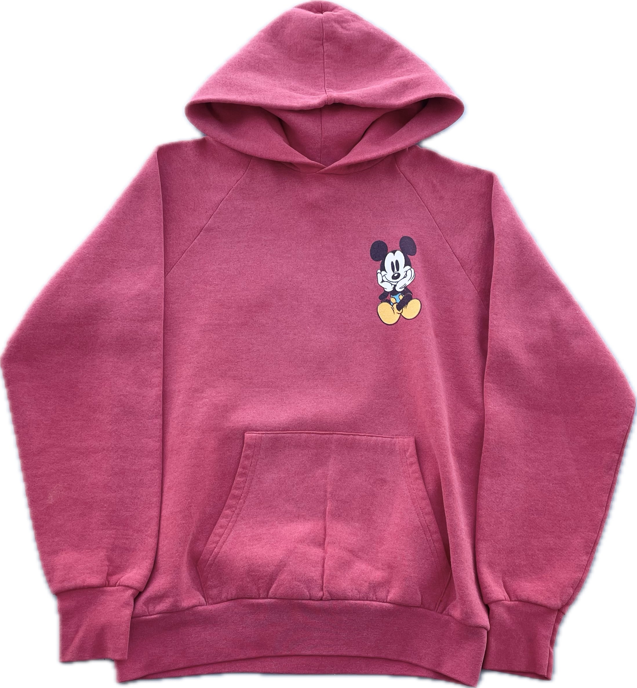 【商品詳細】ディズニーデザインズのプルオーバーパーカー。サイズはXL。カラーはレッド。90年代インド製。個人的に初見パターンの座り込み物。フロントのチビミッキー◎スウェットやTシャツに比べるとパーカー物は出ないです。