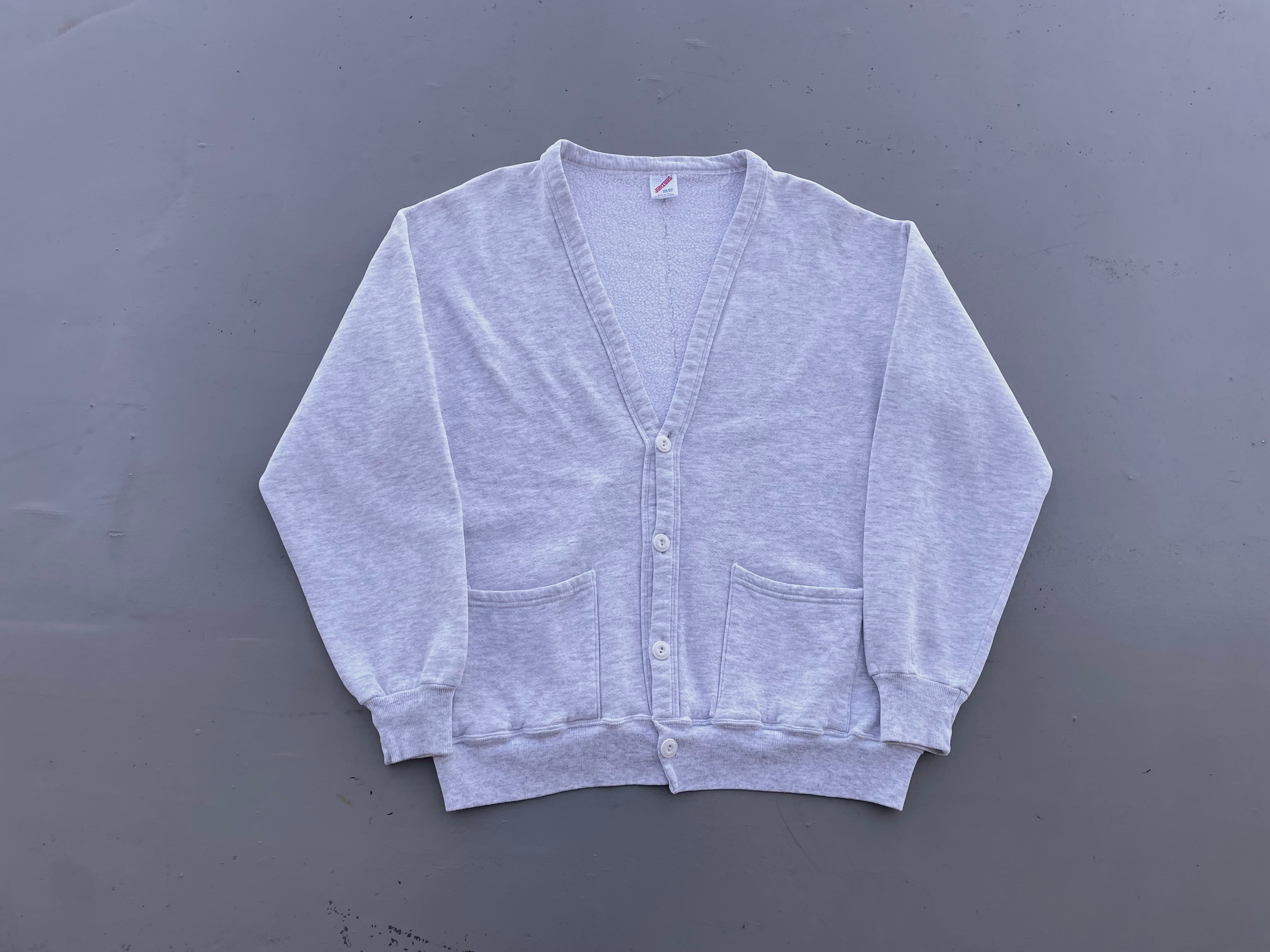 【商品詳細】ジャージーズのスウェットカーディガン。サイズはFREE。カラーは杢グレー。90年代USA製。人気のスウェットカーディガン。大きめ実寸でガバッと羽織れます。内側の一部に毛抜けがございますが使用に支障なく全体的なコンディションは悪くないです。