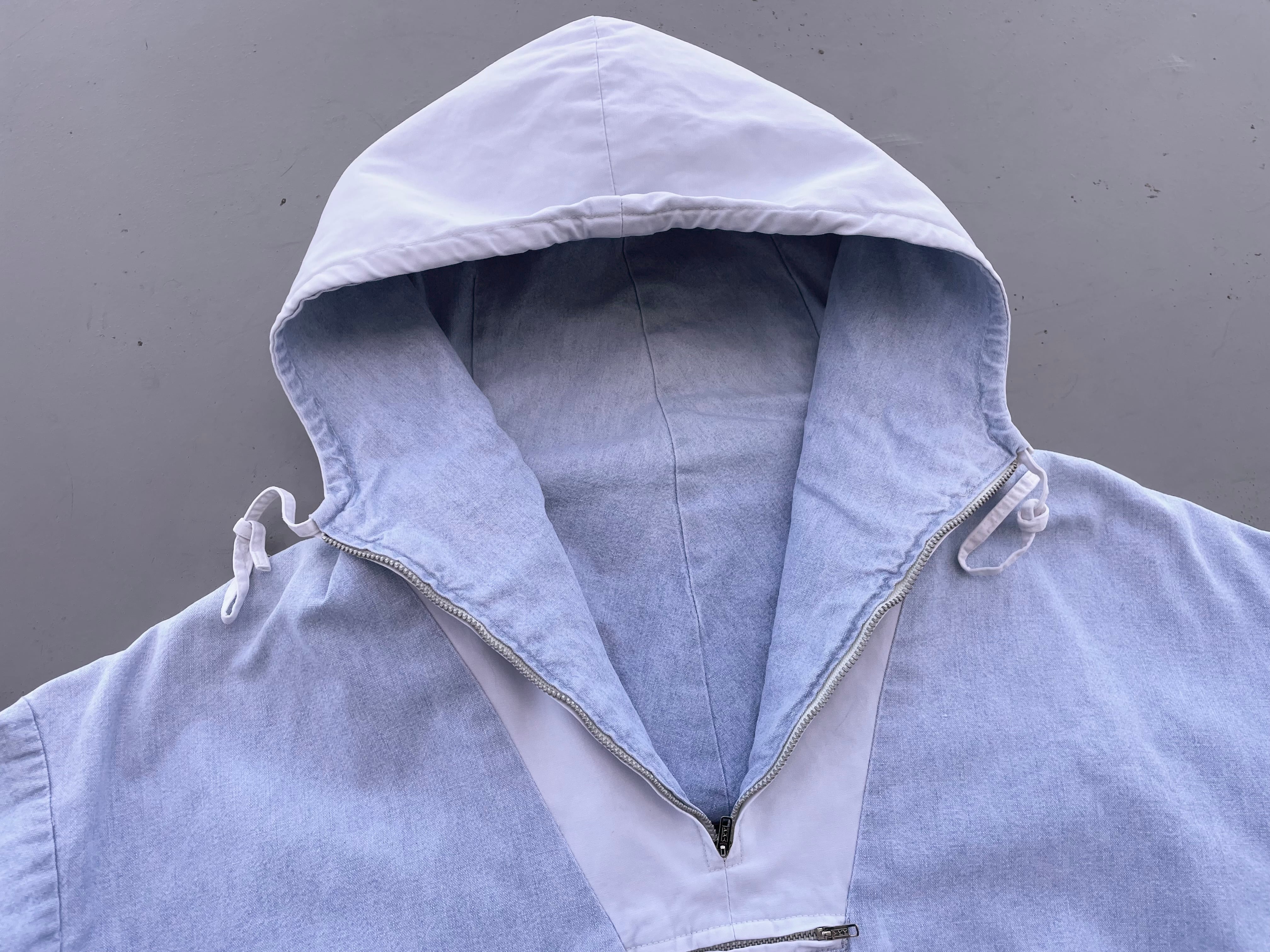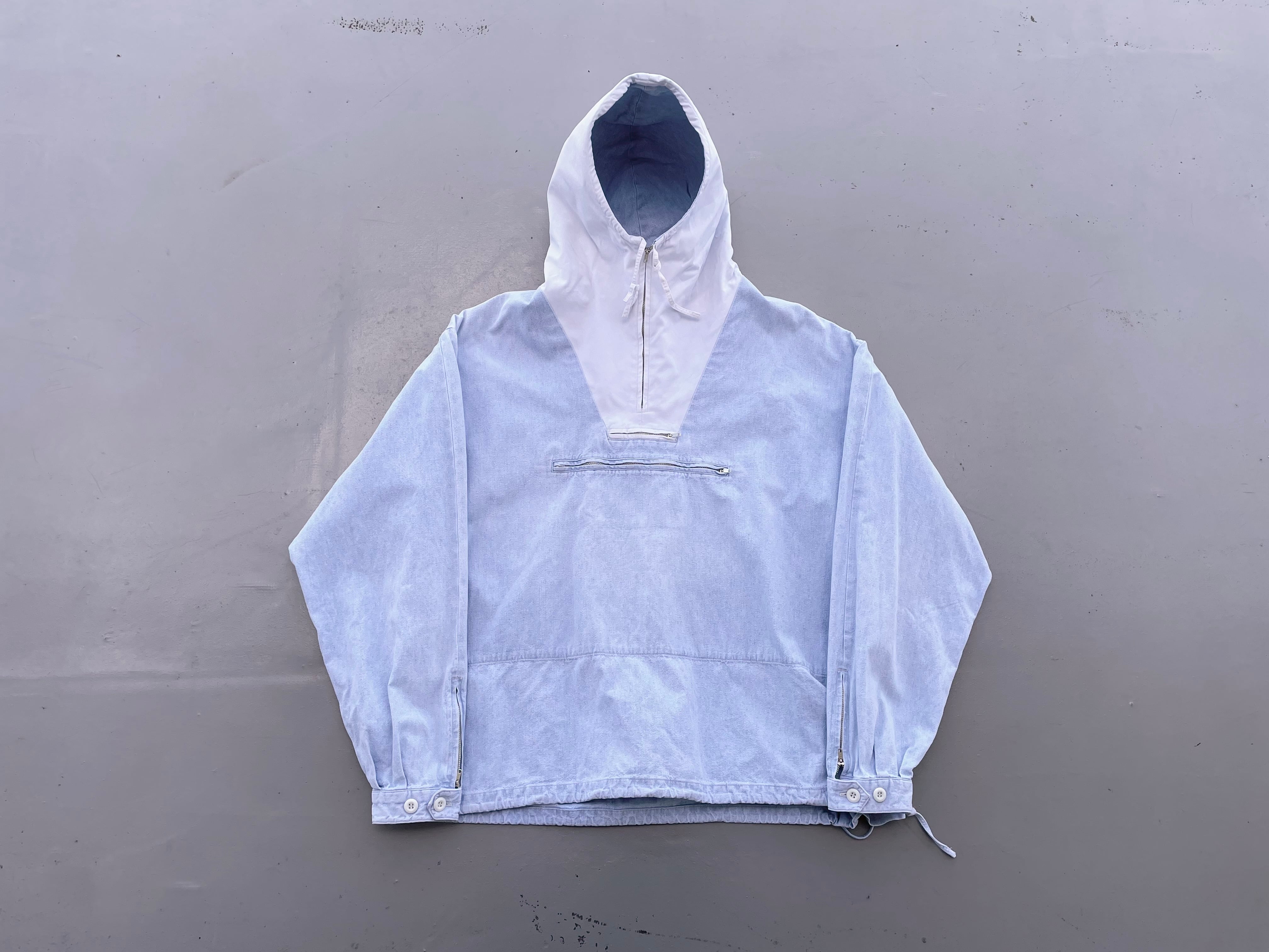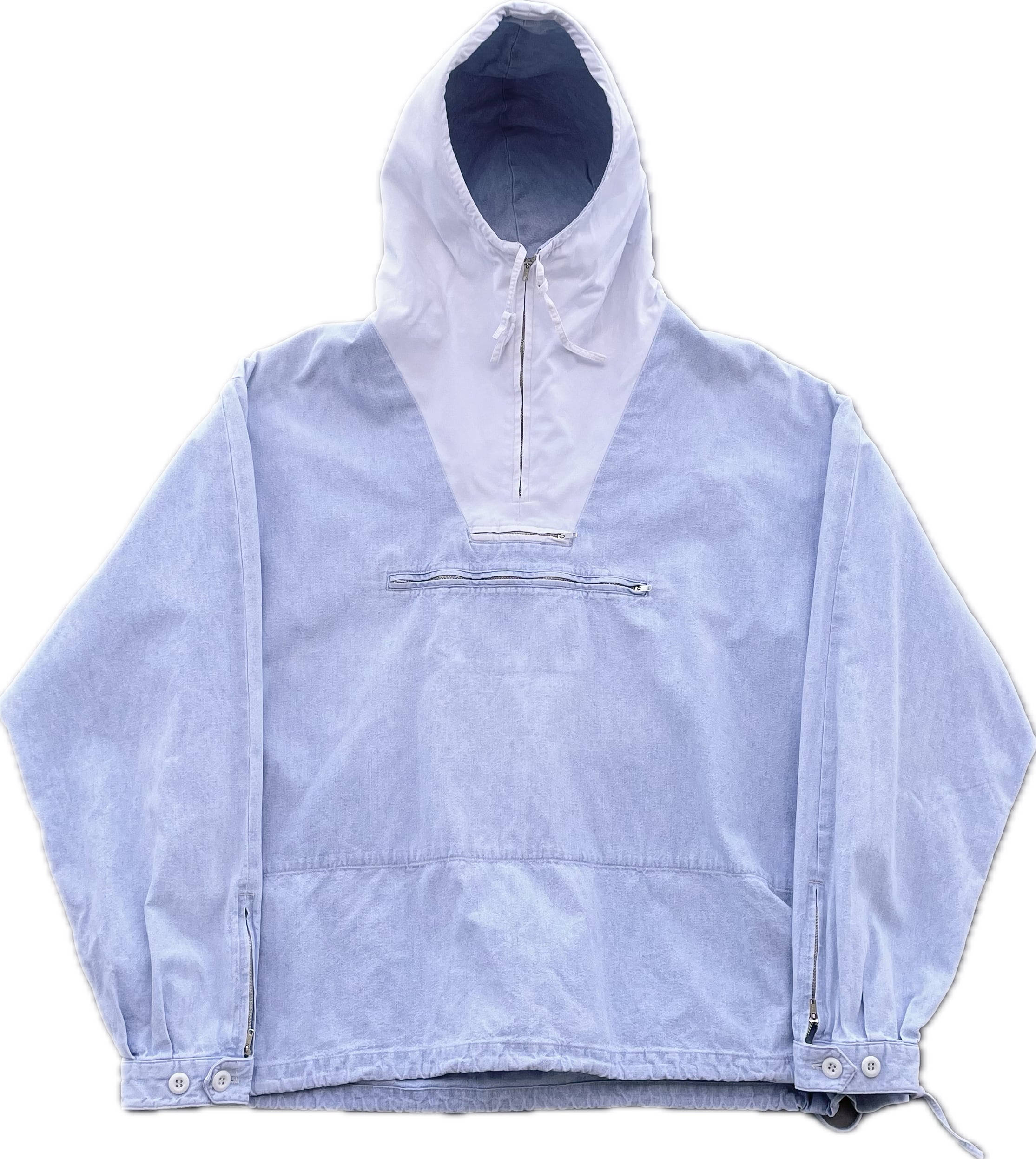 【商品詳細】J.crewのコットンアノラックパーカー。サイズはM。カラーはホワイト+シャンブレーのツートーン。90年代香港製。J.crewと言えばのツートーンアノラック。こちらは圧倒的に球数少ないシャンブレー物。