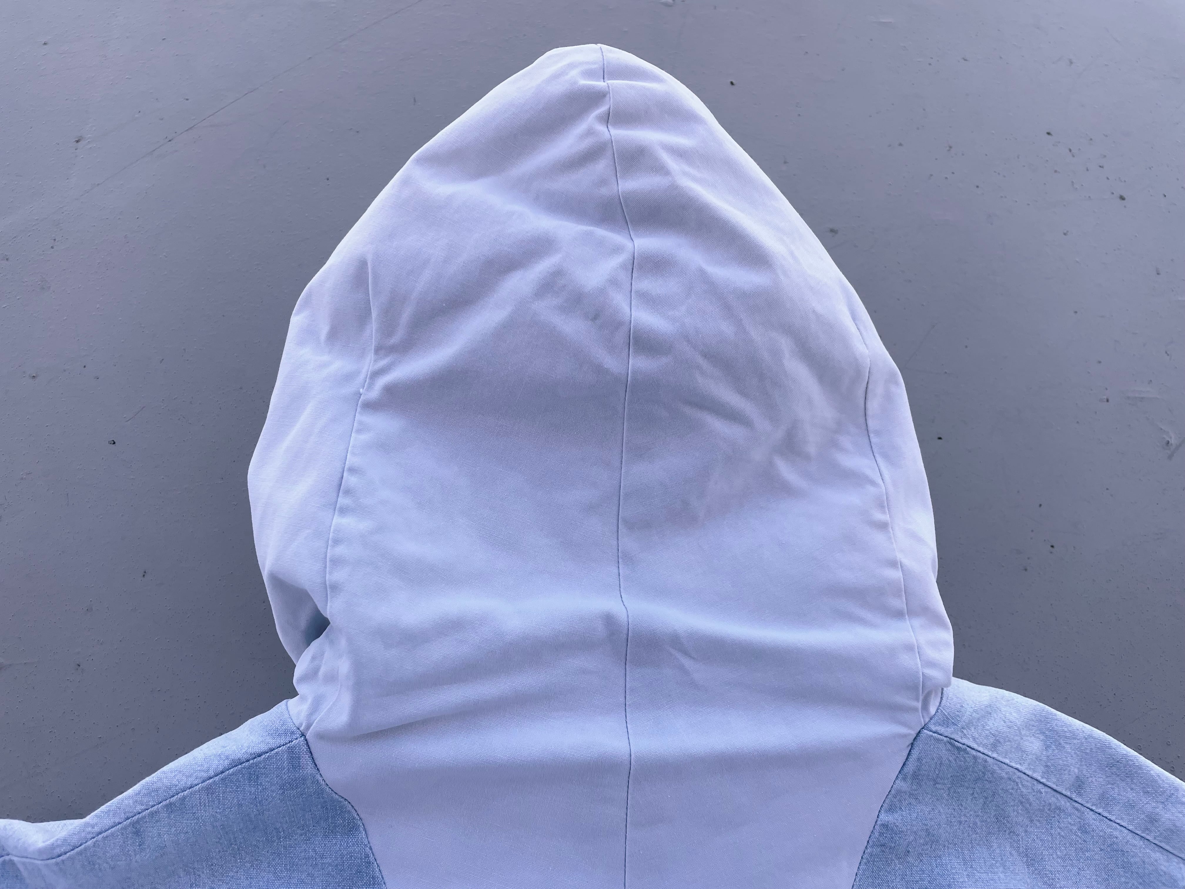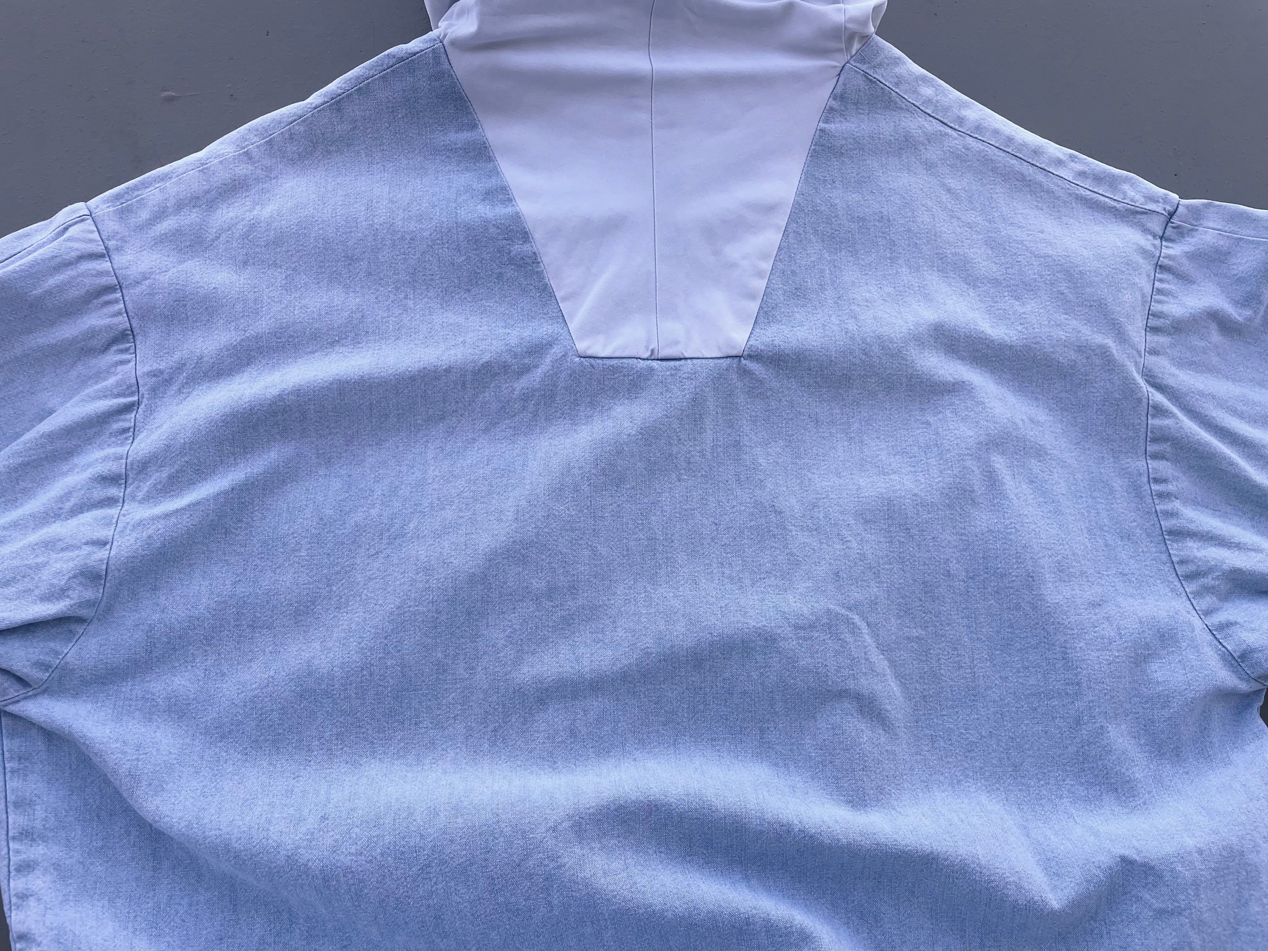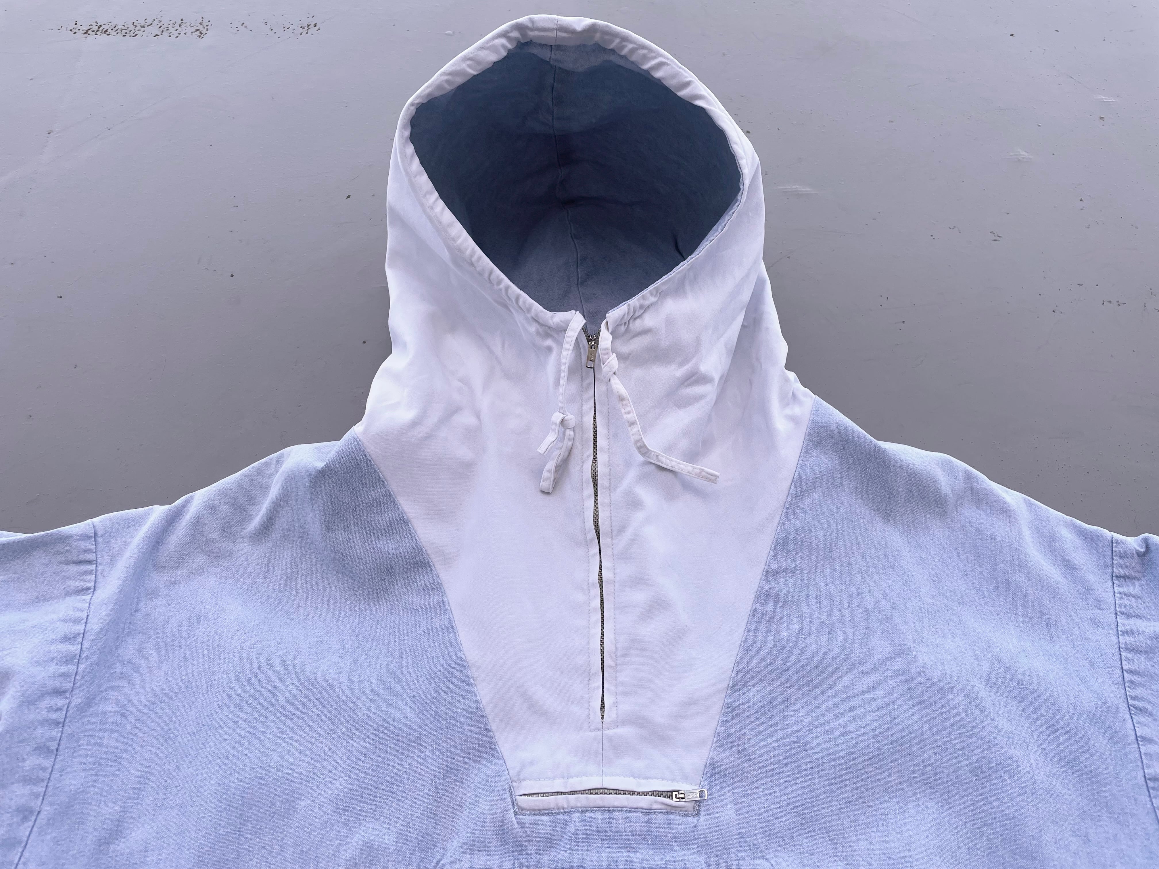 【商品詳細】J.crewのコットンアノラックパーカー。サイズはM。カラーはホワイト+シャンブレーのツートーン。90年代香港製。J.crewと言えばのツートーンアノラック。こちらは圧倒的に球数少ないシャンブレー物。