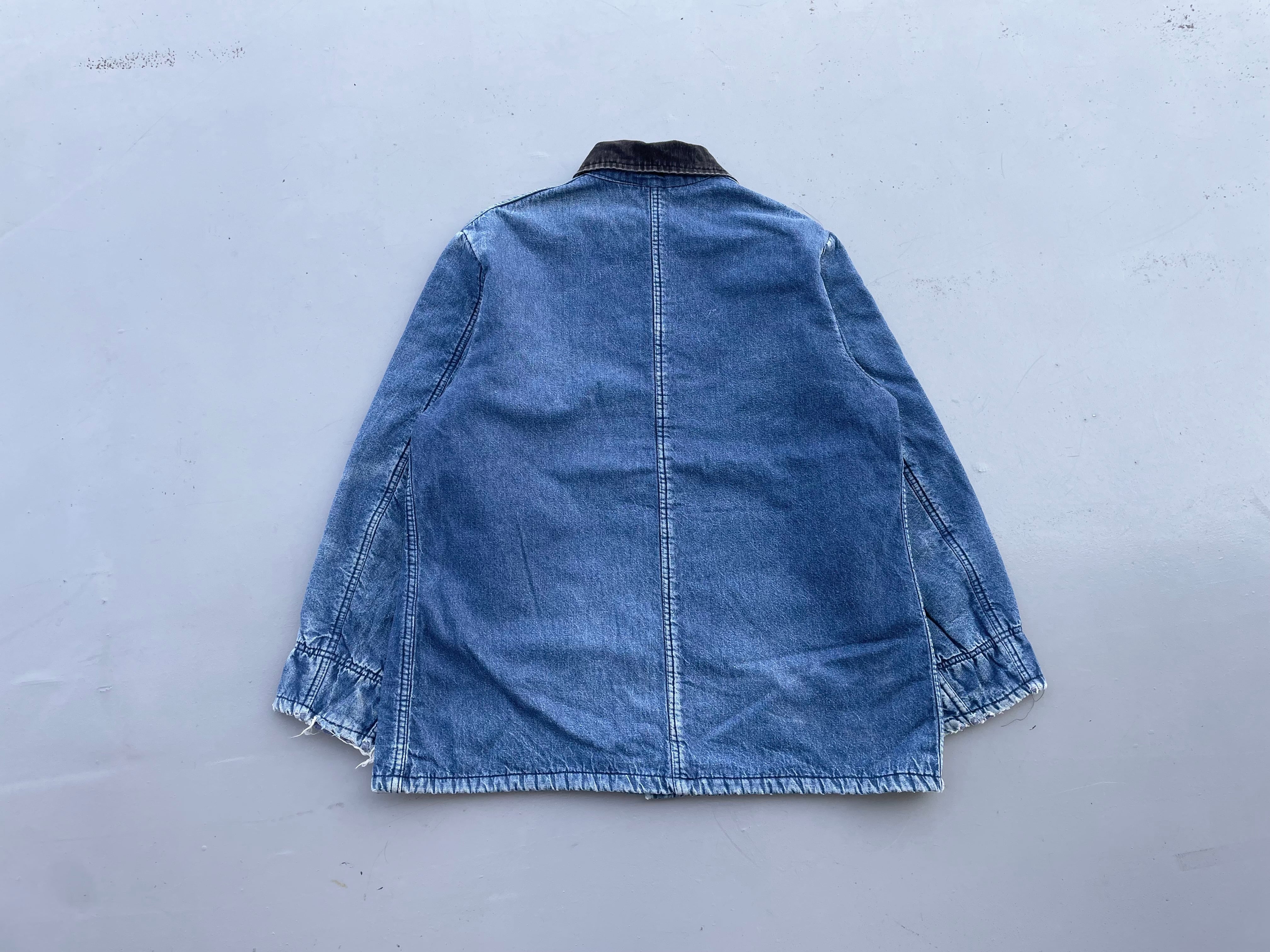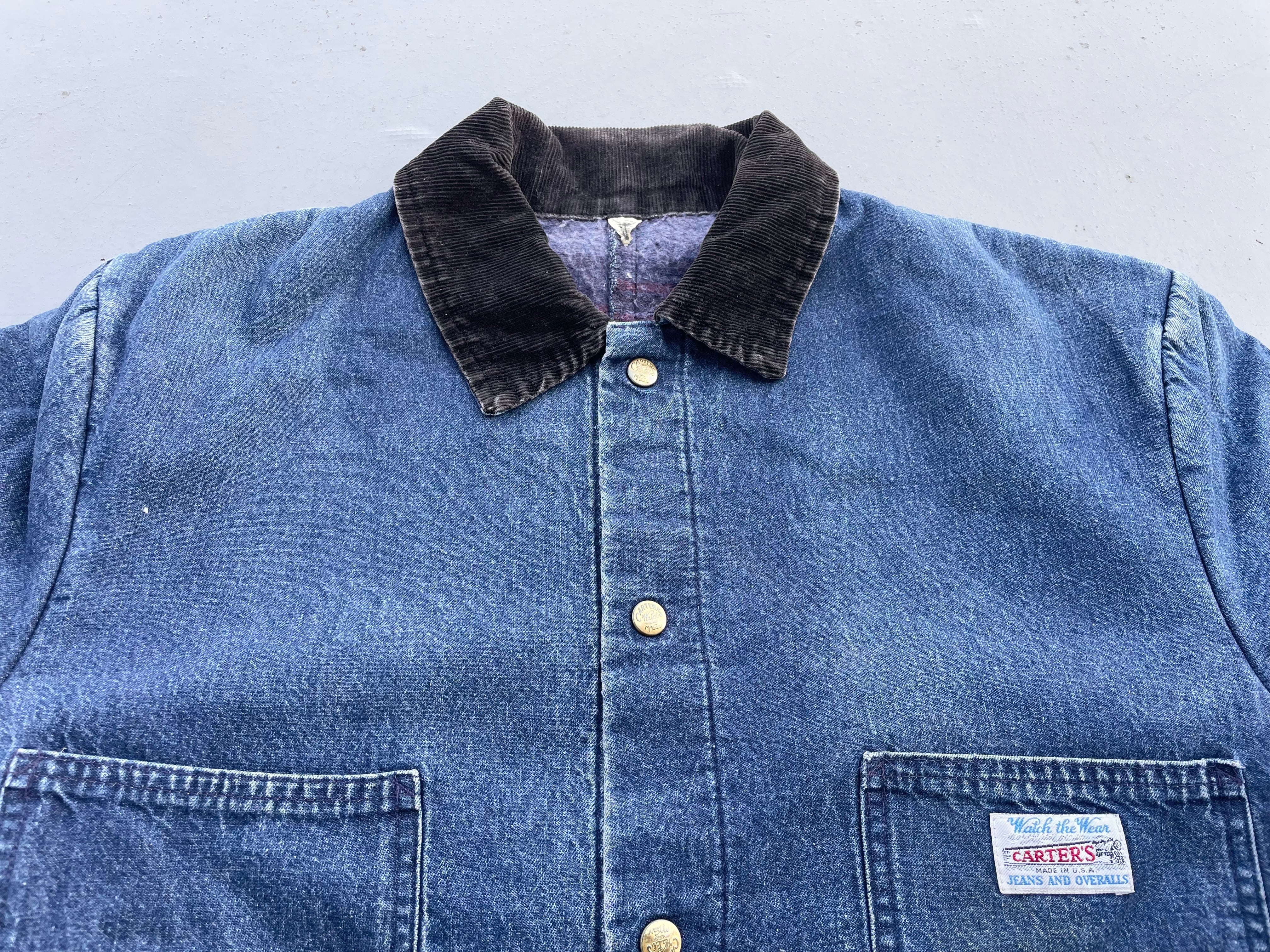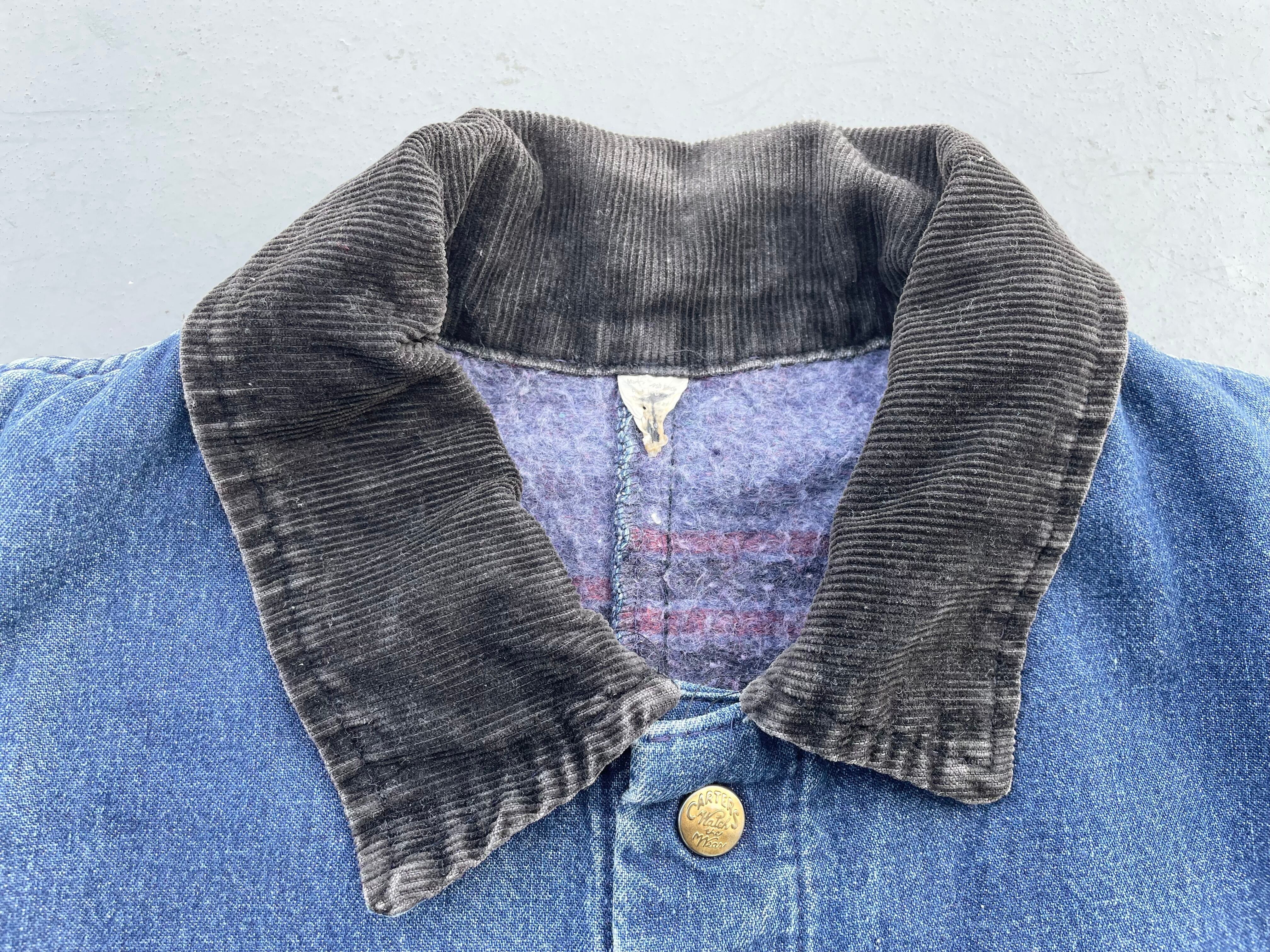 【商品詳細】カーターズのデニムカバーオール。サイズは実寸XL程。カラーはインディゴ。70-80年代USA製。ワークウェアの老舗ブランドのカーターズ。こちらの個体は全体的に使用感はございますが良い雰囲気に仕上がっており、まだまだ現役でご着用いただけます。色も残っておりこれからエイジングも楽しめそうです。
