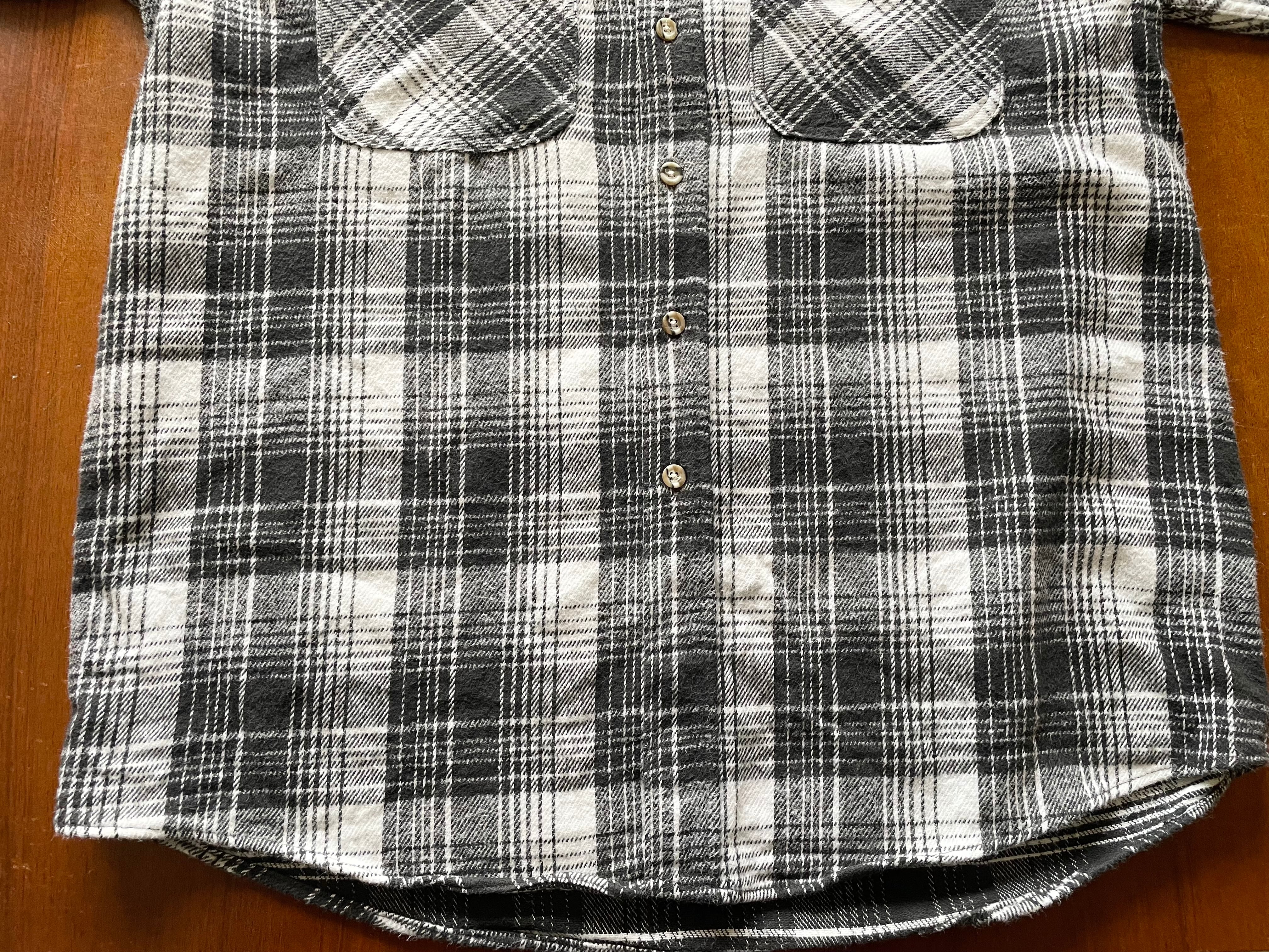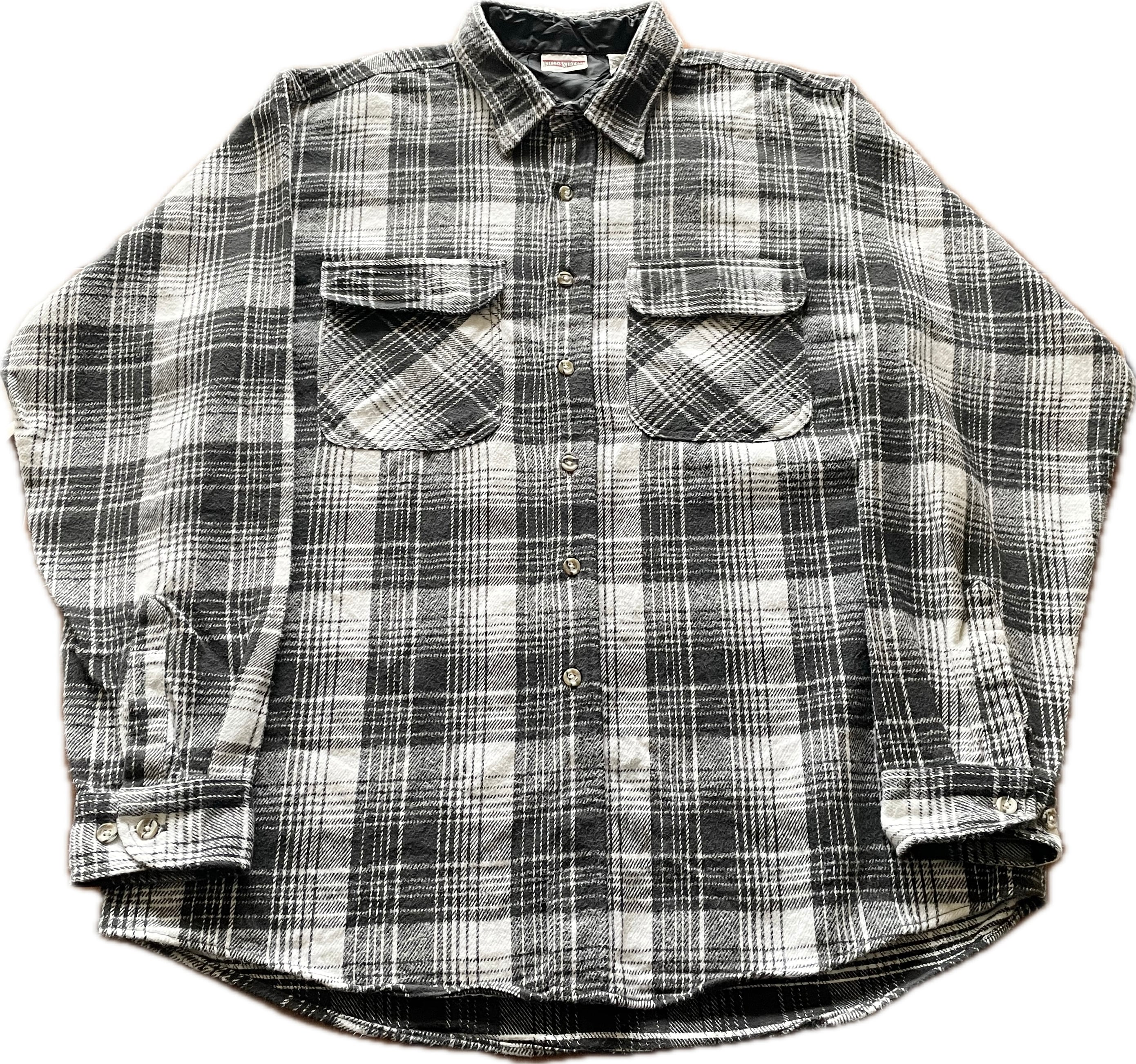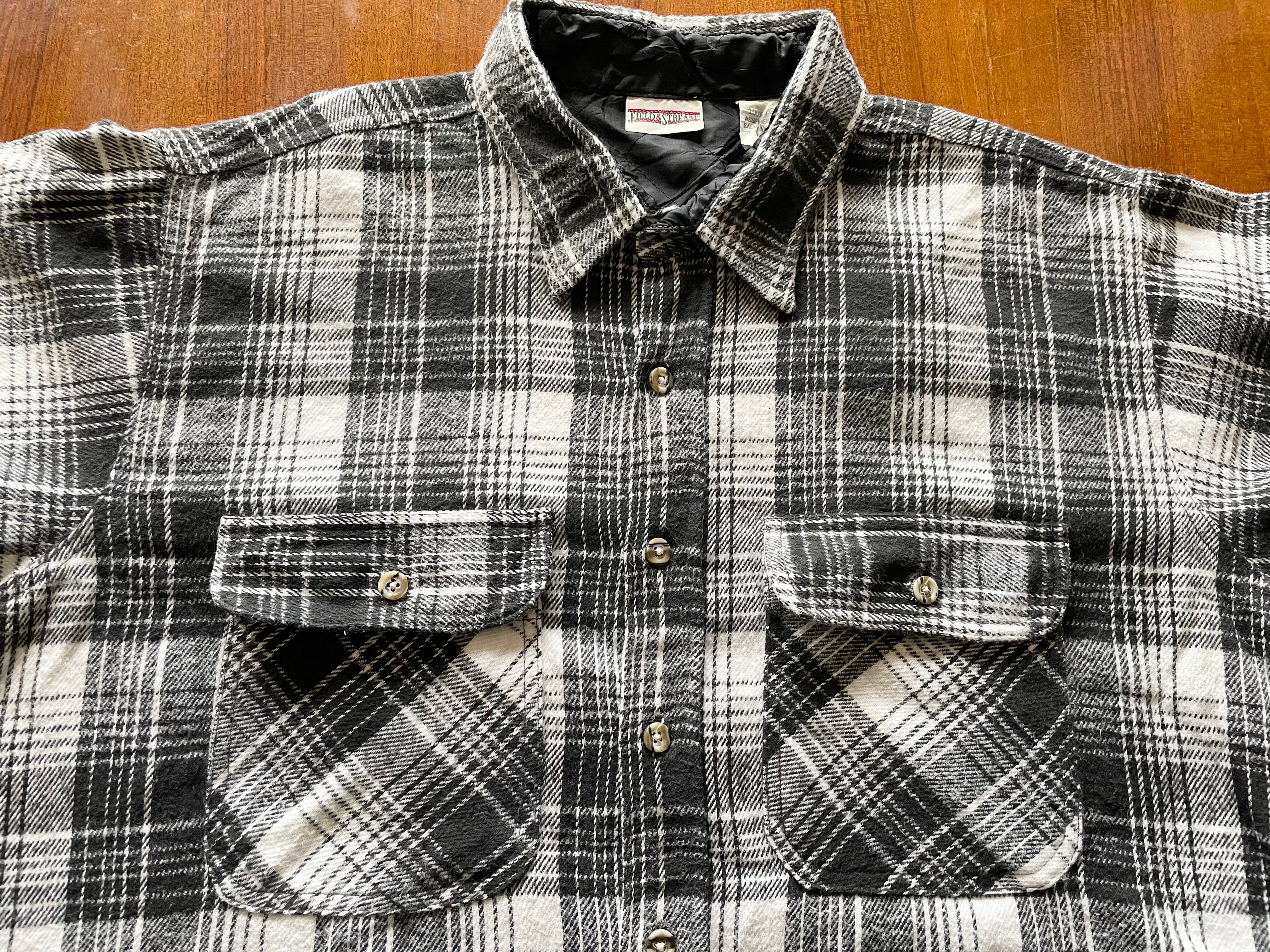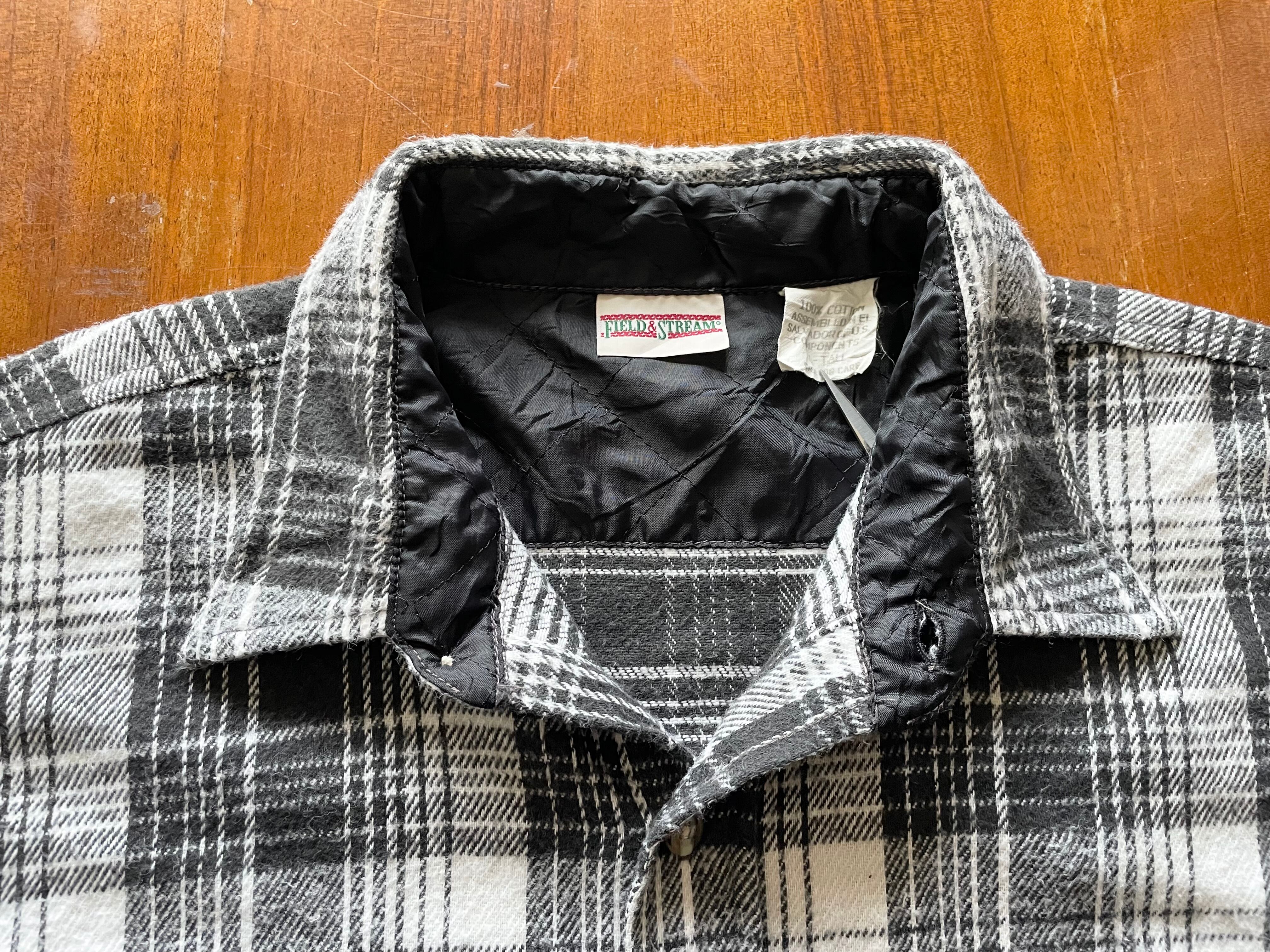 【商品詳細】フィールド&ストリームのヘビーフランネル長袖シャツ。サイズはXL。カラーはホワイト×ブラックのチェックデザイン。90年代エルサルバドル製。
