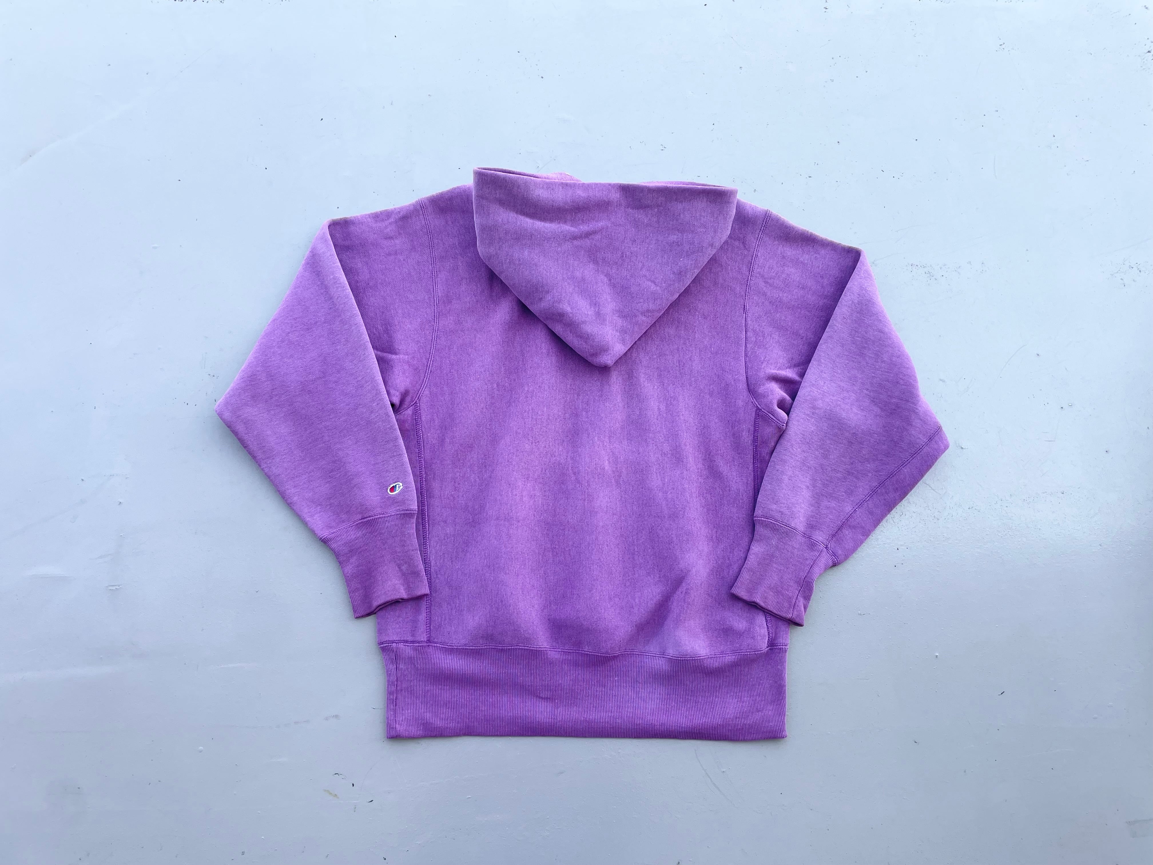 【商品詳細】チャンピオンのリバースウィーブプルオーバーパーカー。サイズはLARGE。カラーはパープル。90年代USA製。刺繍タグのつく90年代物。ラベンダーを思わす洒落たライトなパープルカラー。サザンメイン大学プリントの個体。縮み少なく現役で活躍してくれそうです。