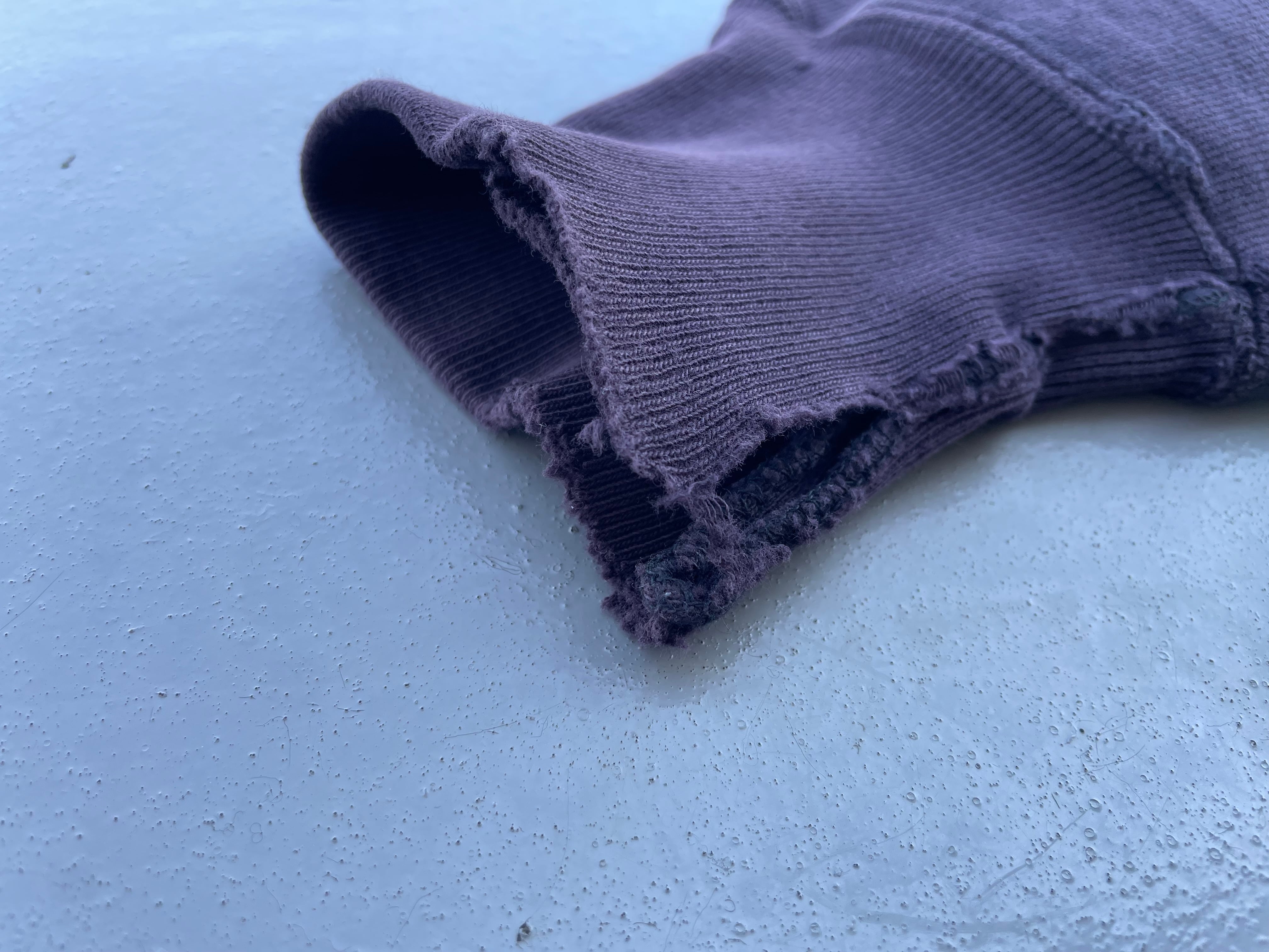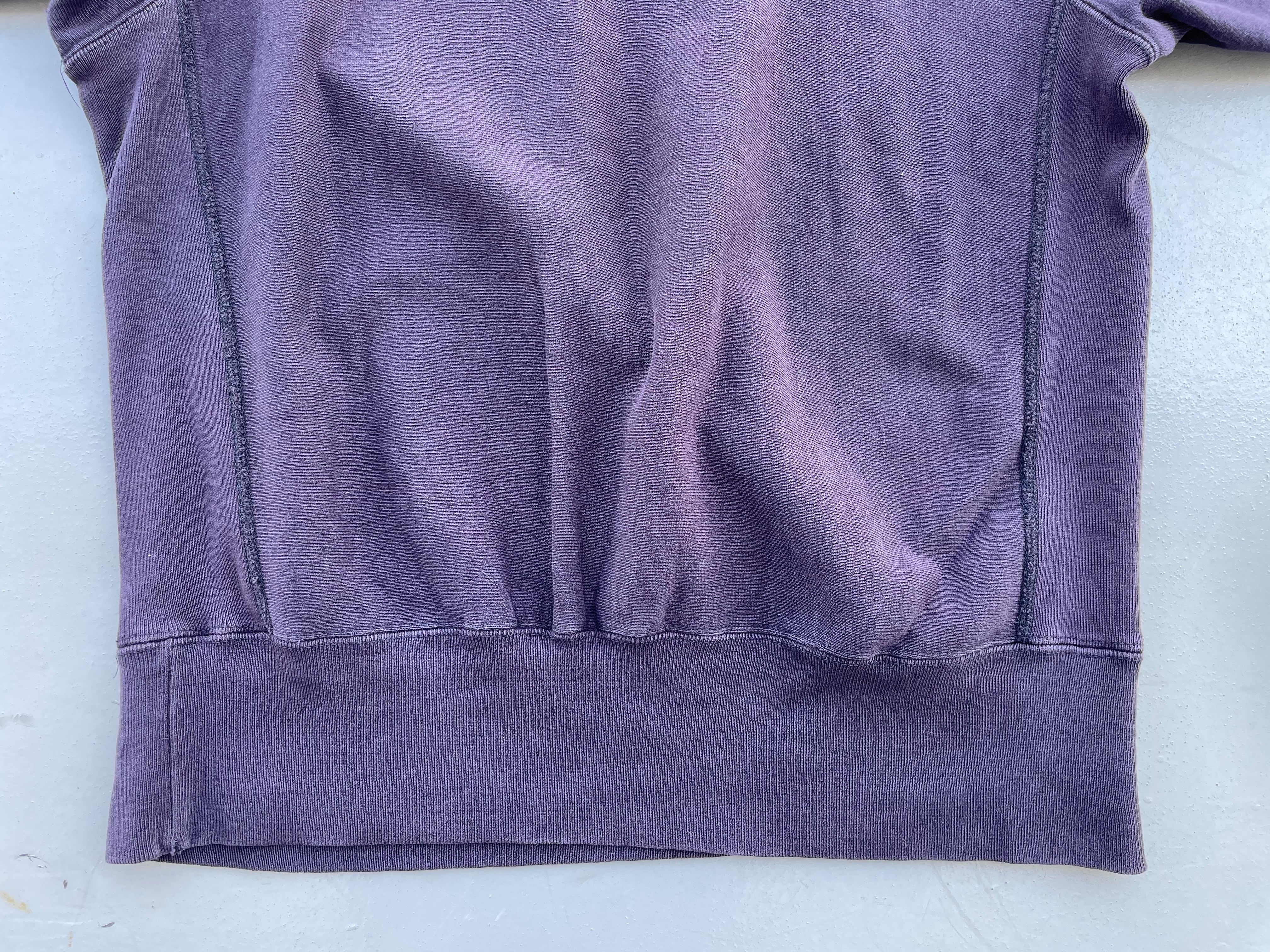【商品詳細】チャンピオンのリバースウィーブスウェットシャツ。サイズはLARGE。カラーはブラックベリー。90年代USA製。刺繍タグのつく90年代物。パッと見はブラックに見えますがフェードしてややパープル味のあるブラックベリーのような洒落たカラー。ダメージや小汚れございますが、こなれ感のある良い雰囲気になってます。おすすめの個体。