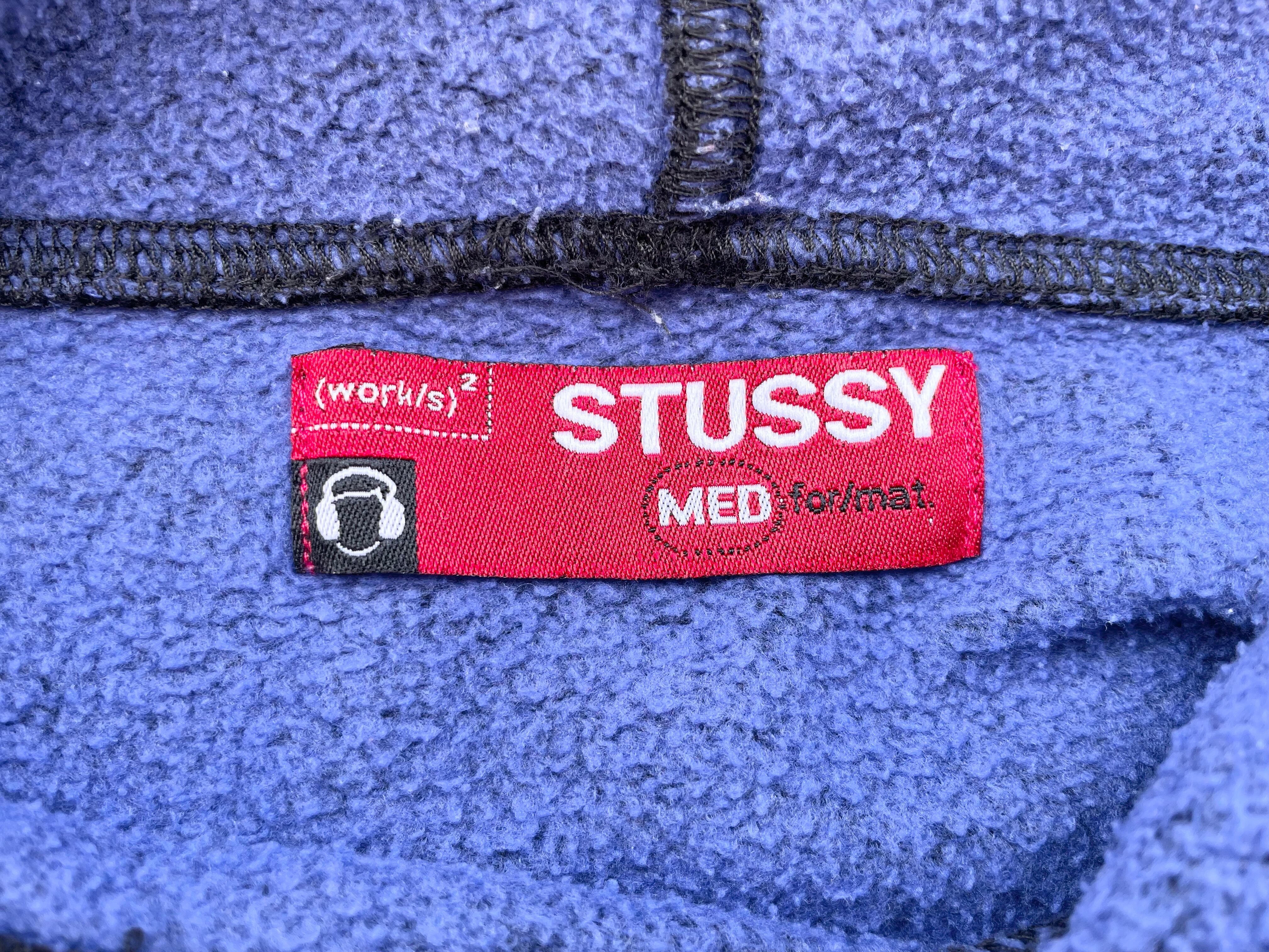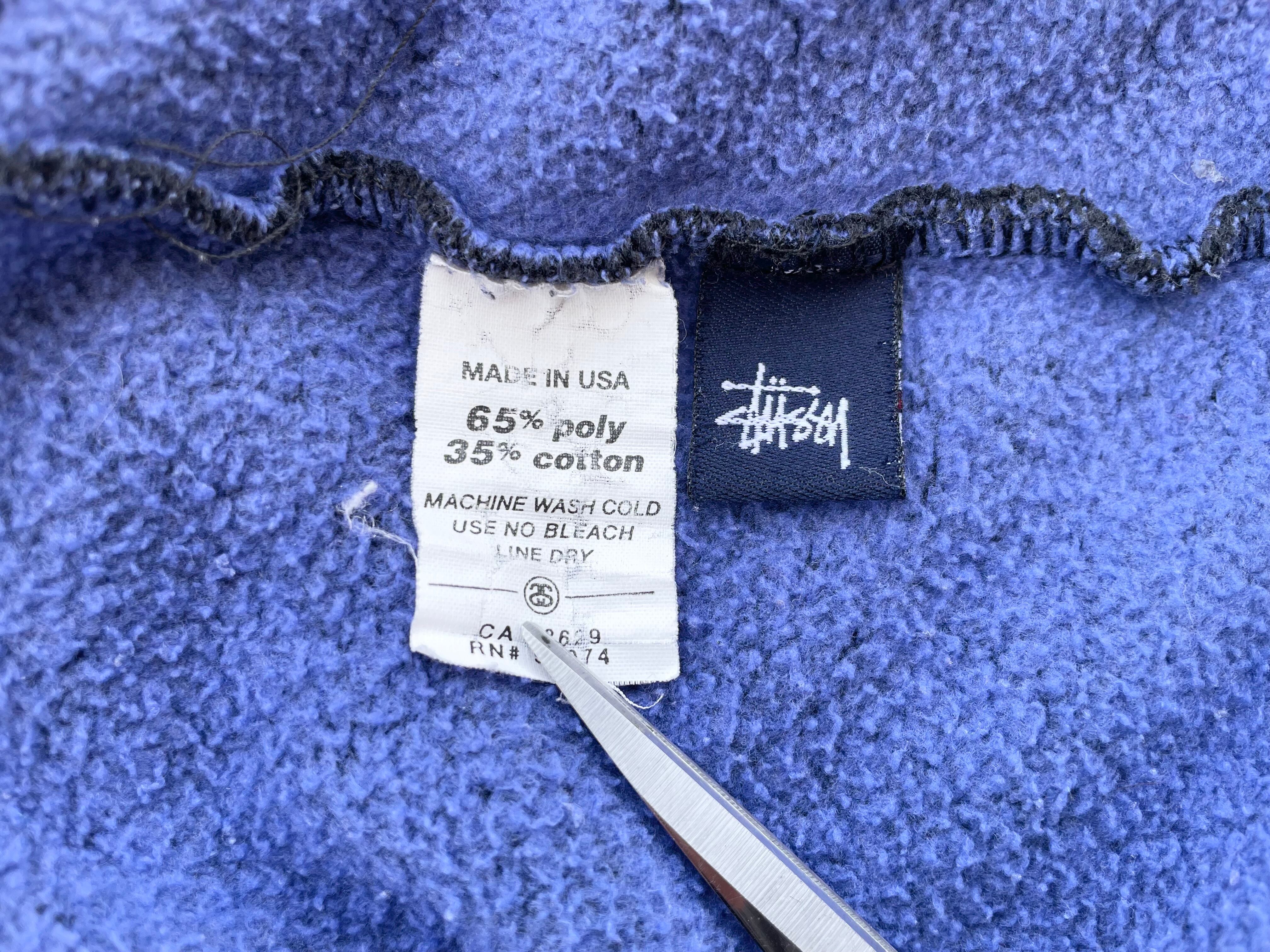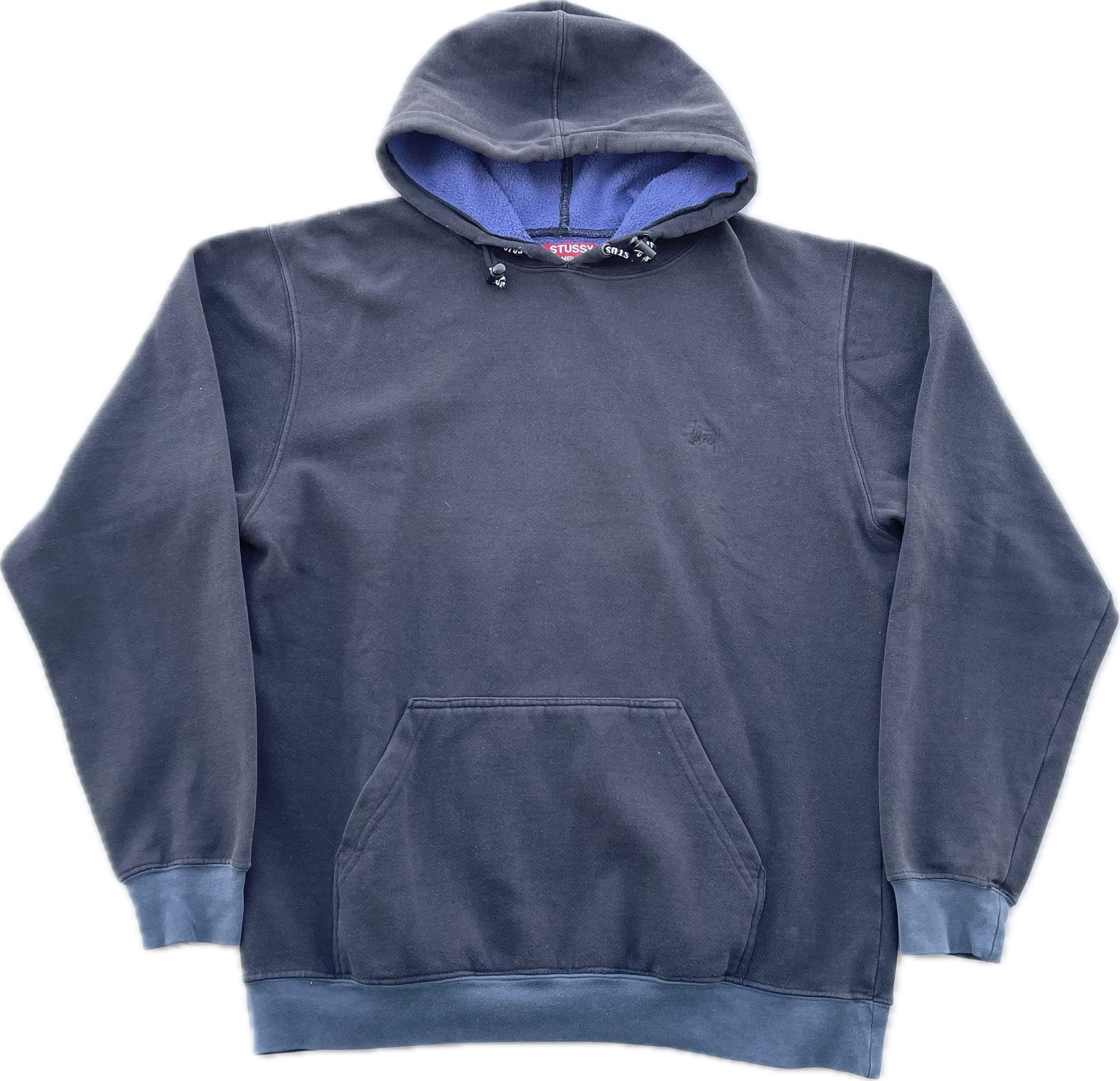 【商品詳細】STUSSYのプルオーバーパーカー。サイズはMED(M)。カラーはブラック×アッシュブルーのツートーン。90年代USA製。オールド物らしいギミックの効いたクセのあるデザイン物。ボディとリブのツートーンやドローストリングの調整器、ライニングの別色仕様等、手が込んでます。