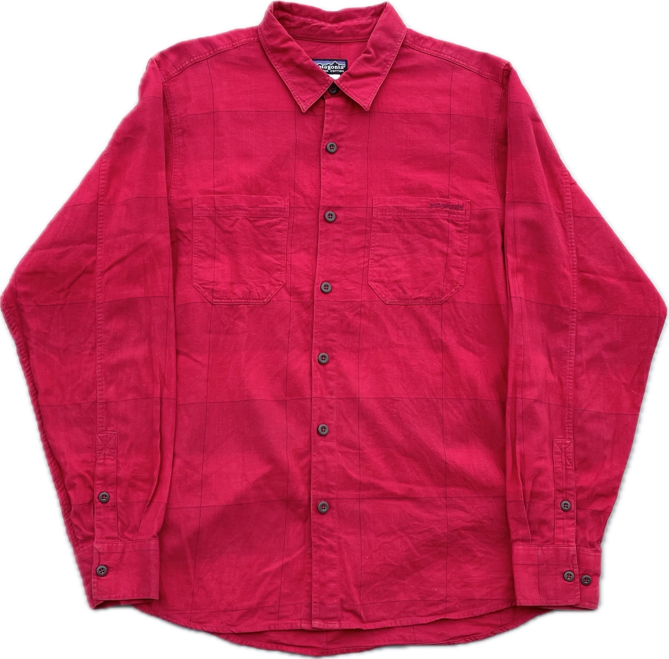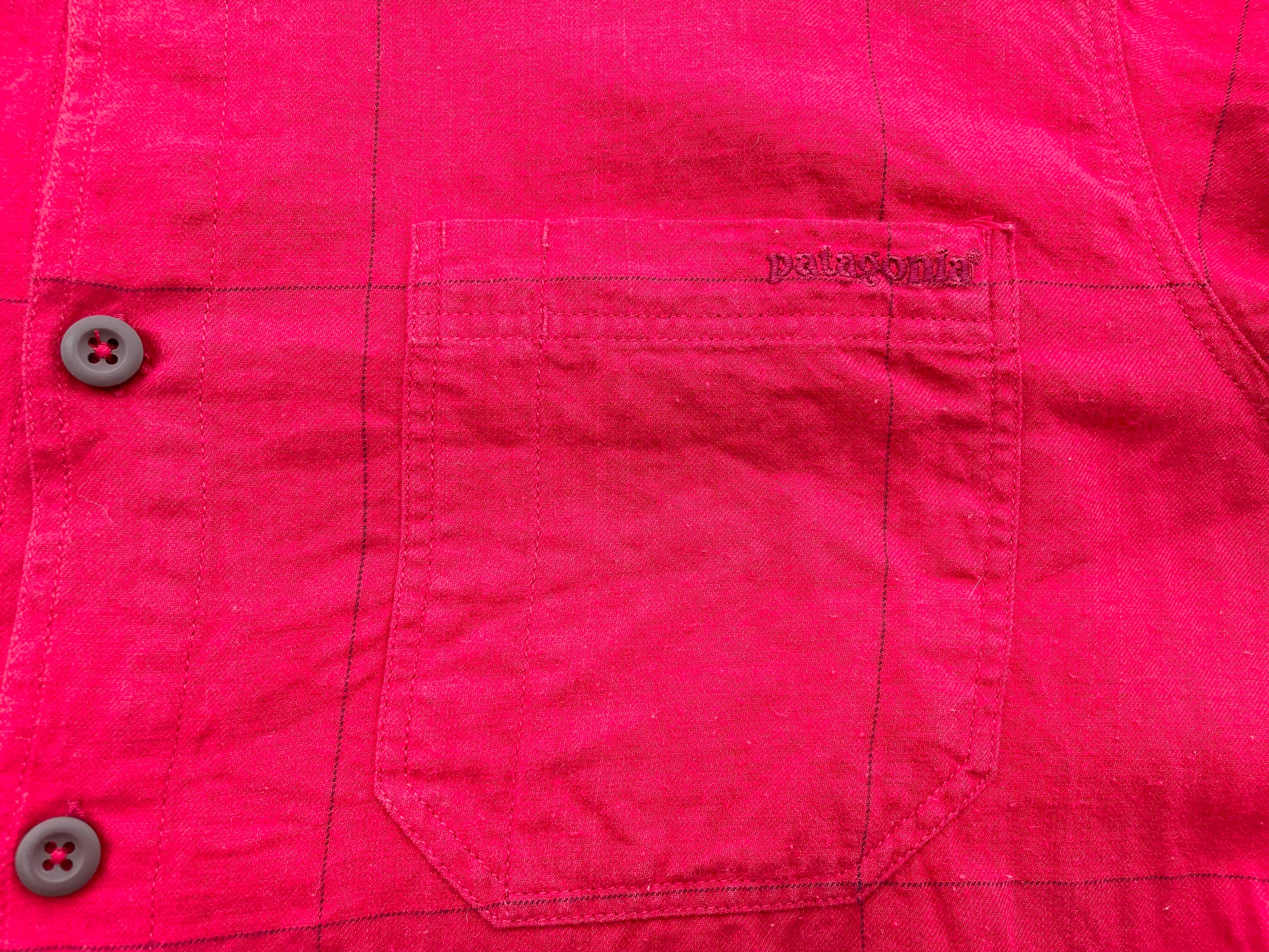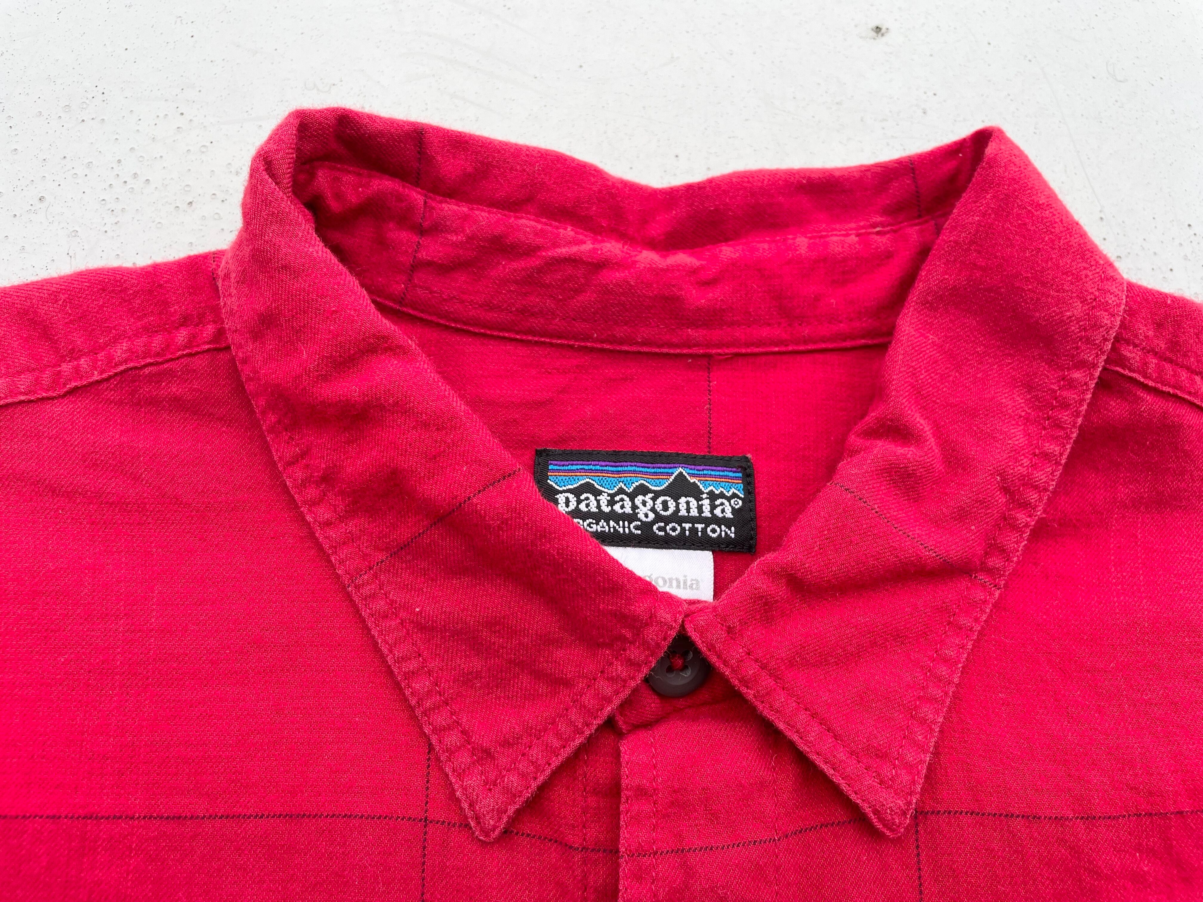 【商品詳細】パタゴニアの長袖シャツ。サイズはM。カラーはレッドベースのチェックパターン。07年ポルトガル製。大人に朱色カラーが印象的なシャツ。人気のポルトガル製物。オーガニックコットン地で着心地良いです。