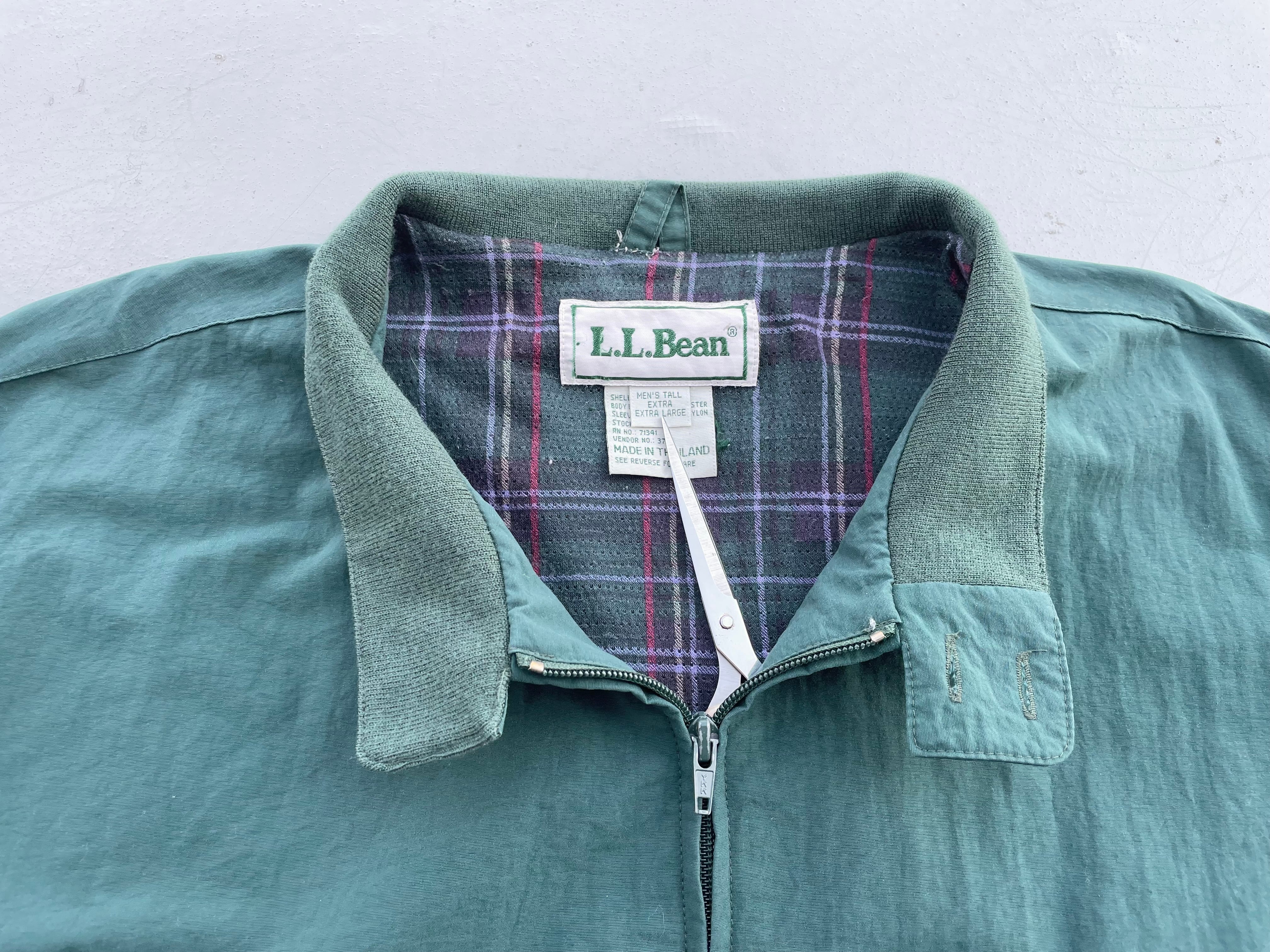 【商品詳細】エルエルビーンのハリントンジャケット。サイズはEXTRA LARGE。カラーはグリーン。90年代タイ製。人気のG9タイプのハリントンジャケット。ライニングはメッシュ仕様で背面ヨークのベンチレーションの作りで熱を逃がす今時期に適したモデル。マットな質感のナイロン地でラフに着れるのも良いです。