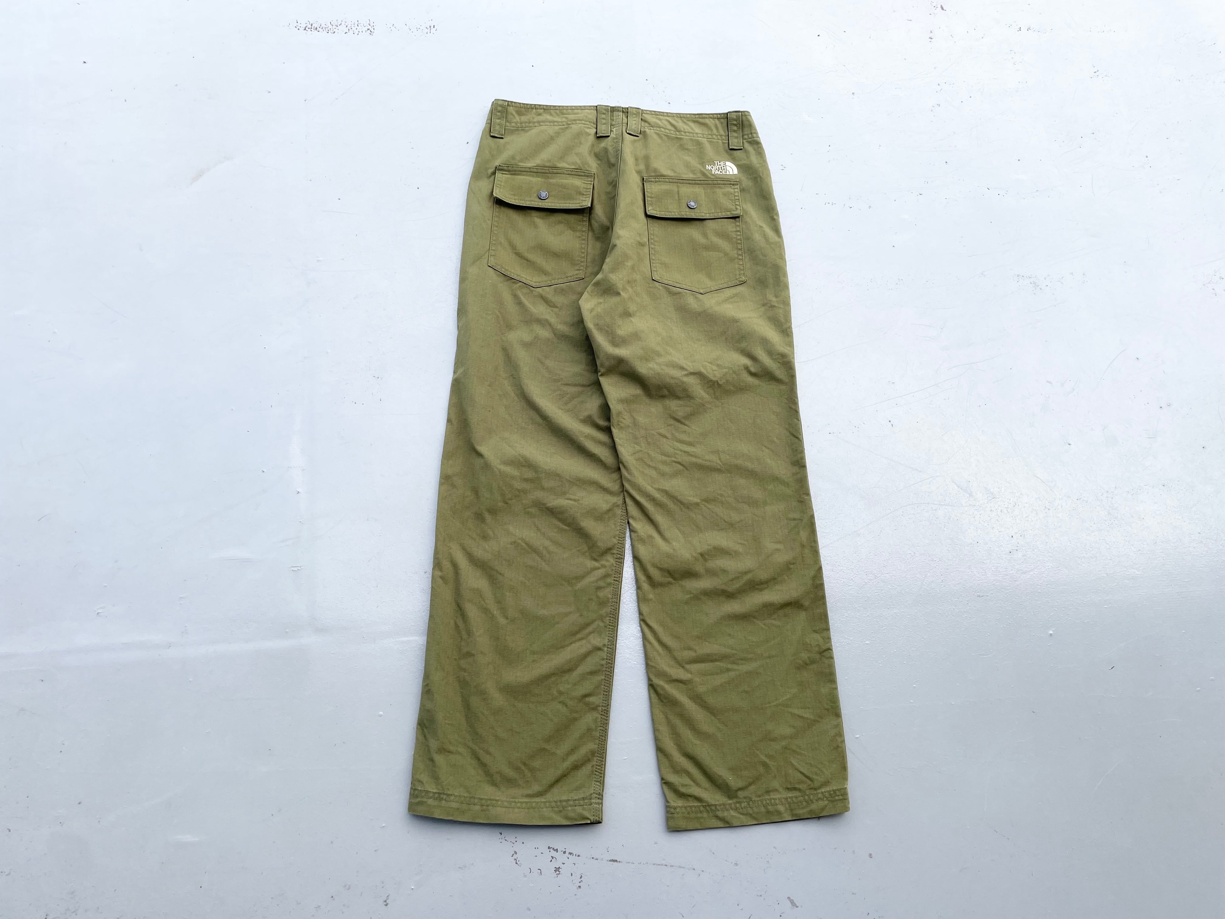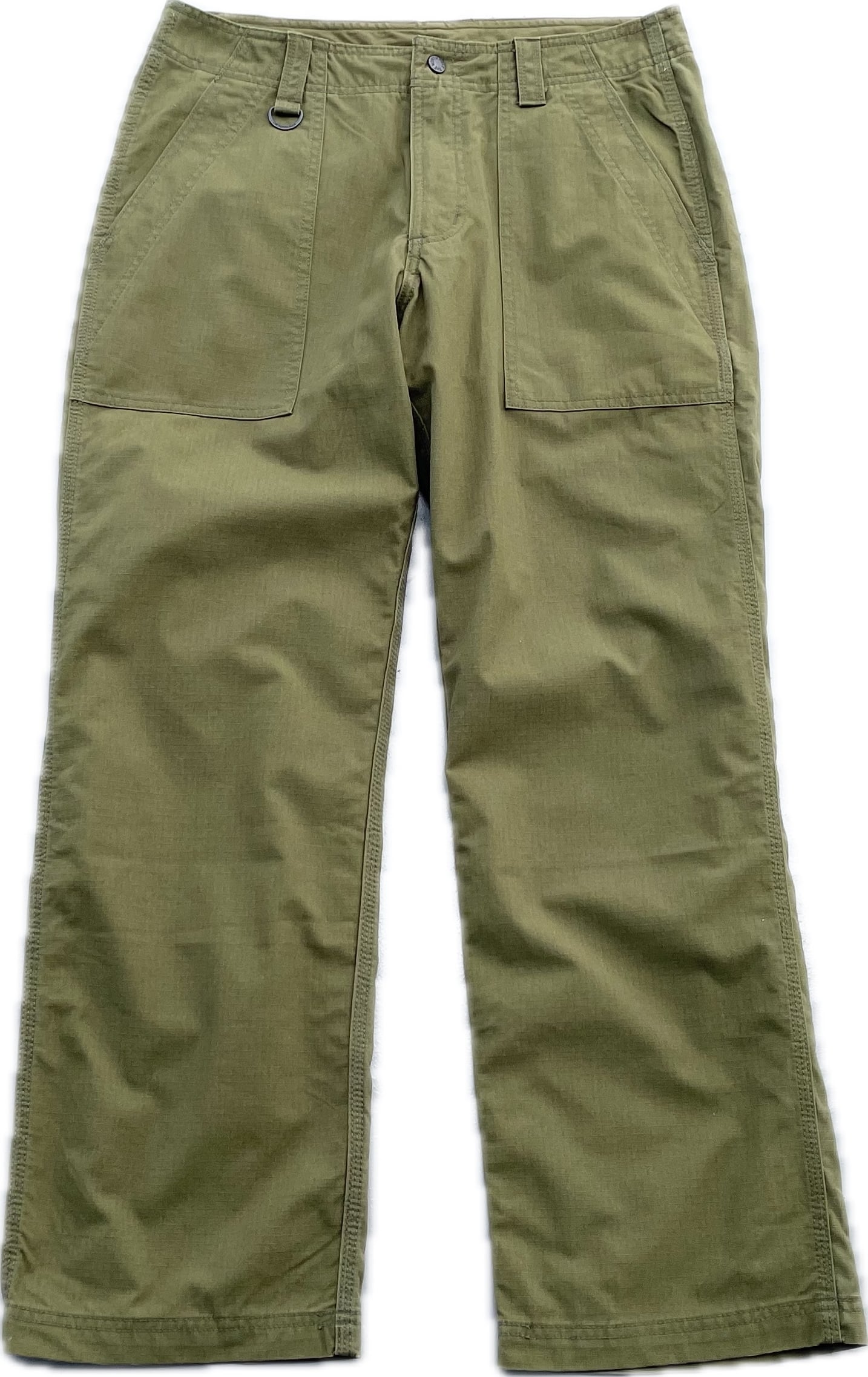 【商品詳細】ノースフェイスのファイヤーフライベイカーパンツ。サイズはM。カラーはオリーブ。10年代ベトナム製。ファイヤーフライラインのパンツ物。前面に難燃性の高い生地と糸を使用しており火が着いてもすぐに消火するアウトドアシーンに持ってこいな一本。機能面だけでなくU.S.ARMYのベイカーパンツのようなディテールとデザインでクールです。サイズ・コンディションも良い調子です。