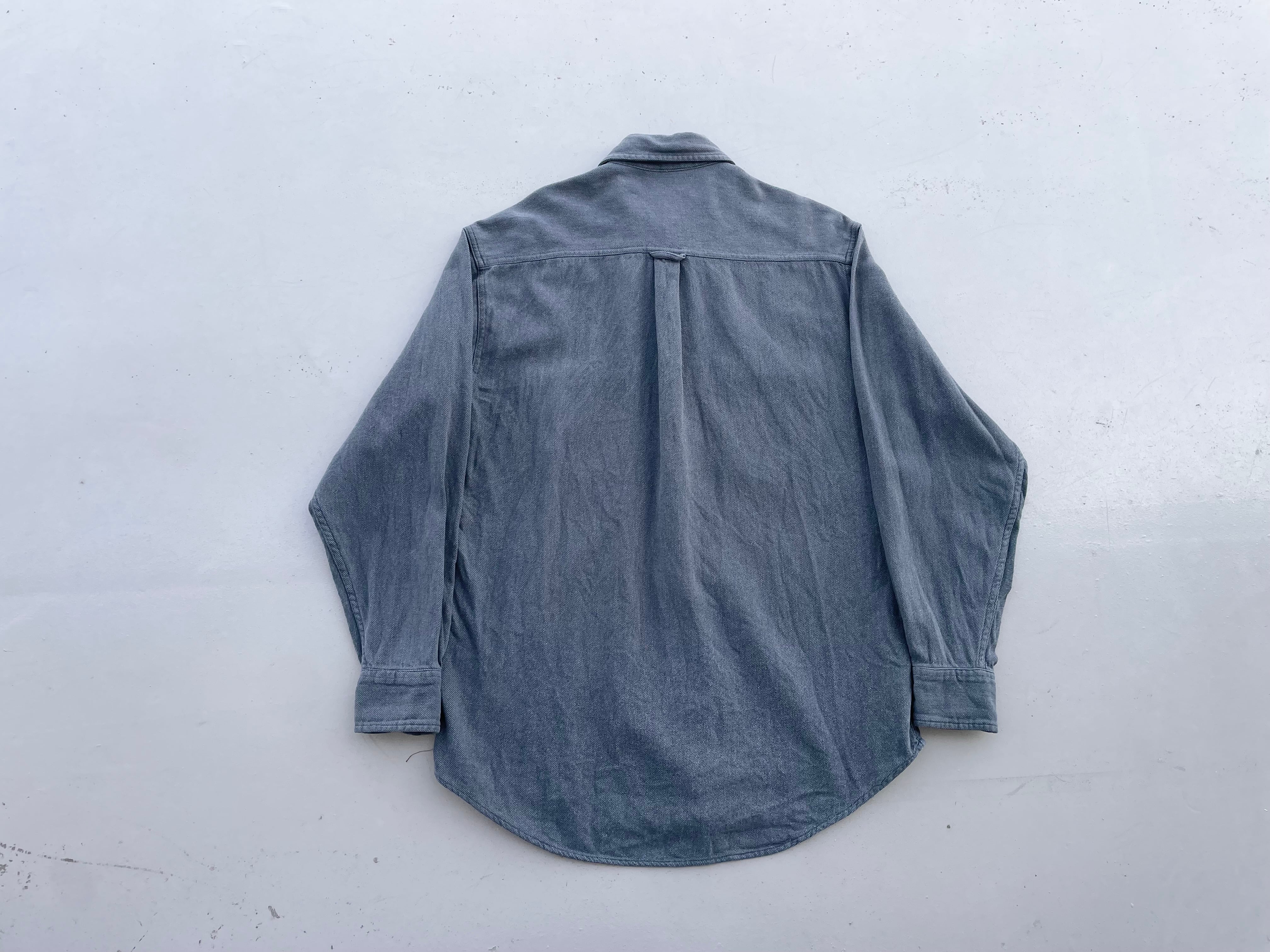 【商品詳細】ギャップの長袖シャツ。サイズはS。カラーはブラックグレー。90年代バーレン製。後染めブラックが洗濯されて色落ちしたような洒落たカラー。やや厚みがありながら柔らい肌触りの良いコットンツイル地でついつい手にとってしまいそうです。