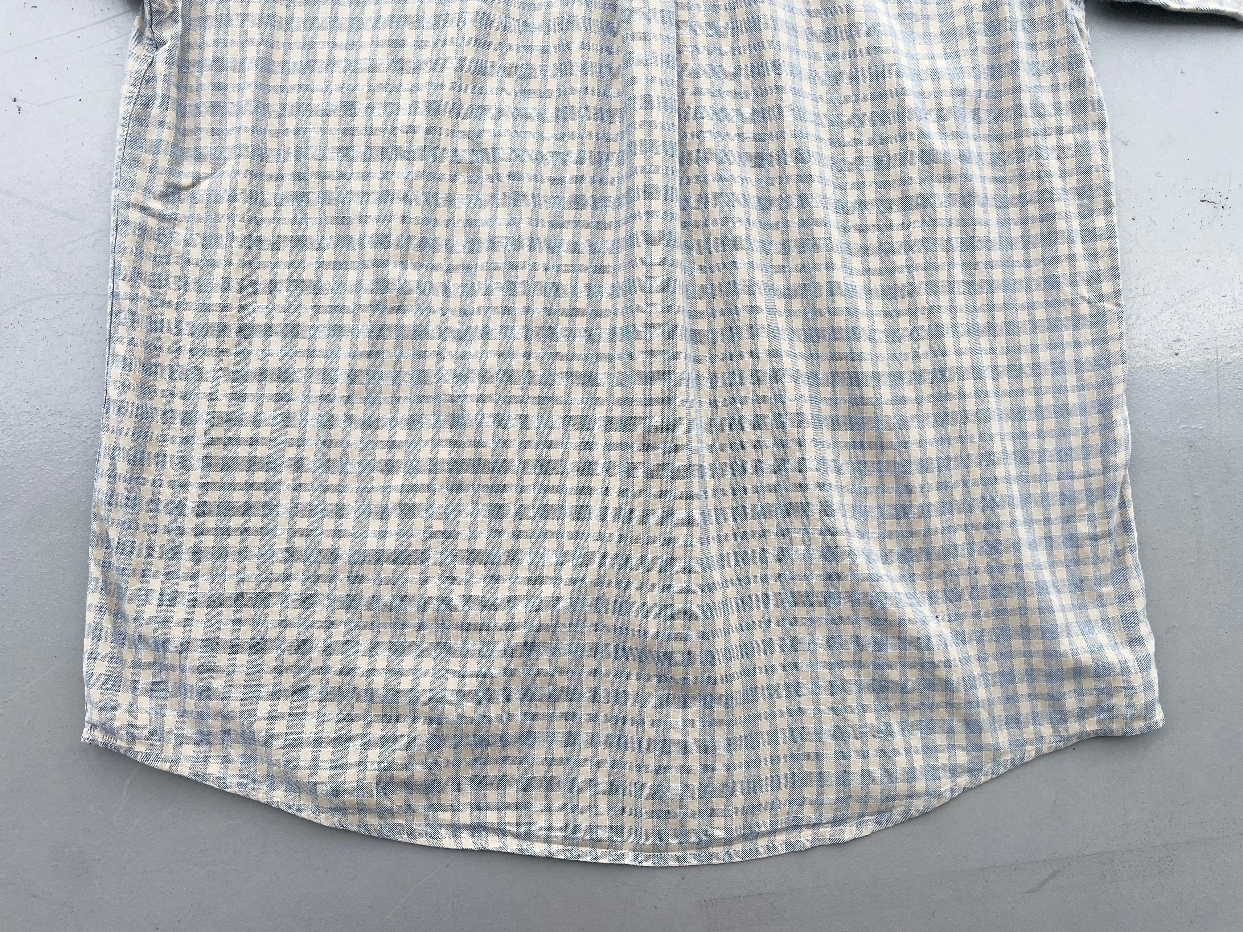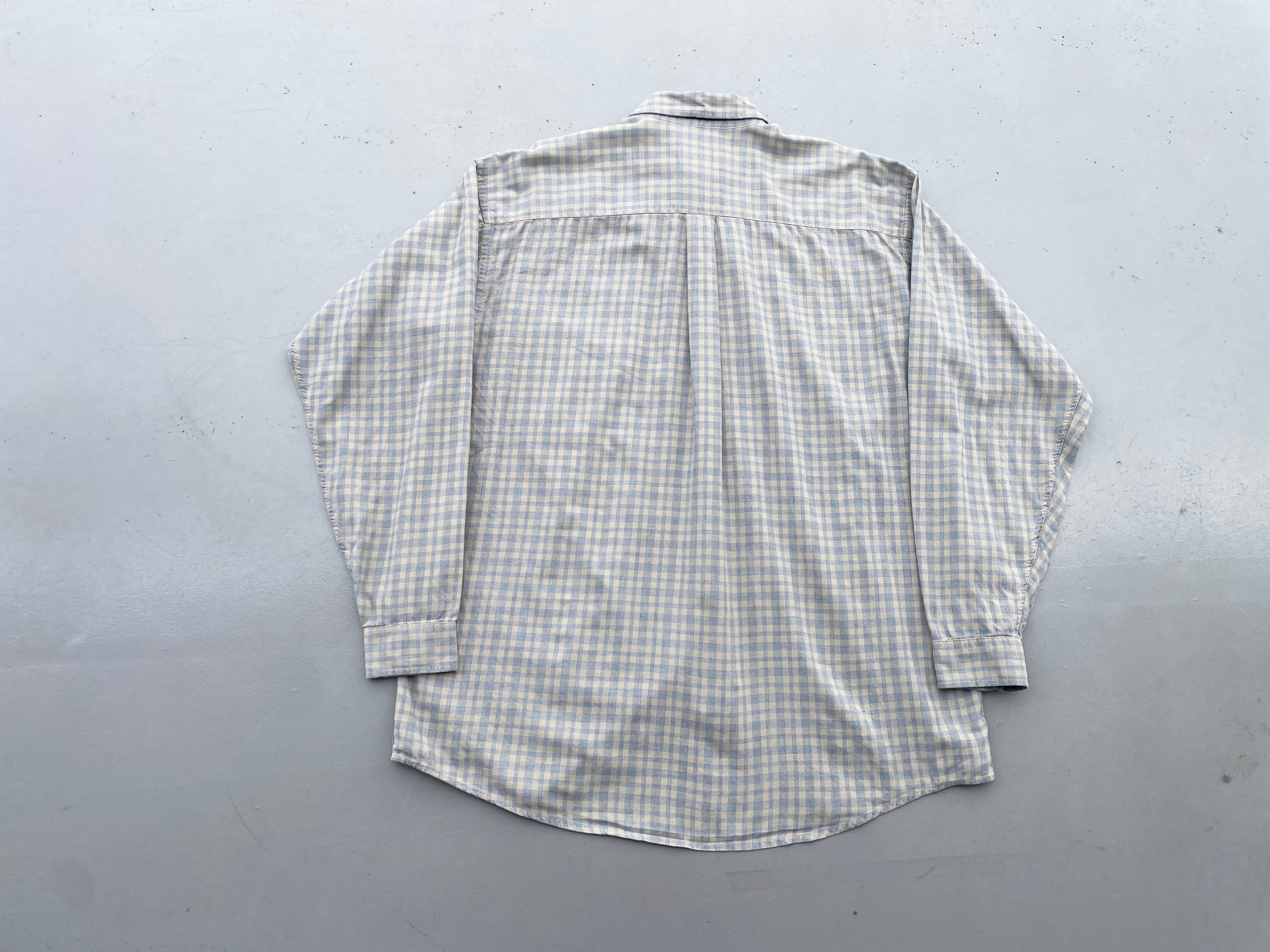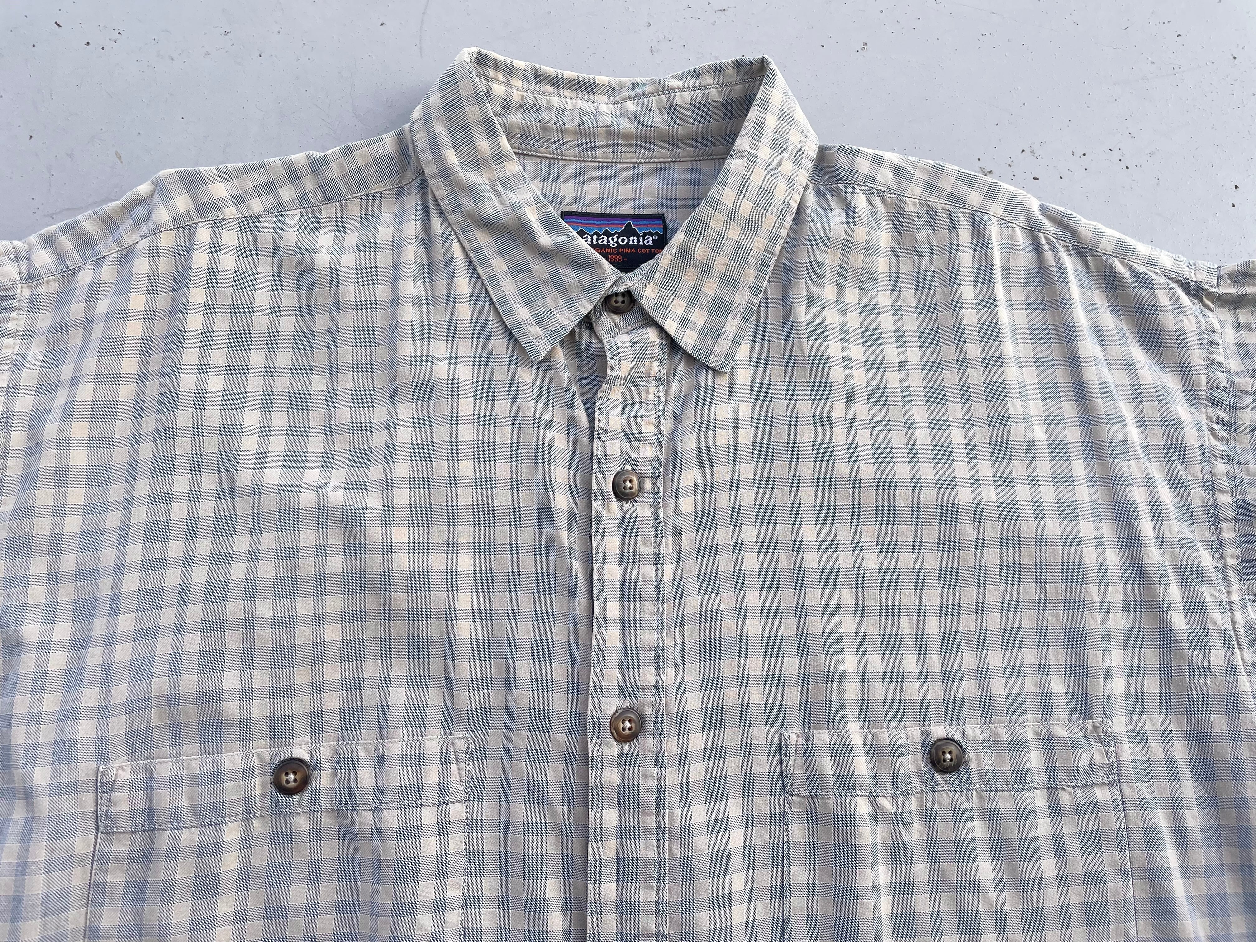 【商品詳細】パタゴニアの長袖シャツ。サイズはL。カラーはクリーム×グレーベースのチェックパターン。99年ポルトガル製。人気のポルトガル製シャツ。優しい配色のチェック柄で服装問わず使いやすそうです。