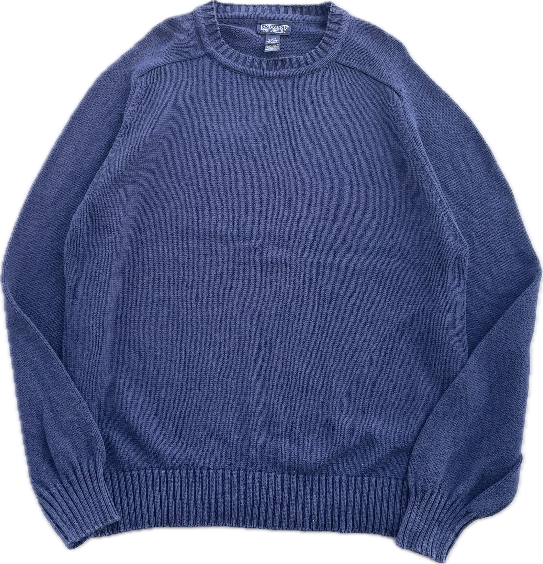 【商品詳細】ランズエンドのドリフターセーター。サイズはL。カラーはネイビー。90年代USA製。ランズエンド定番のドリフターズニット。定番ネイビーカラー。大きすぎる個体が多いイメージですがこちらは実寸の通り着れる個体かと。