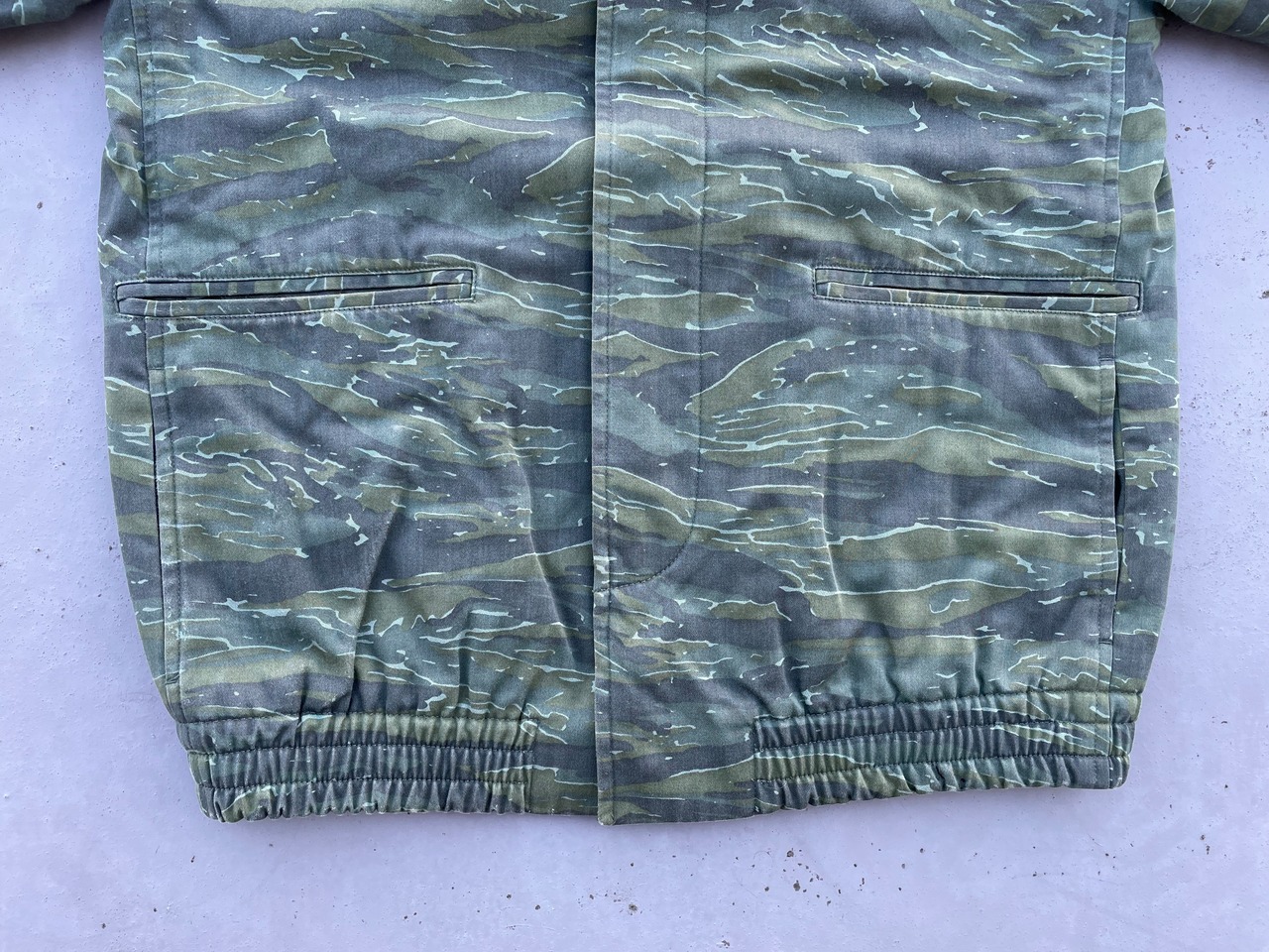【商品詳細】アーペーセーのタイガーカモブルゾン。古着好きには刺さるデザインかと。今の時期にはアウターの中に。春先はライトアウターとして活躍する1着。