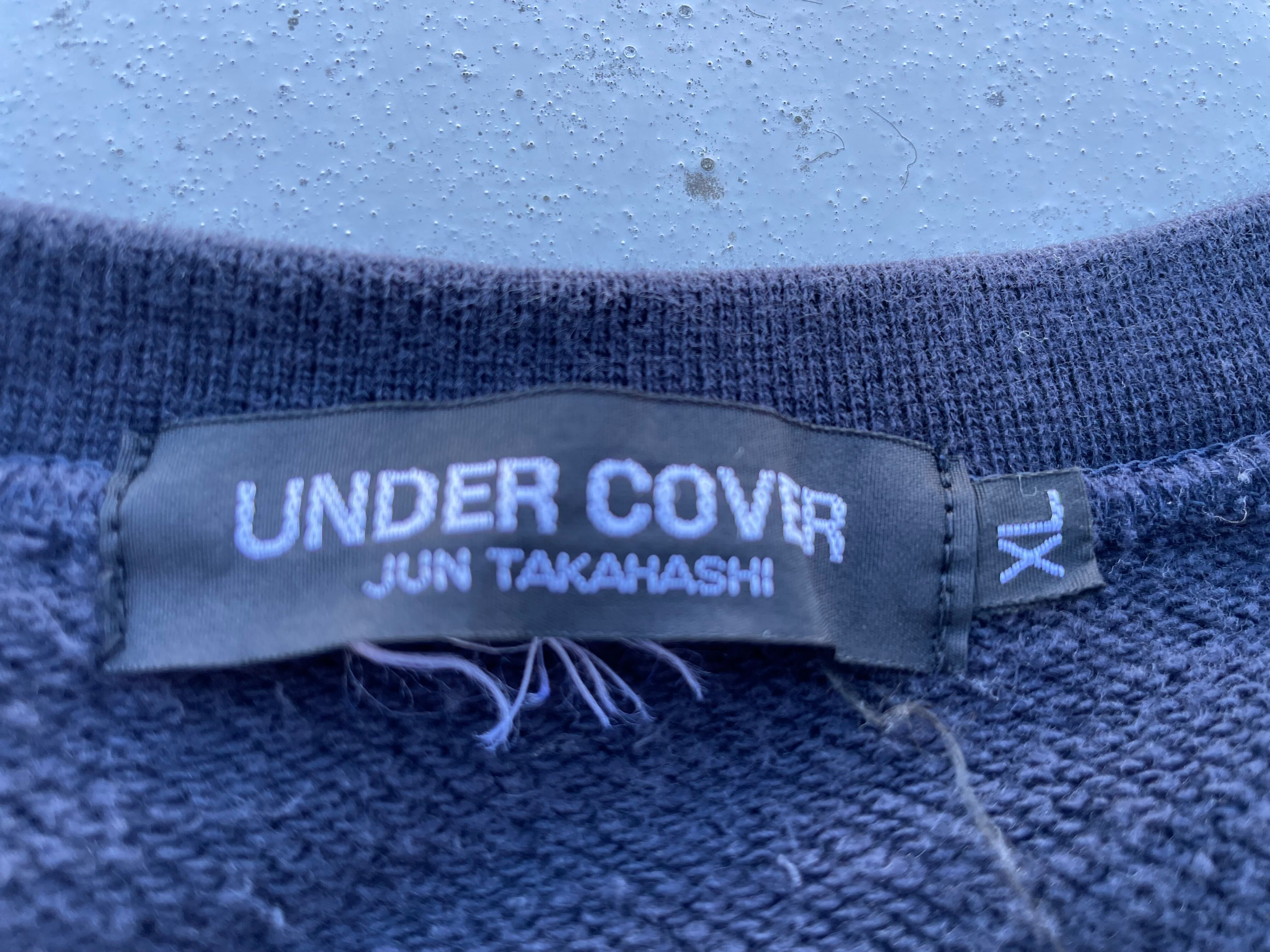 【商品詳細】アンダーカバー 歪み期のスウェット。カラーはブラック基調にネイビーを混ぜたような色。名作歪みニューヨークパターン。タイトめなサイズ感が多い印象ですが、こちらは嬉しいXLサイズ。Tシャツやパーカーよりも見ない気がします。個人的に好きなモデルで売れなかったら買う系。