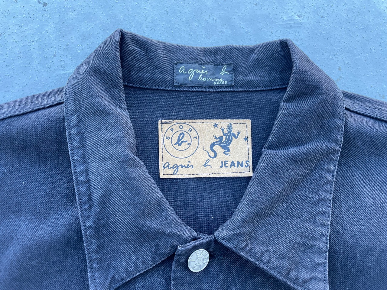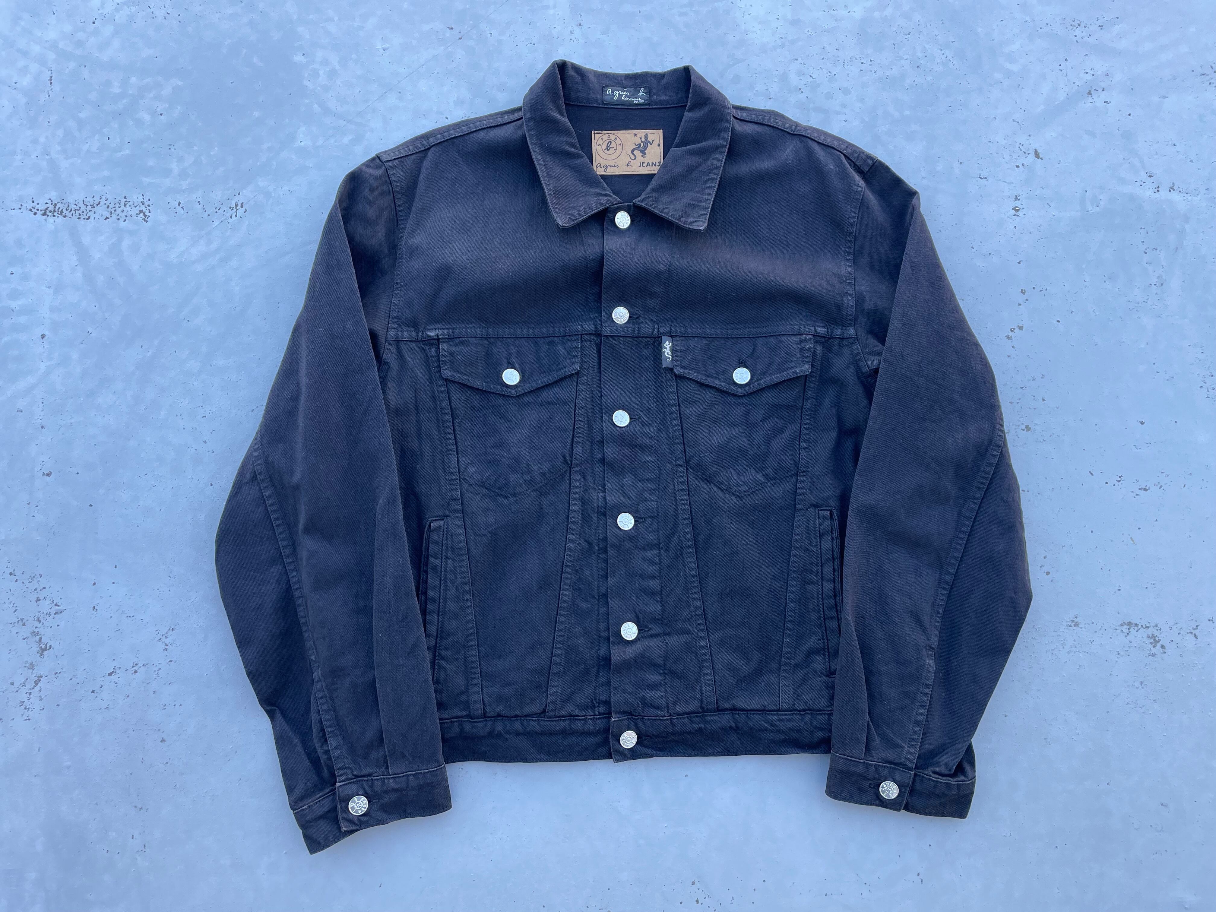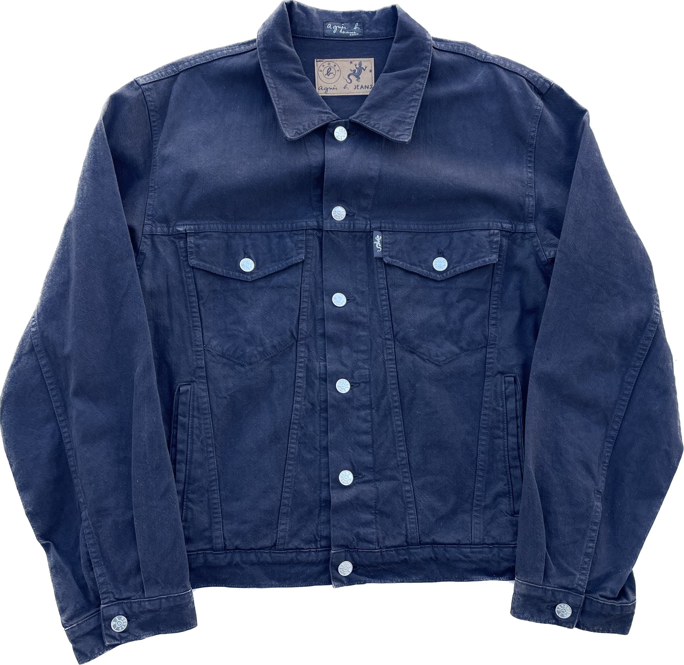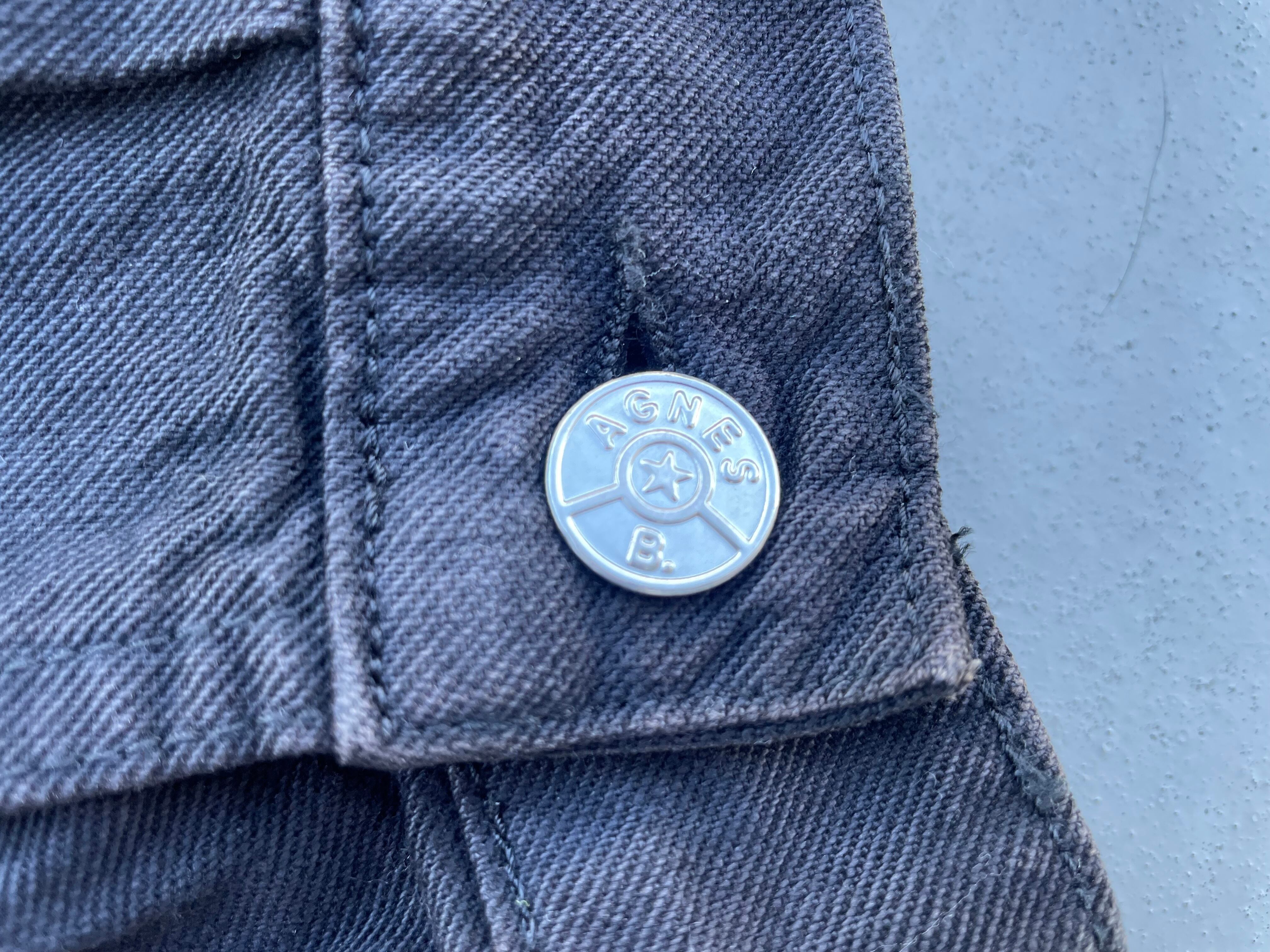 【商品詳細】アニエスベーのデニムトラッカージャケット。カラーは人気のブラック。このモデルは小さいが多いですが、こちらは着丈・肩幅・袖丈・身幅がしっかりあるでかめサイズ。色も残っており色落ちも楽しめると思います。条件の揃った1着。
