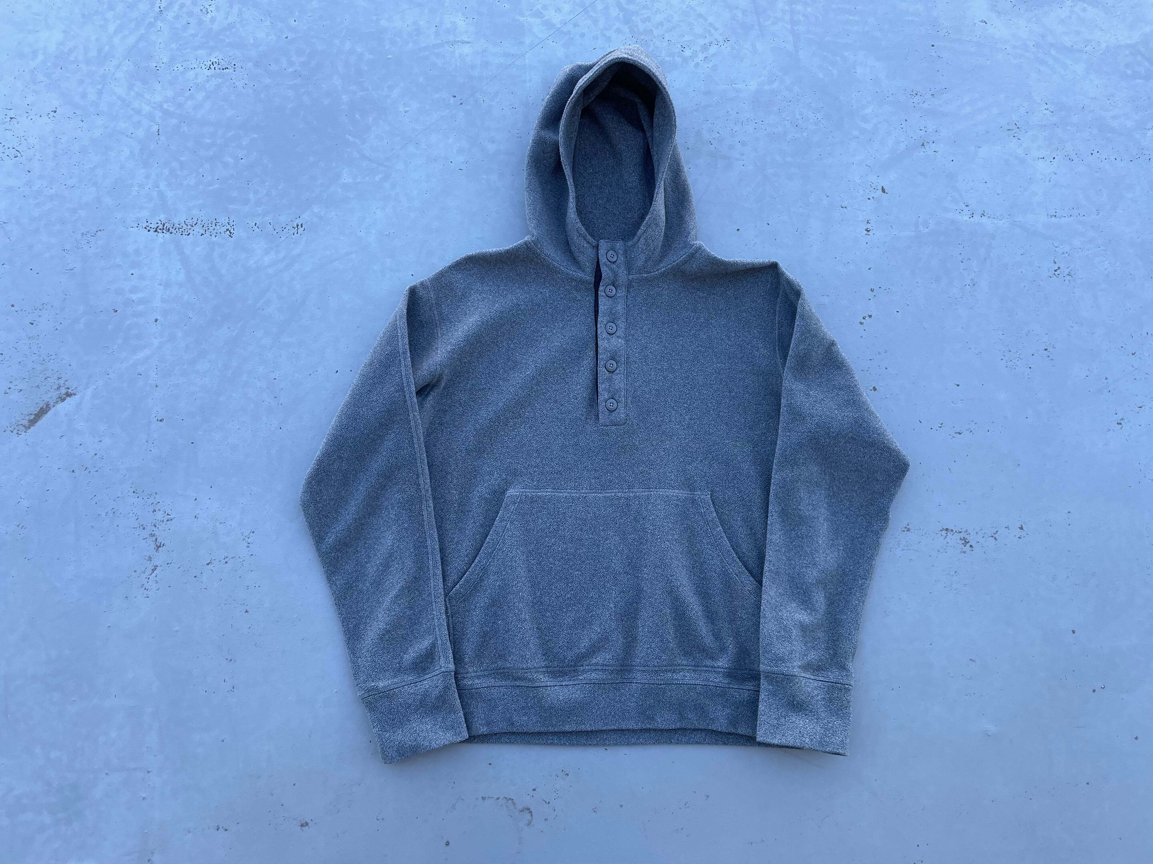 【商品詳細】PatagoniaのEddy Fleece Hoodie。カラーはグレー。サイズはM。5ボタンプルオーバー仕様。デイリーに使用しやすいカラー・モデル。