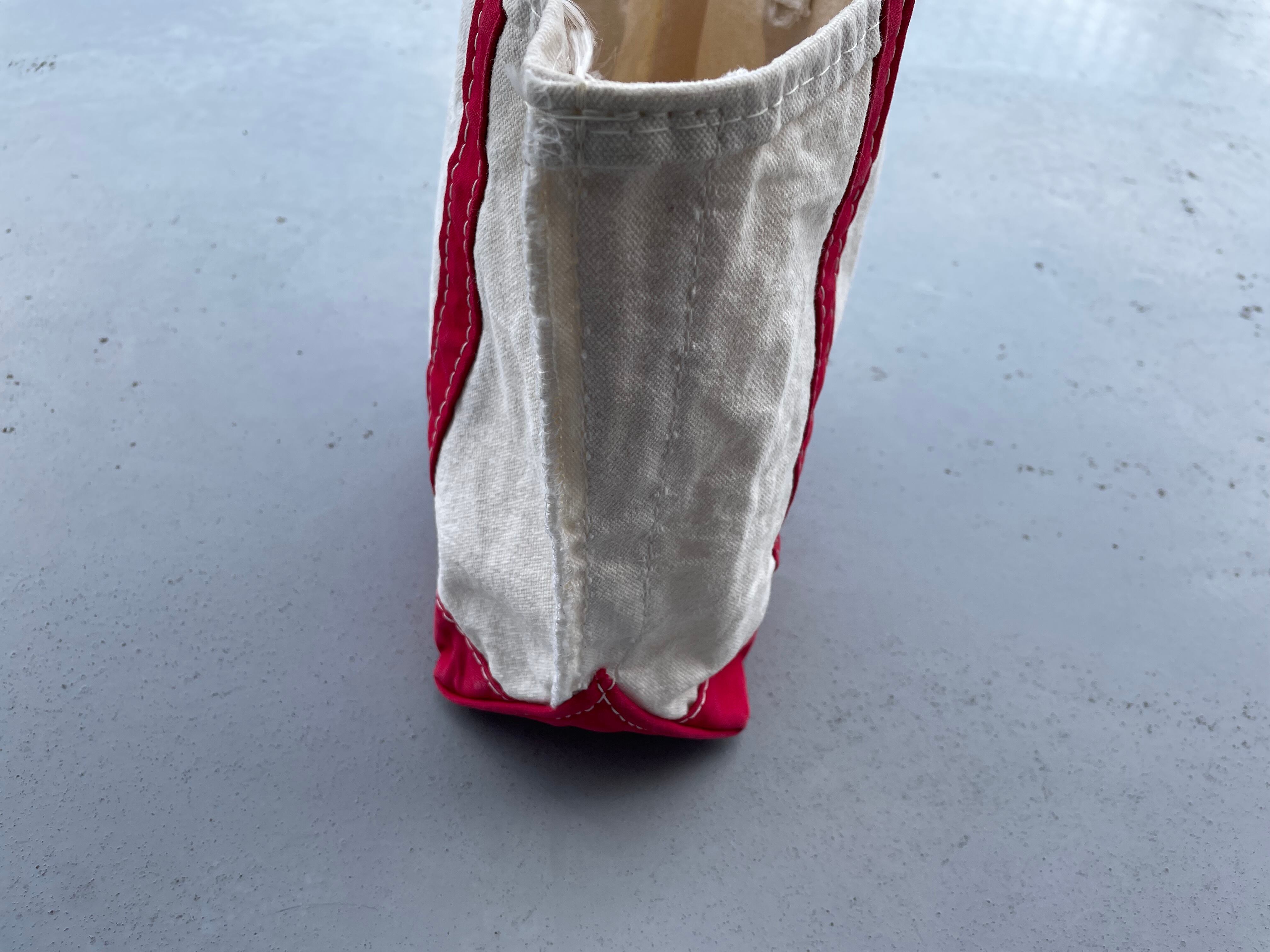 【商品詳細】エルエルビーンのスモールトートバッグ。カラーはレッド。90年代ゴシック体タグ仕様。メインバッグとしては勿論ですが小ぶりな装いなのでバッグインバッグとしても活躍するかと思います。