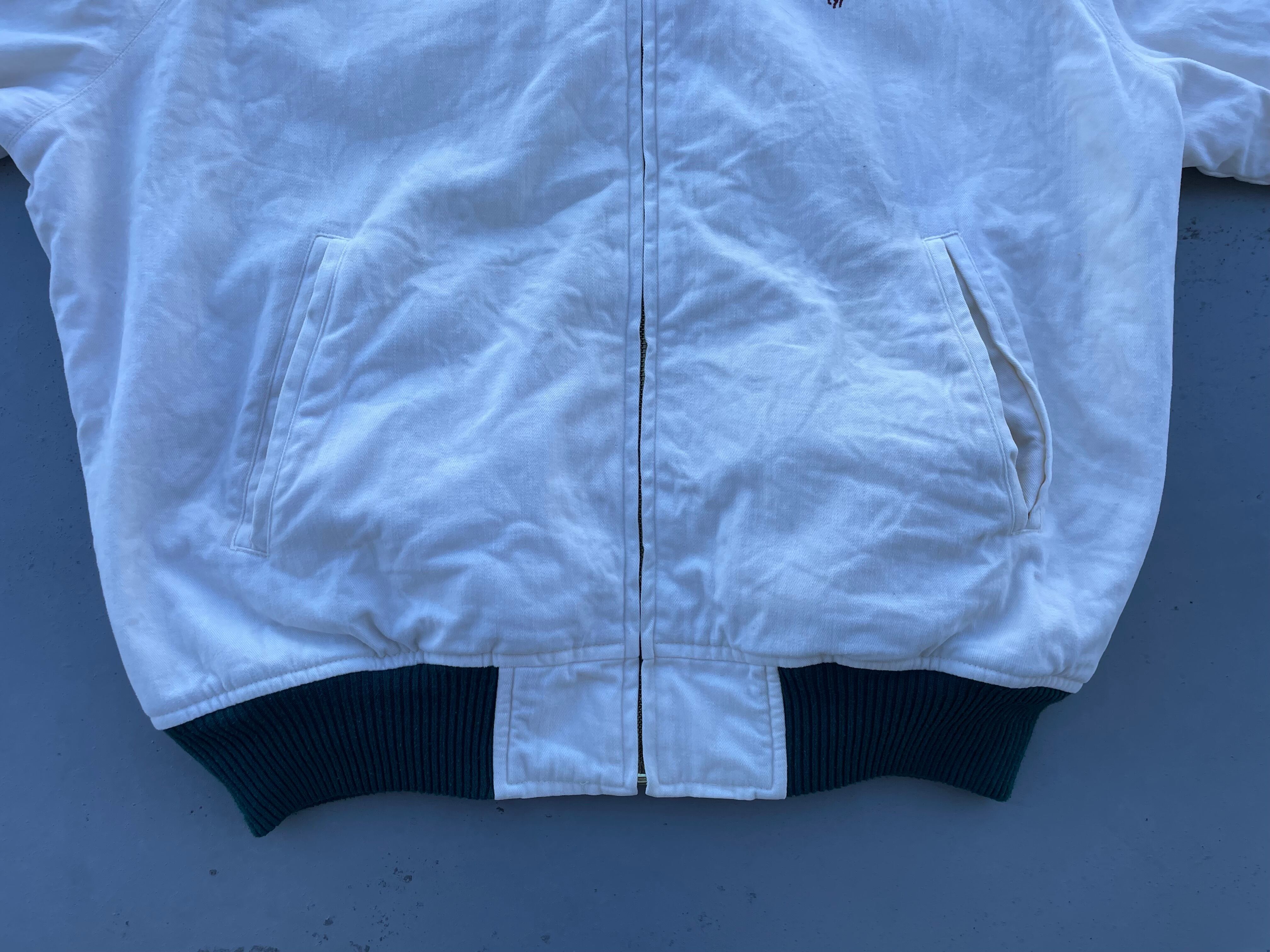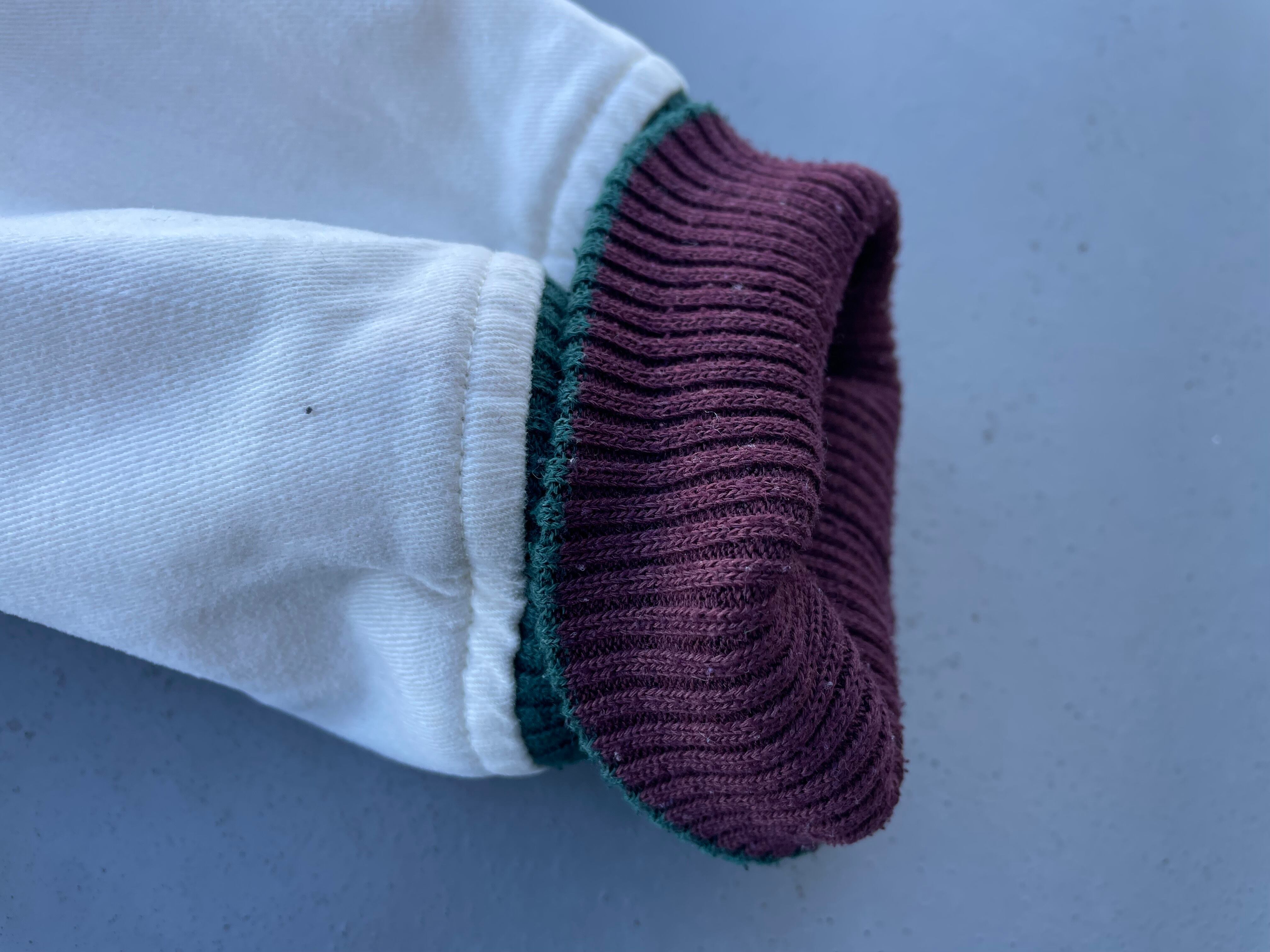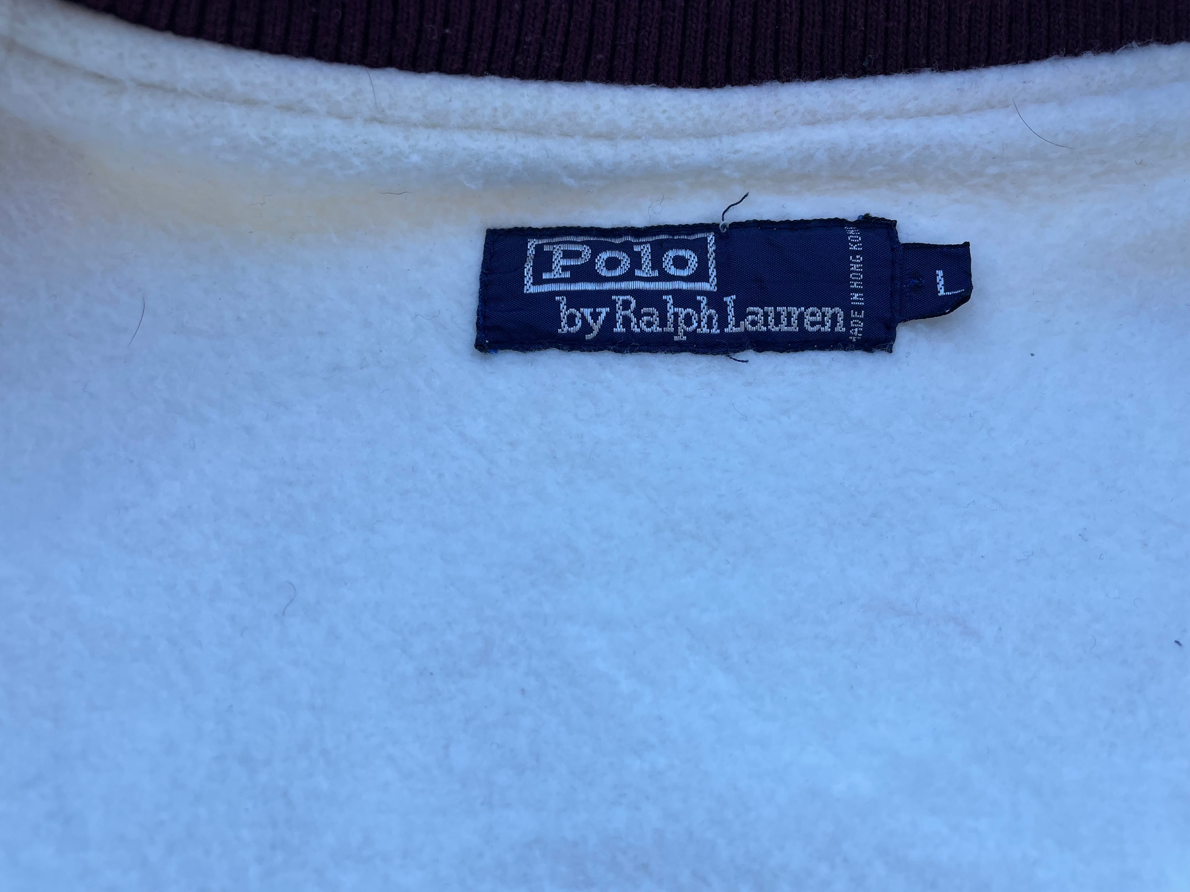 【商品詳細】ラルフローレンのコットン×フリース ボンバージャケット。サイズはL。生成りカラー。ガシッと厚めのコットン地にライナーはフリース張の仕様でばっちり暖かいです。リブ裏はバーガンディ色になっており、細かいところも気が利いてます。着丈もしっかりあり着回ししやすい1着。