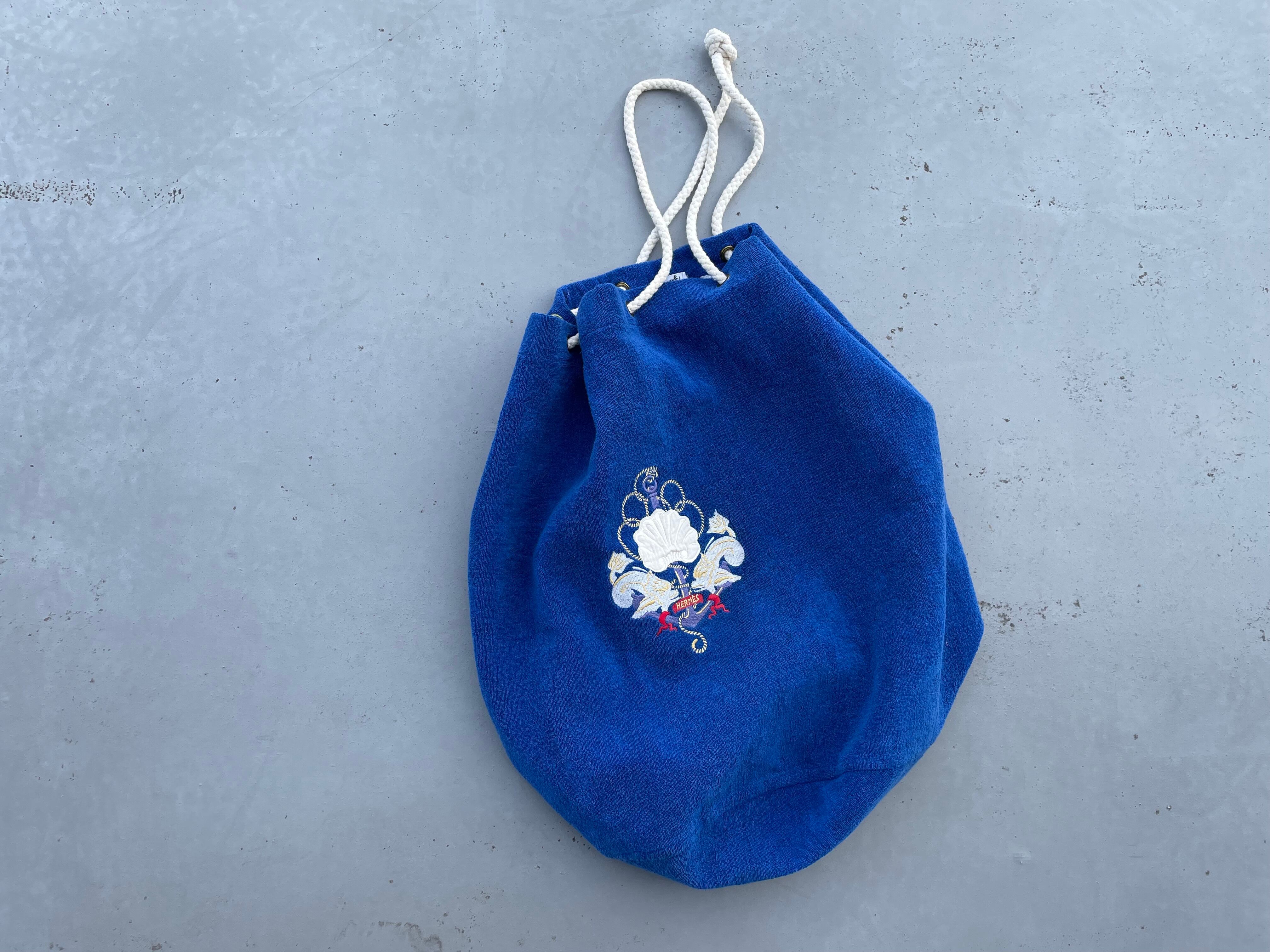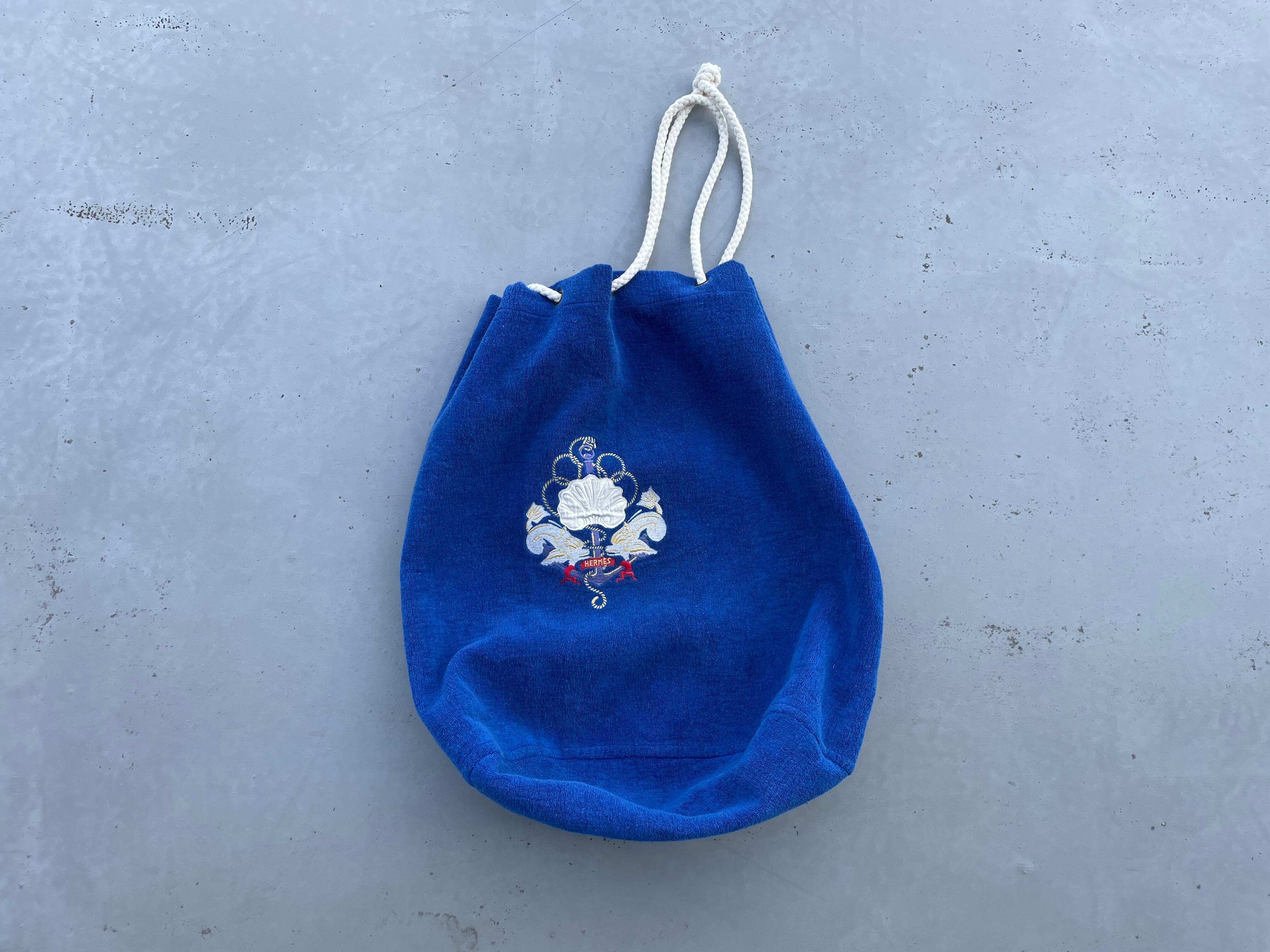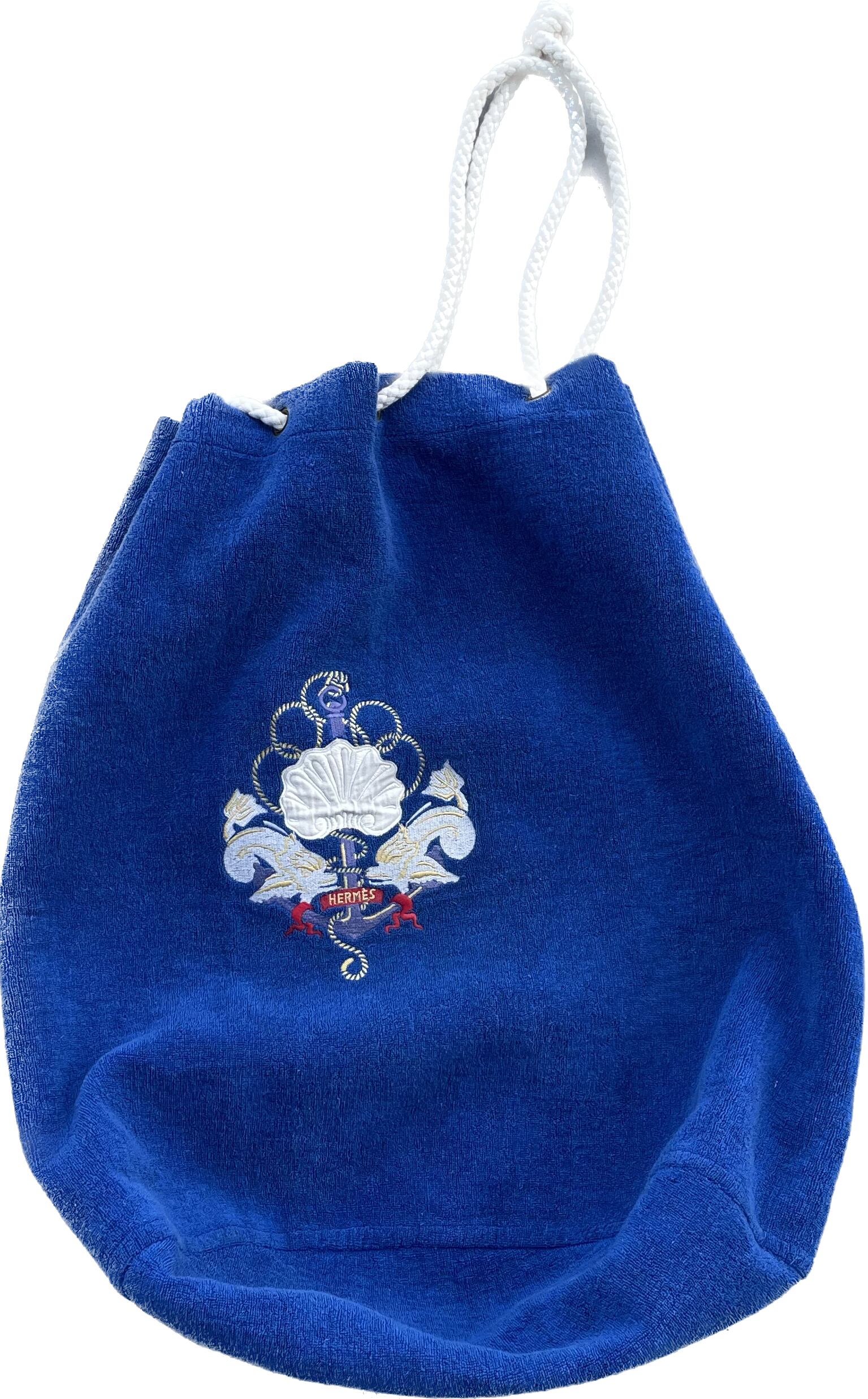 【商品詳細】希少なエルメスのパイル地巾着バッグ。カラーはブルー。フランス製。大きめサイズで収納力もしっかりございます。古めのモデルですが比較的状態も良いと思います。