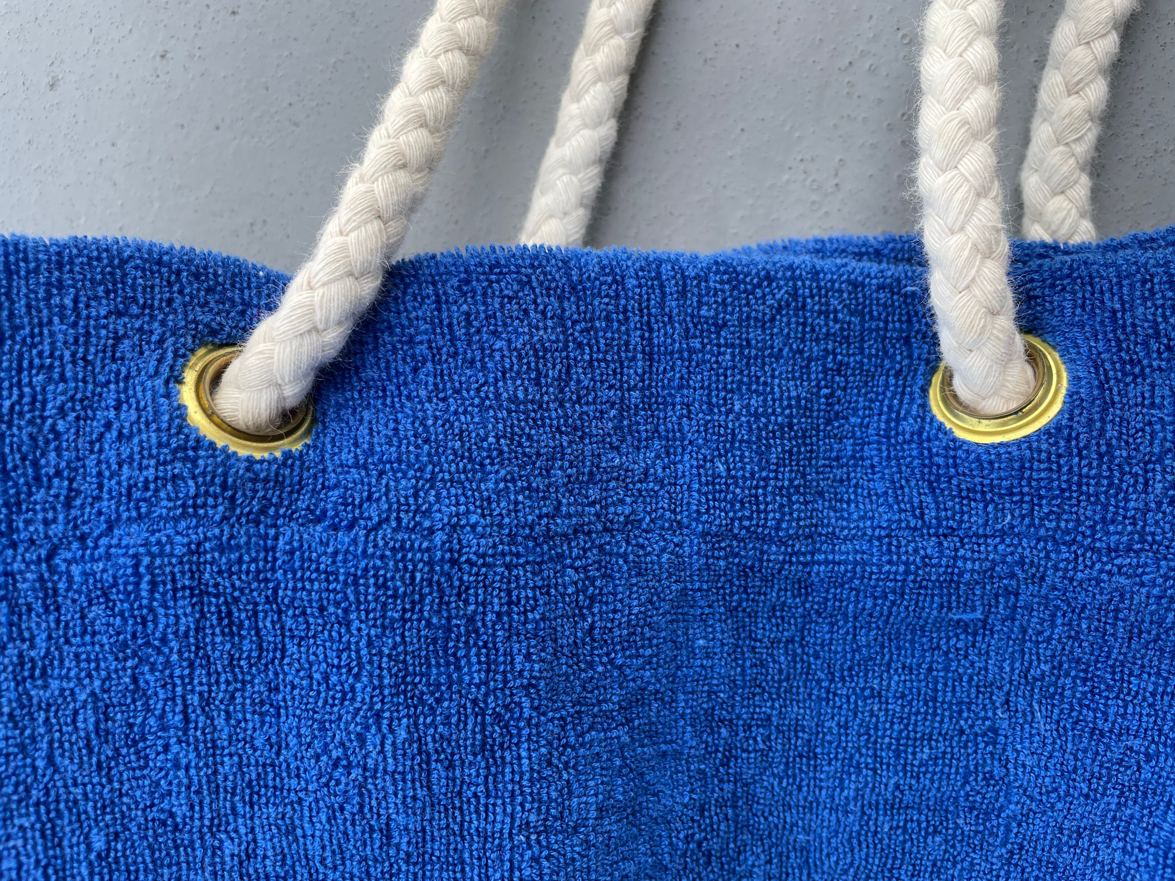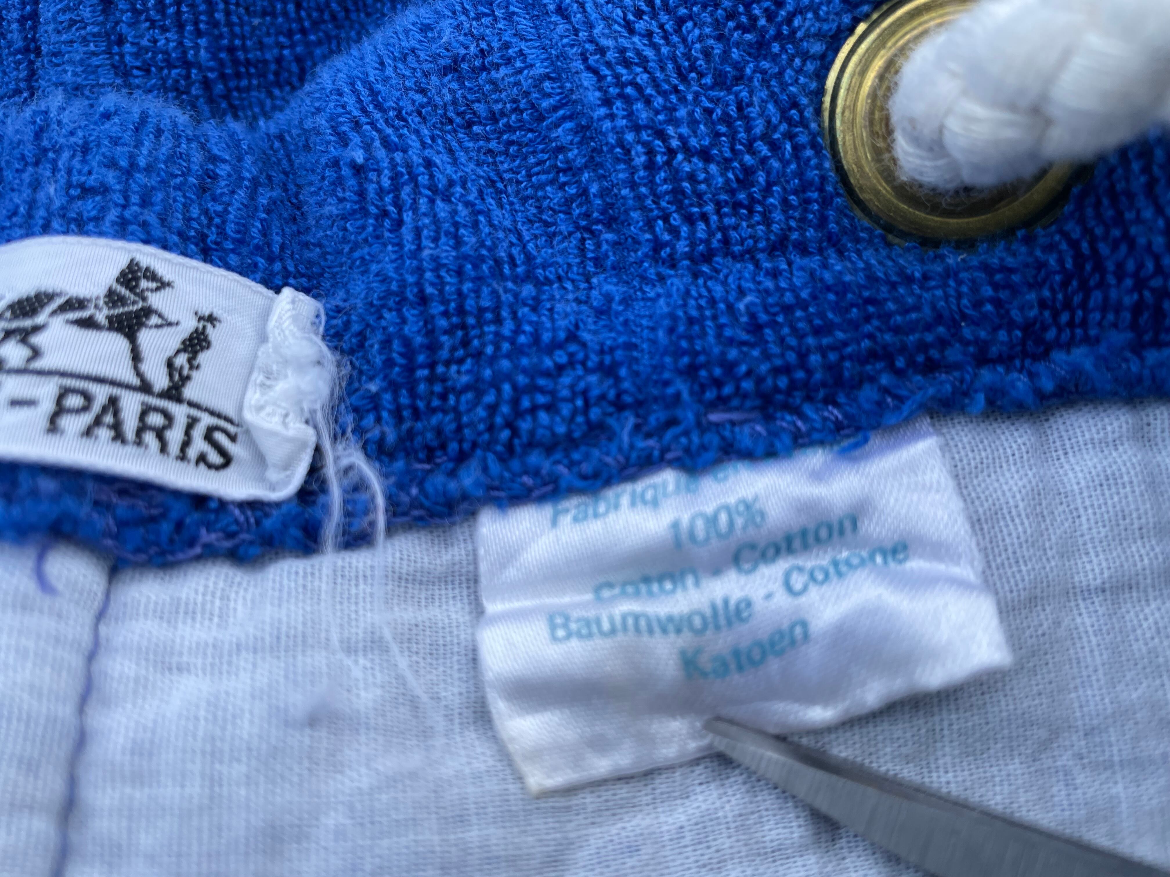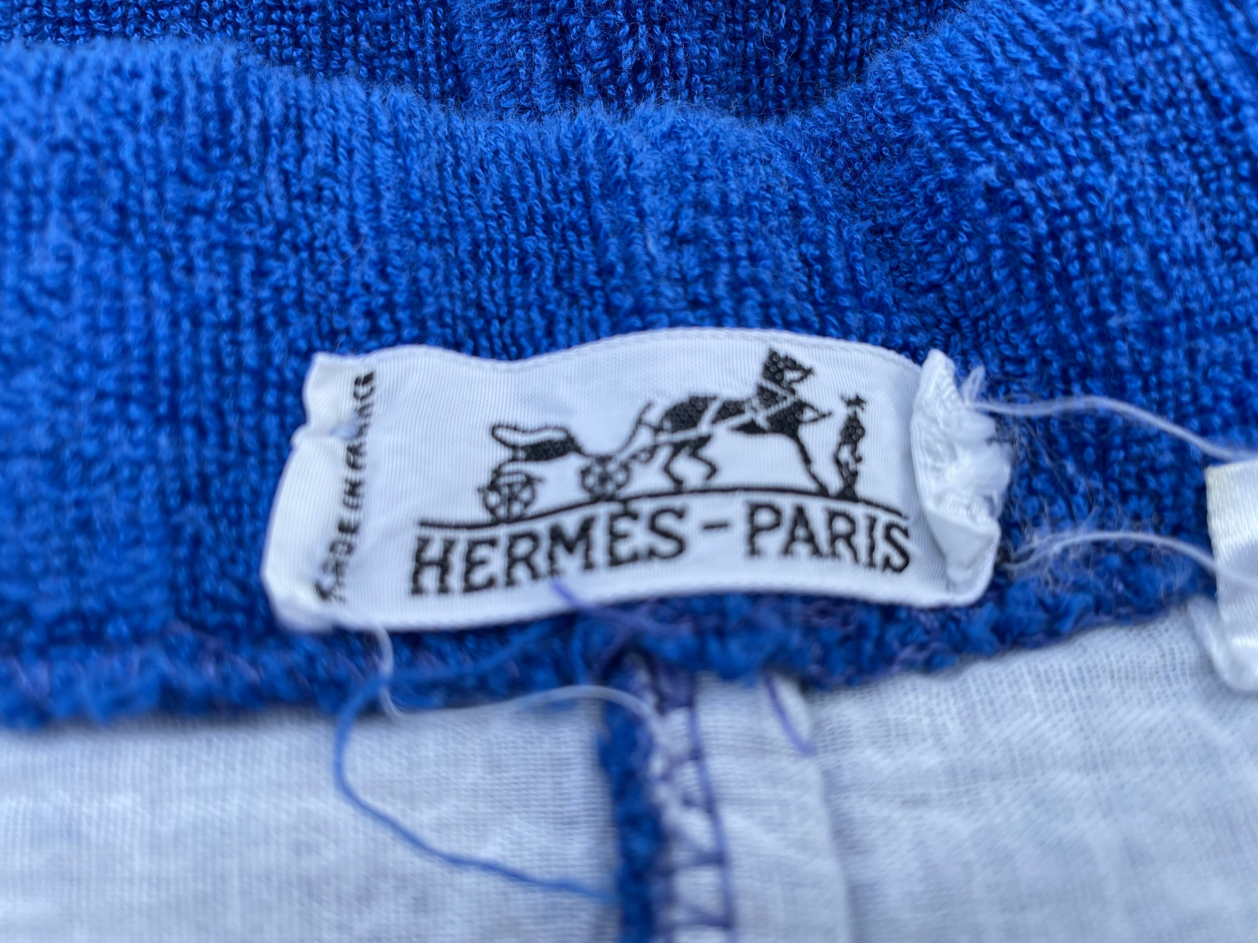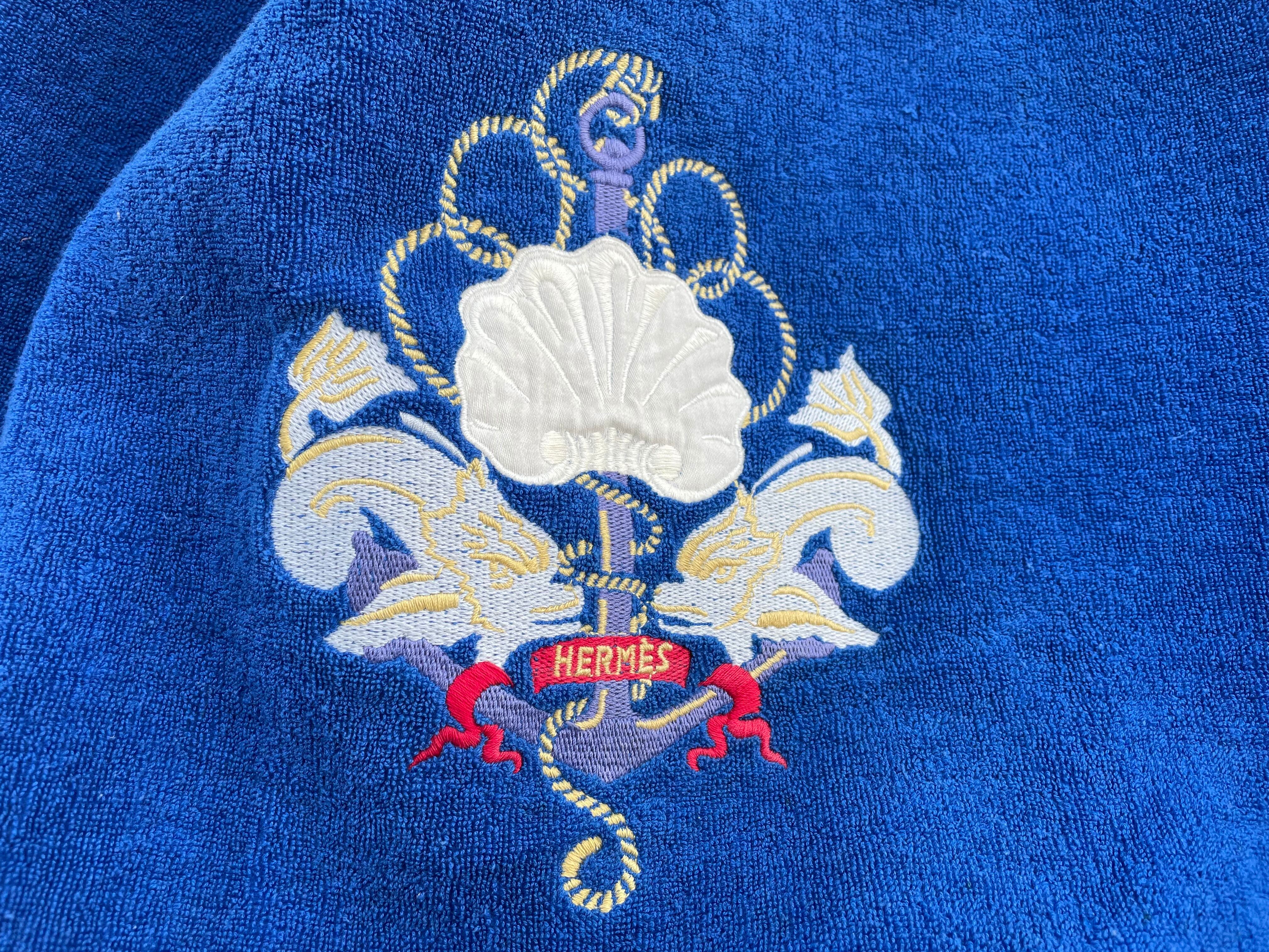 【商品詳細】希少なエルメスのパイル地巾着バッグ。カラーはブルー。フランス製。大きめサイズで収納力もしっかりございます。古めのモデルですが比較的状態も良いと思います。
