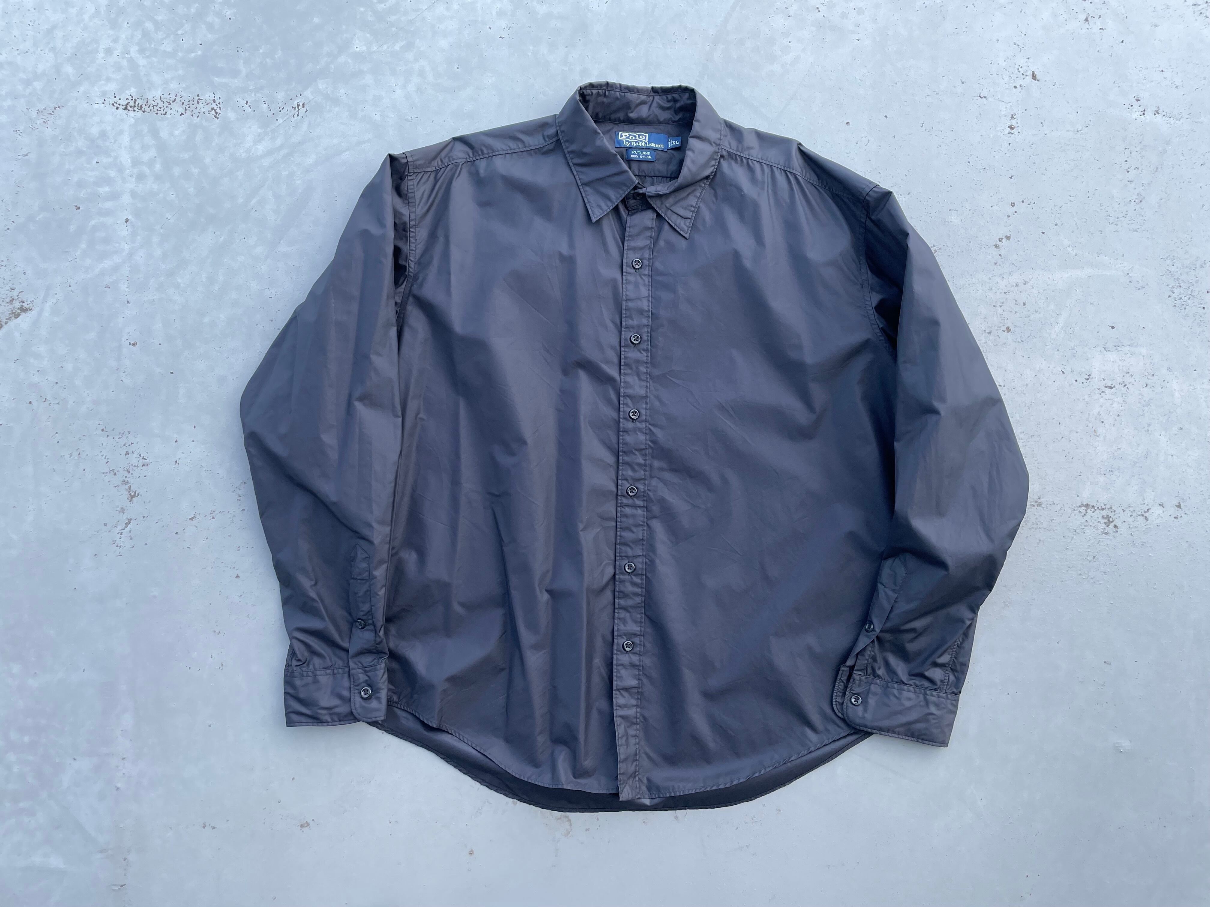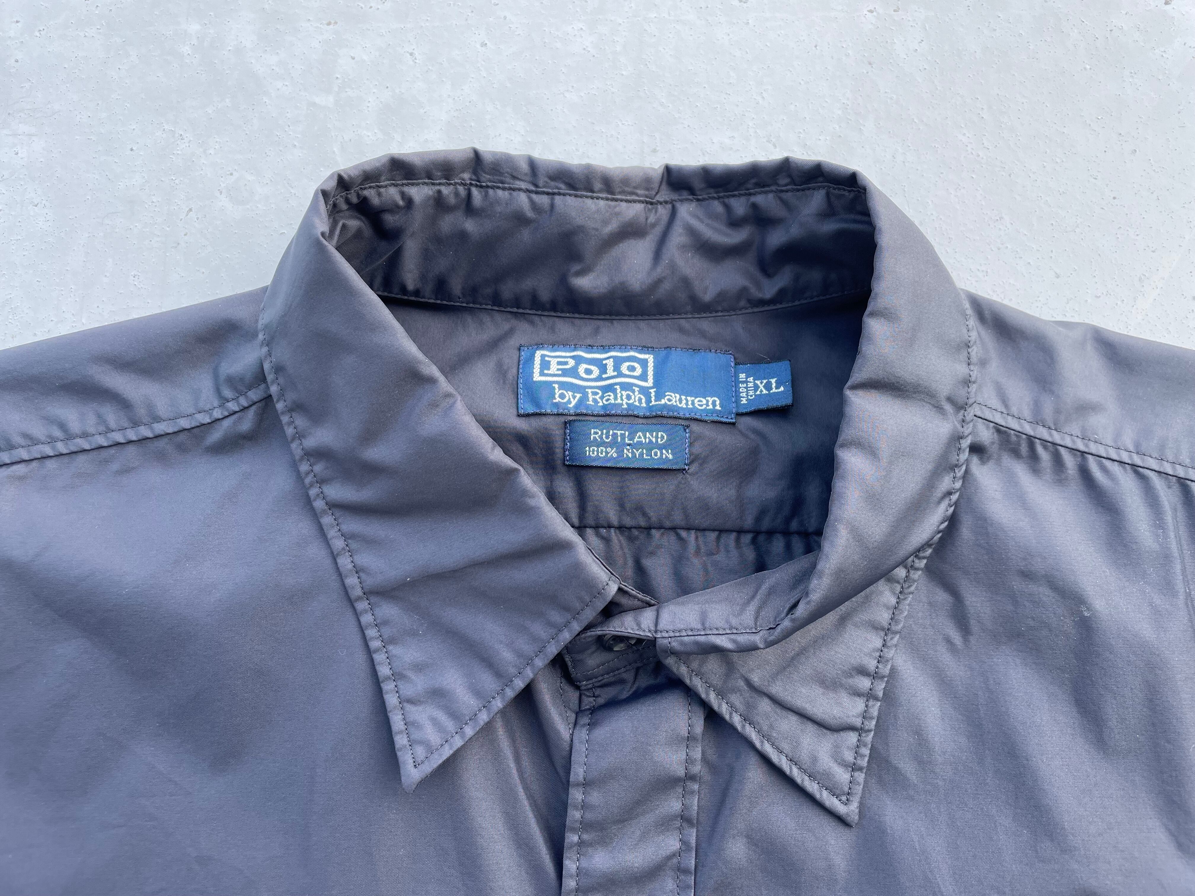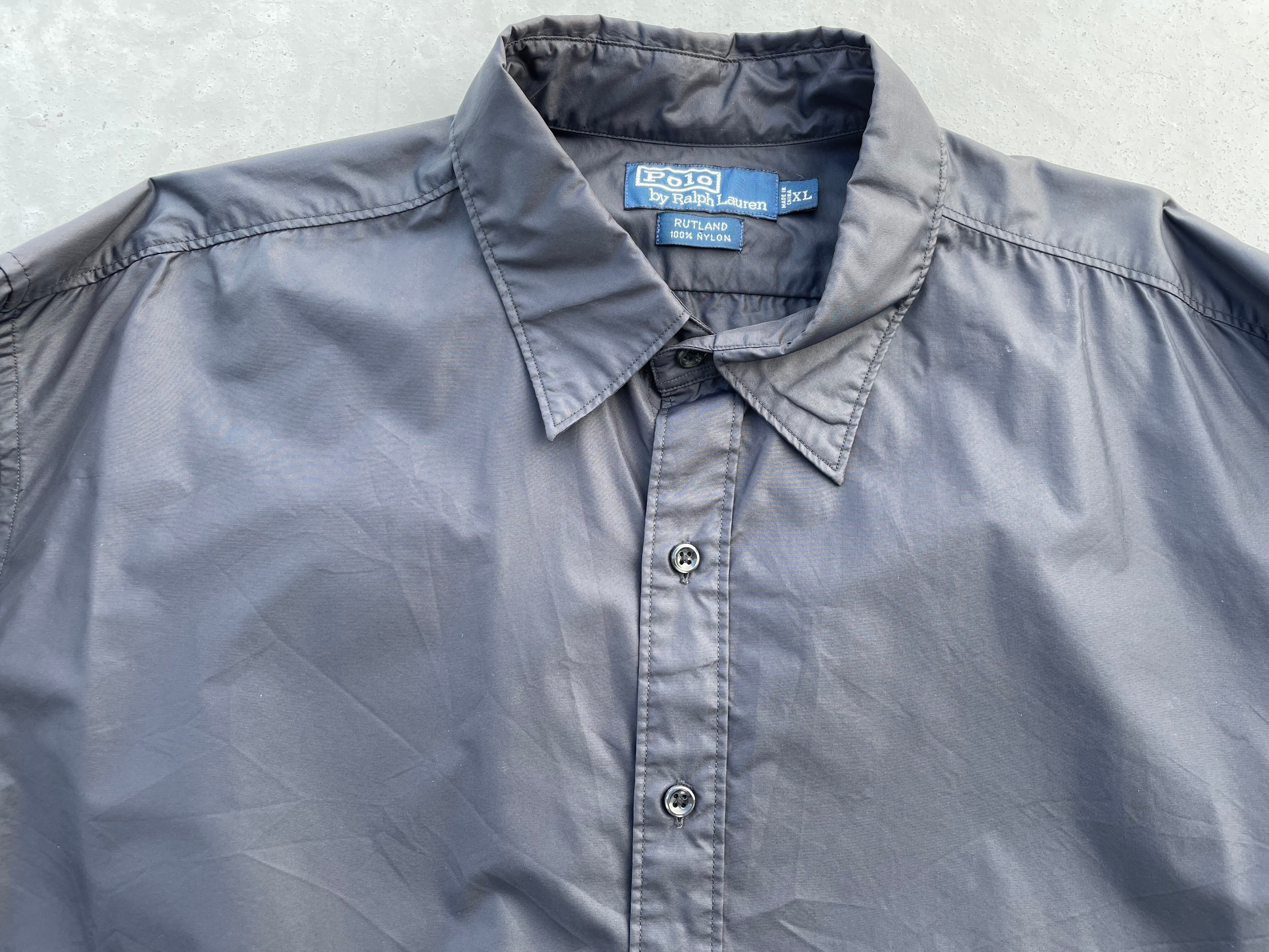 【商品詳細】ラルフローレンの希少モデル”RUTLAND”。カラーはブラック。サイズはXL。シンプルなレギュラーカラーシャツでありながらナイロン100%の珍しい1着。ナイロンだと野暮ったい印象になりがちですが、綺麗なシルエットや袖ギャザー入り等、ラルフローレンらしい気の利いた上品な仕上がりになっております。探してもなかなか見つからない系。
