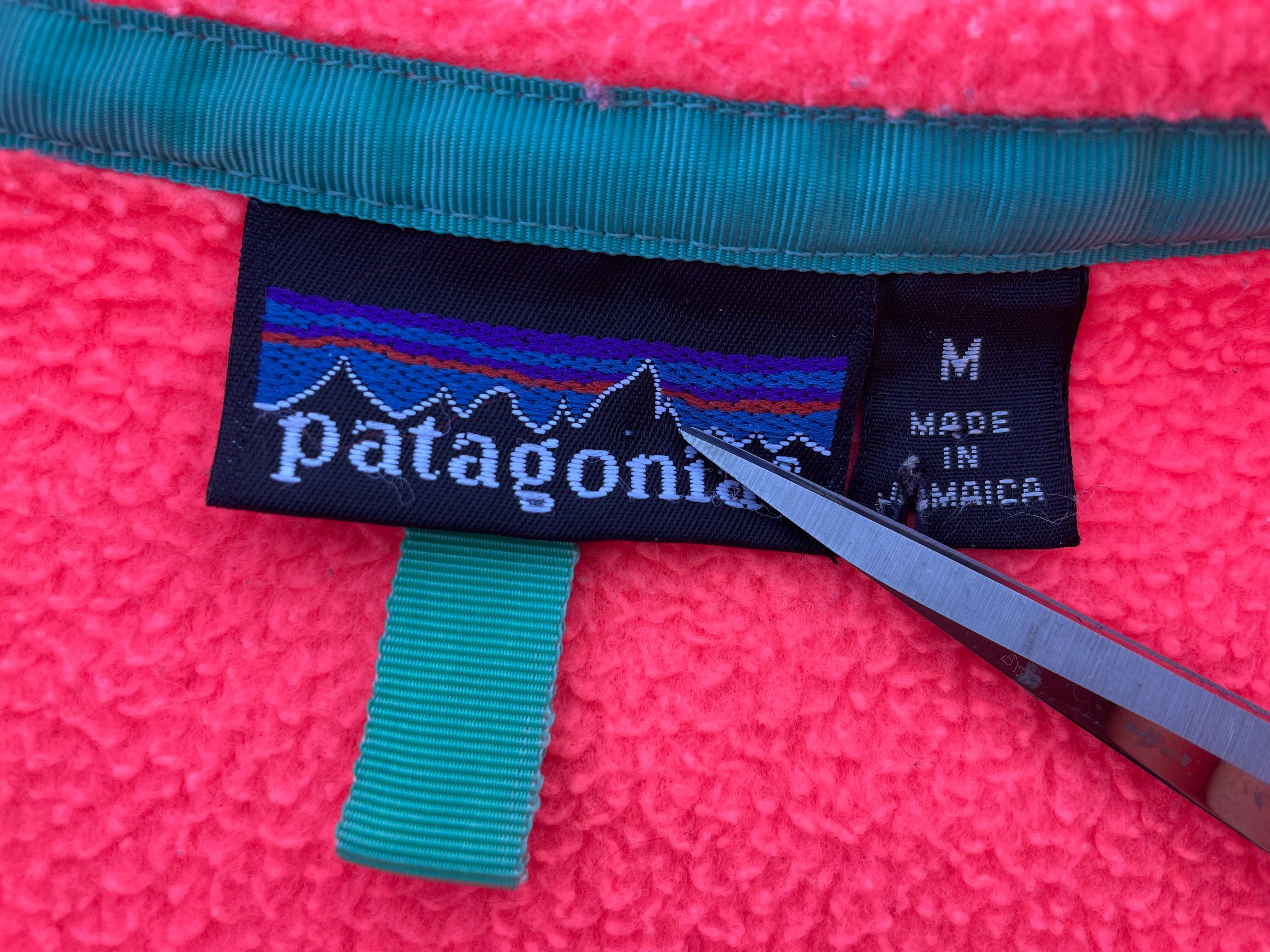 【商品詳細】パタゴニアのシンチラ スナップT。カラーは蛍光ピンク色のCoral Pink。前立て・パイピングはペリウィンクルのパープル味のあるカラー。パタゴニアらしいレトロなカラーリング◎右袖手首付近にダメージありますが穴では無いので使用に支障は無く、まだまだご着用可能かと思います。