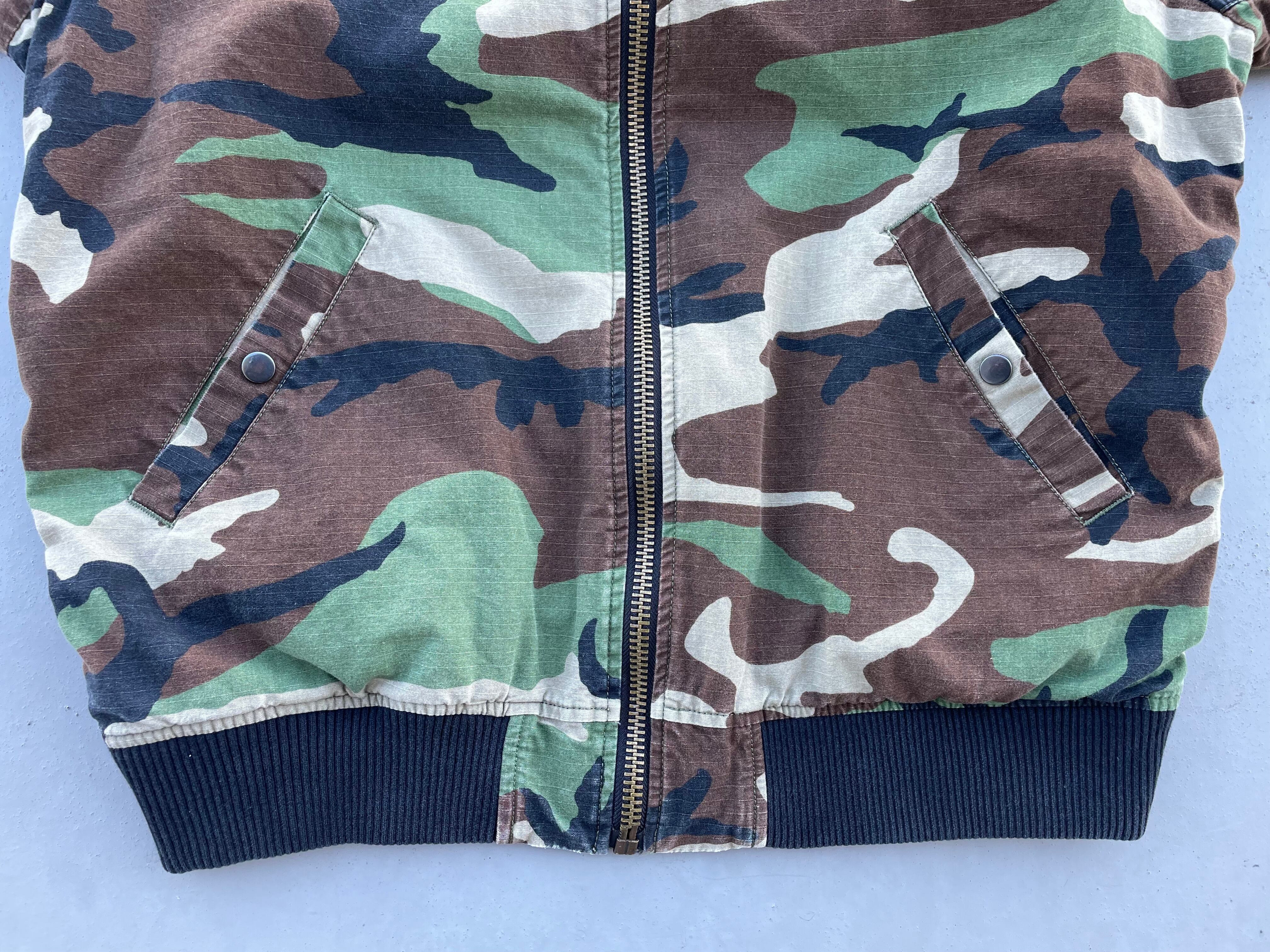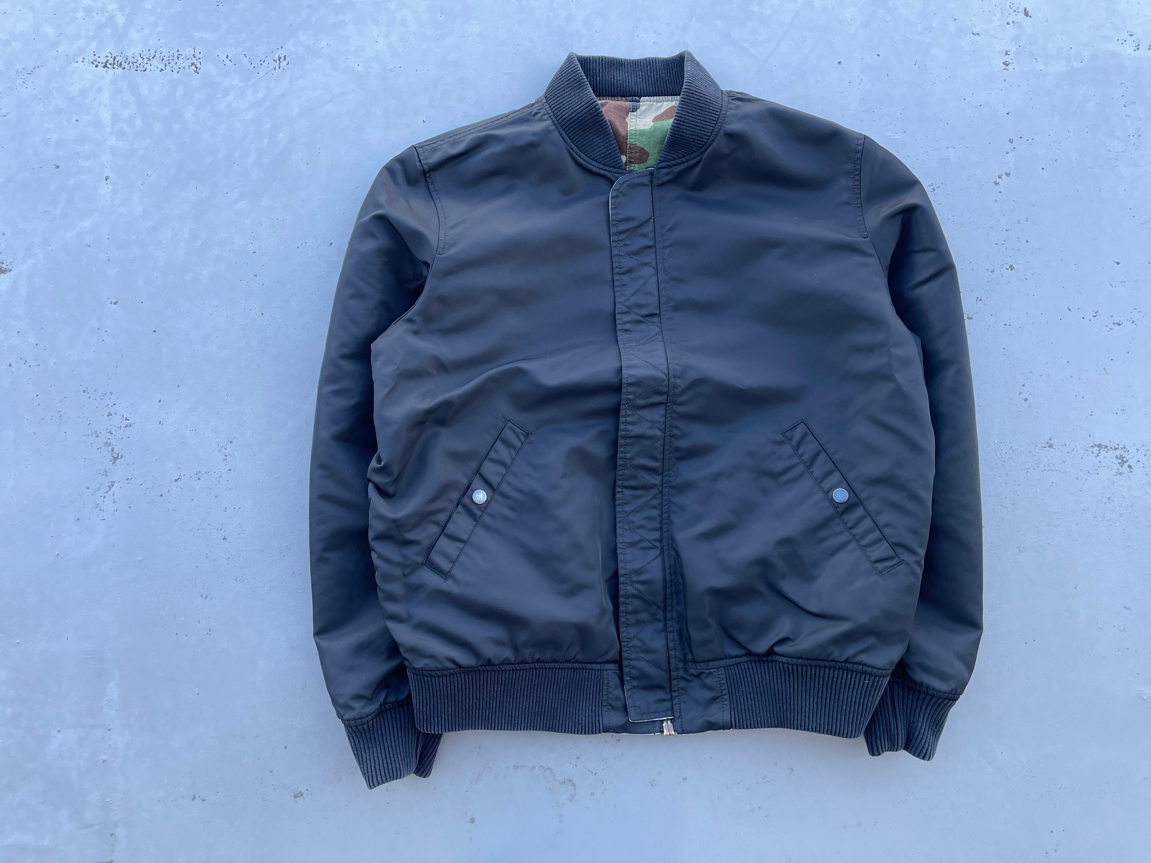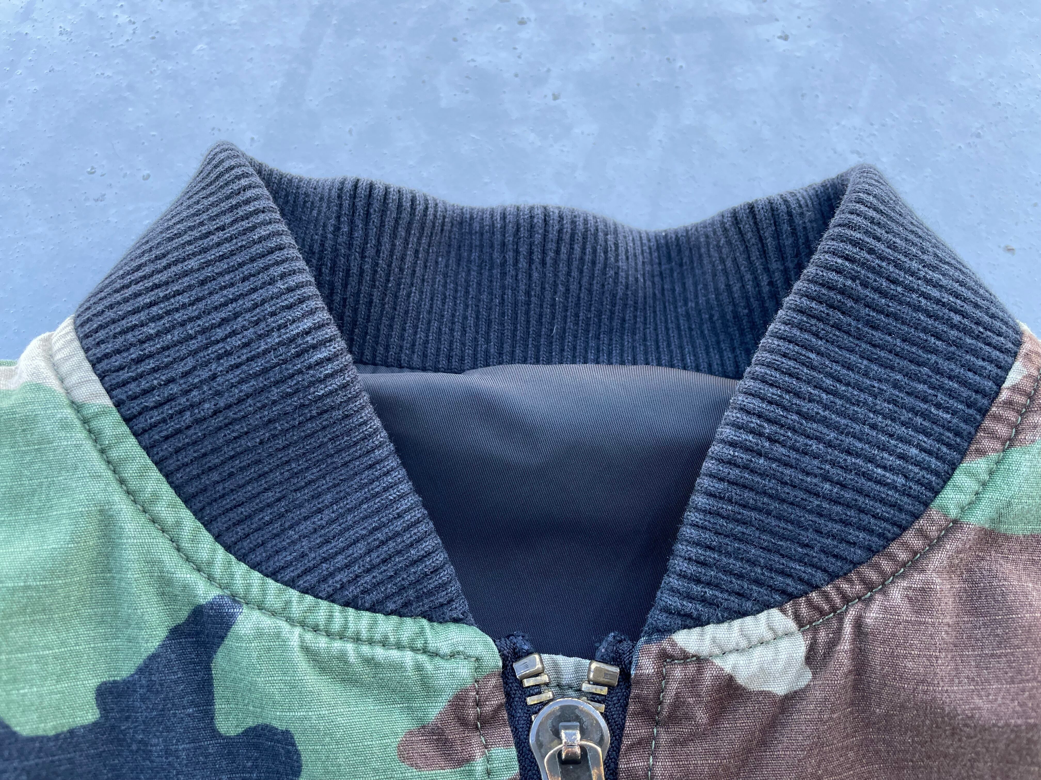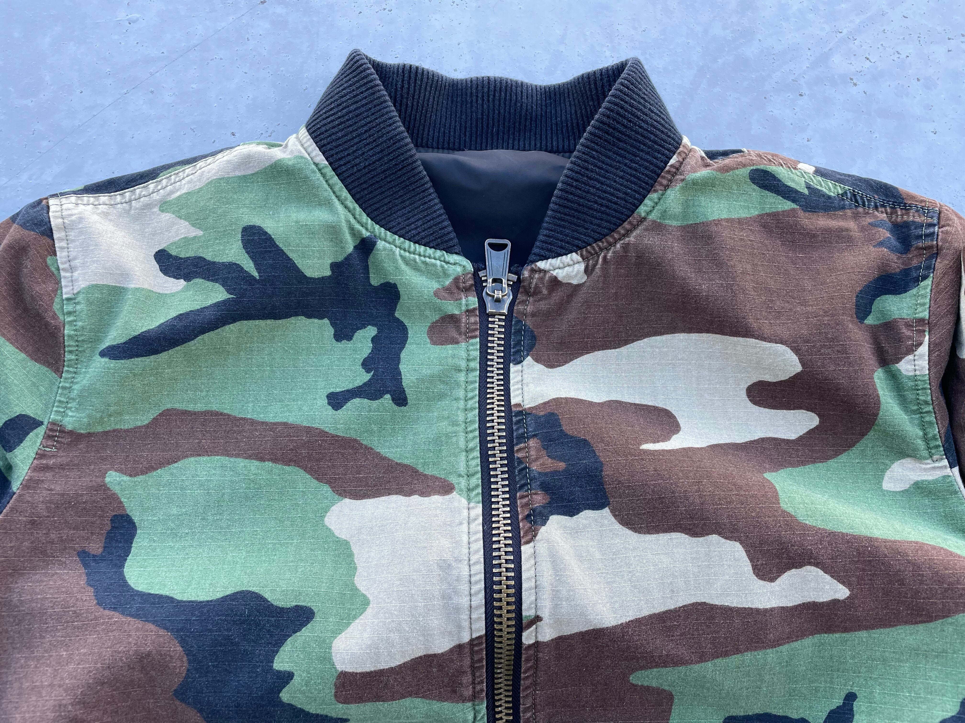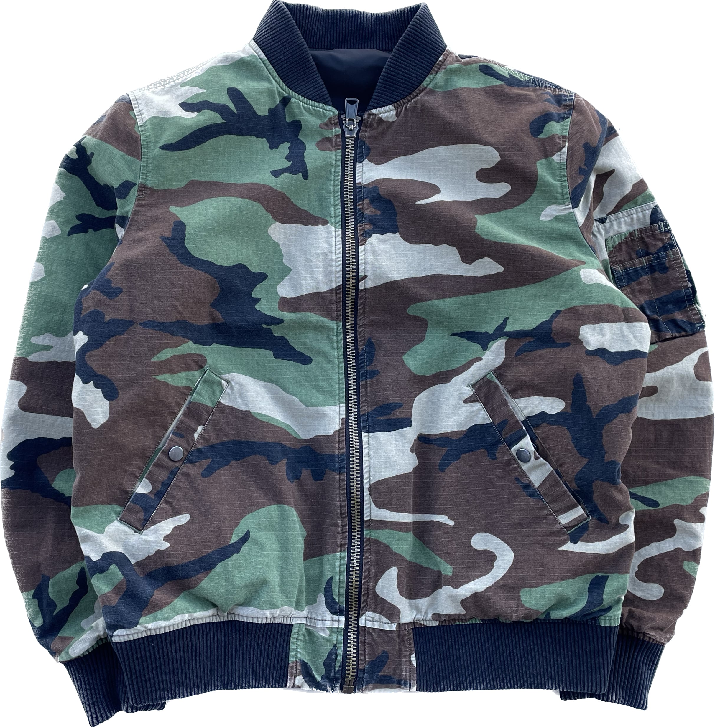 【商品詳細】シュプリームのリバーシブルMA-1。カモフラ柄はコットン・ブラック側はナイロン地。サイズはL。個人的に推しているカモフラパターンのMA-1。カモフラ側はコットン地なのでハードにご着用いただく事でアタリ等が出て雰囲気出るかと。ブラック側も汎用性高くちゃんと2WAY使い出来そうなのが嬉しいですね。